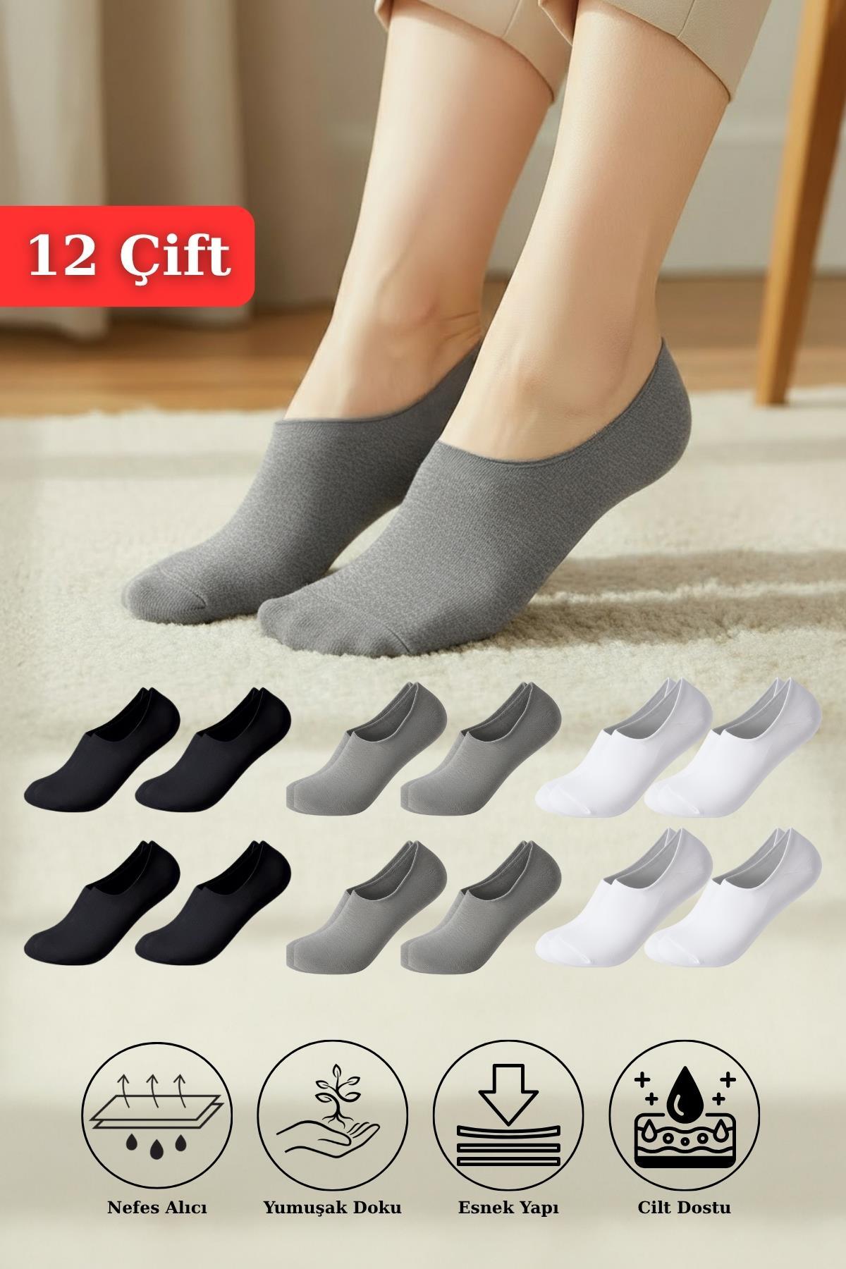 12 Çift Kadın Renkli Esnek Pamuklu Örme Babet Çorap 1020