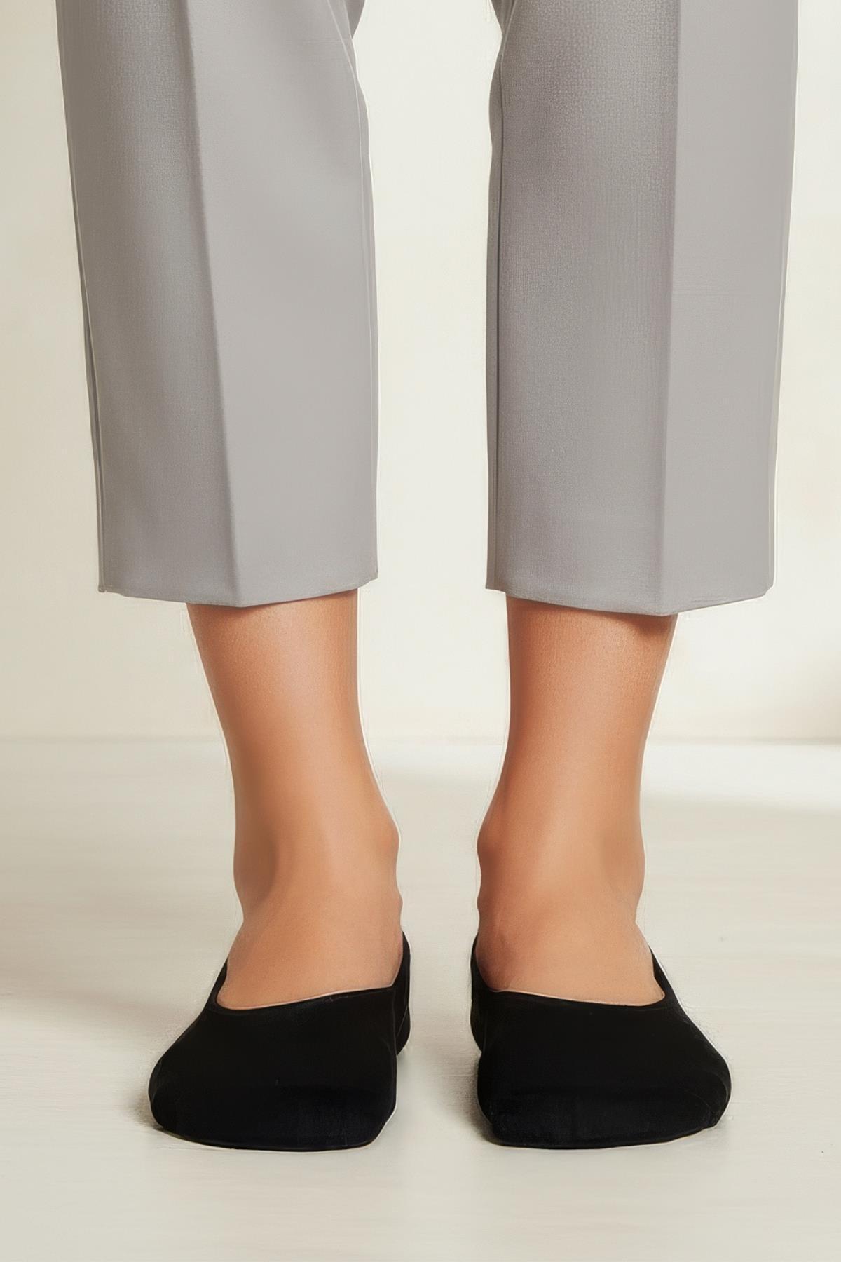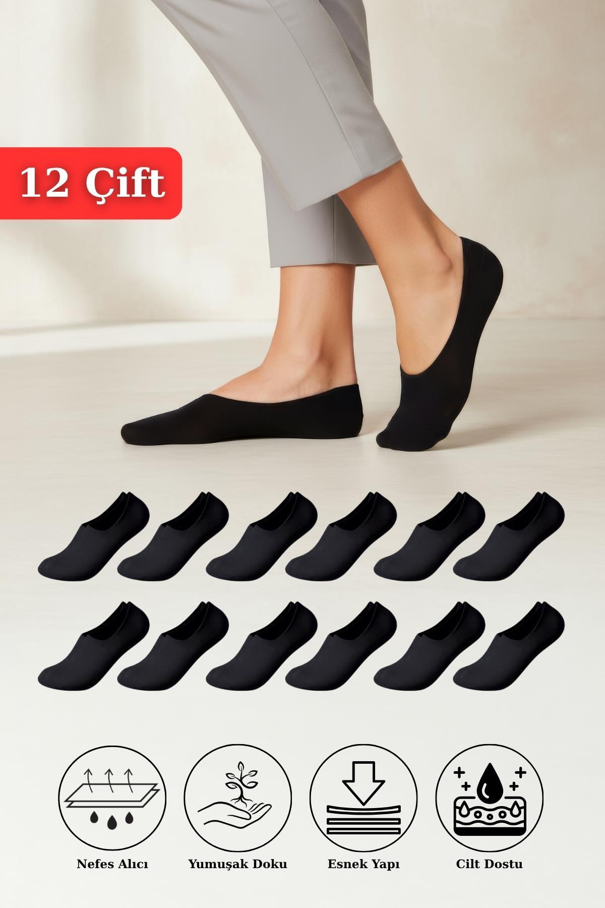 12 Çift Kadın Siyah Esnek Pamuklu Örme Babet Çorap 1020
