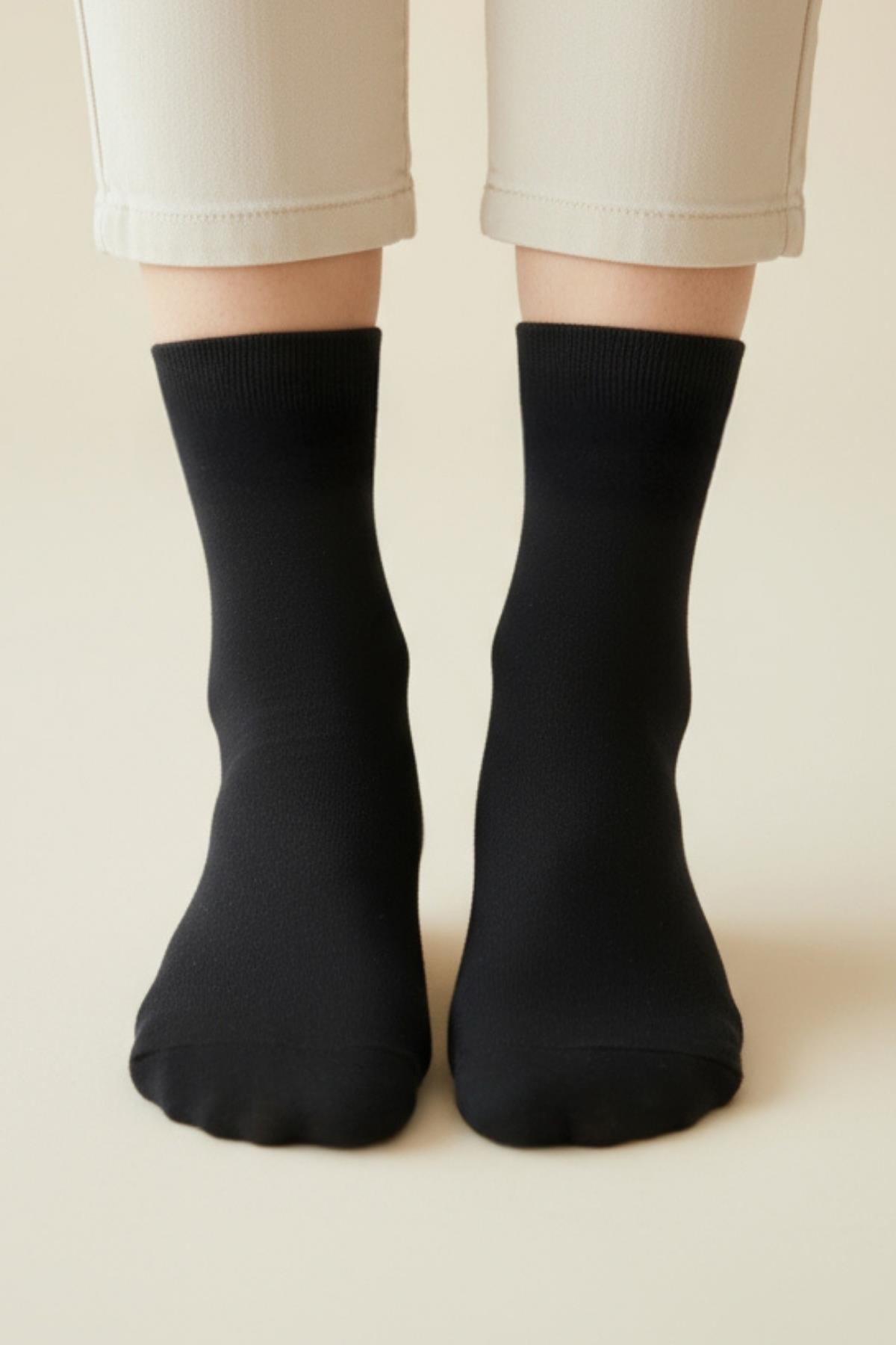 12 Çift Kadın Siyah Esnek Pamuklu Örme Soket Çorap 1021