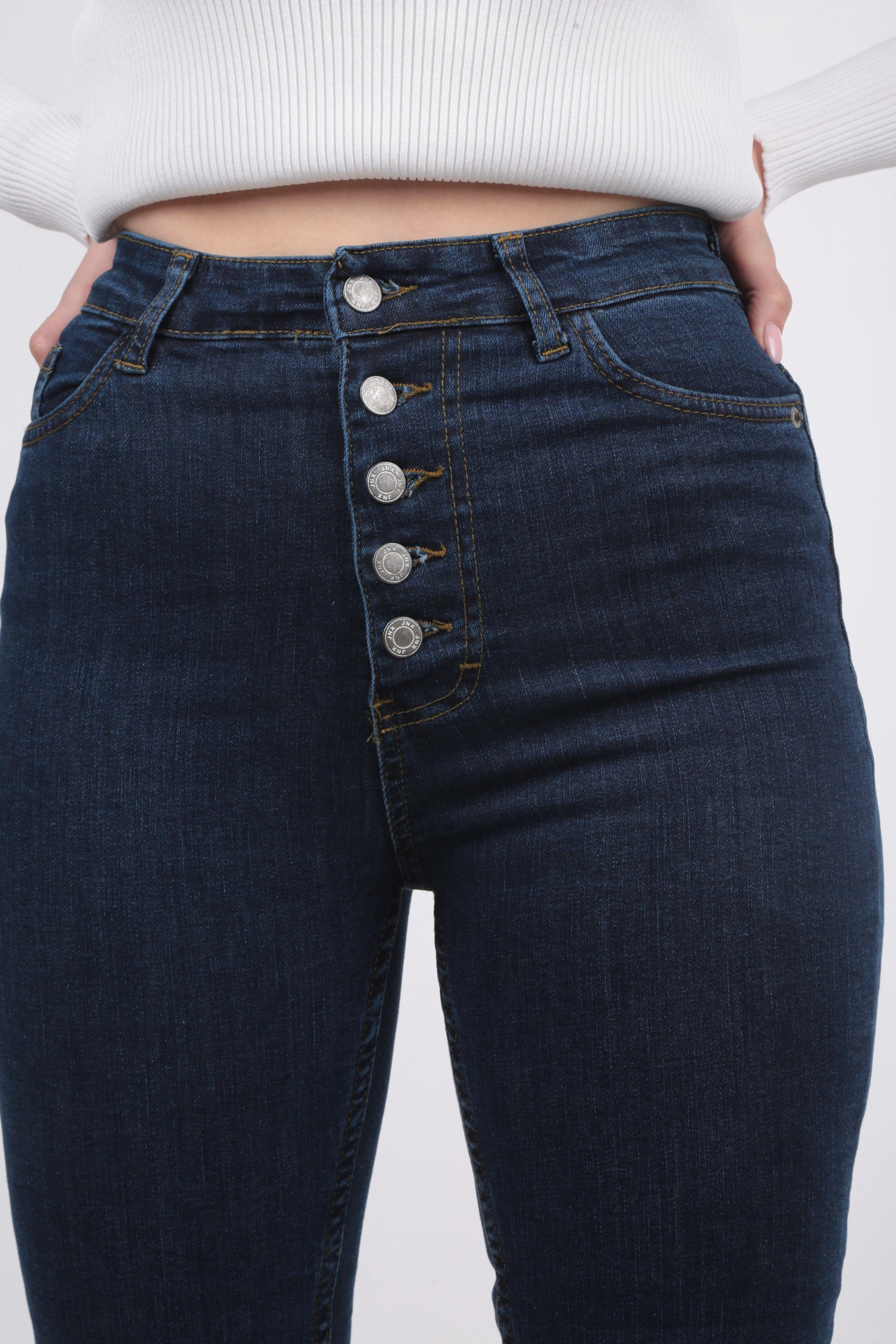 Koyu Mavi Dar Paça Ön Düğmeli Pantolon 11017