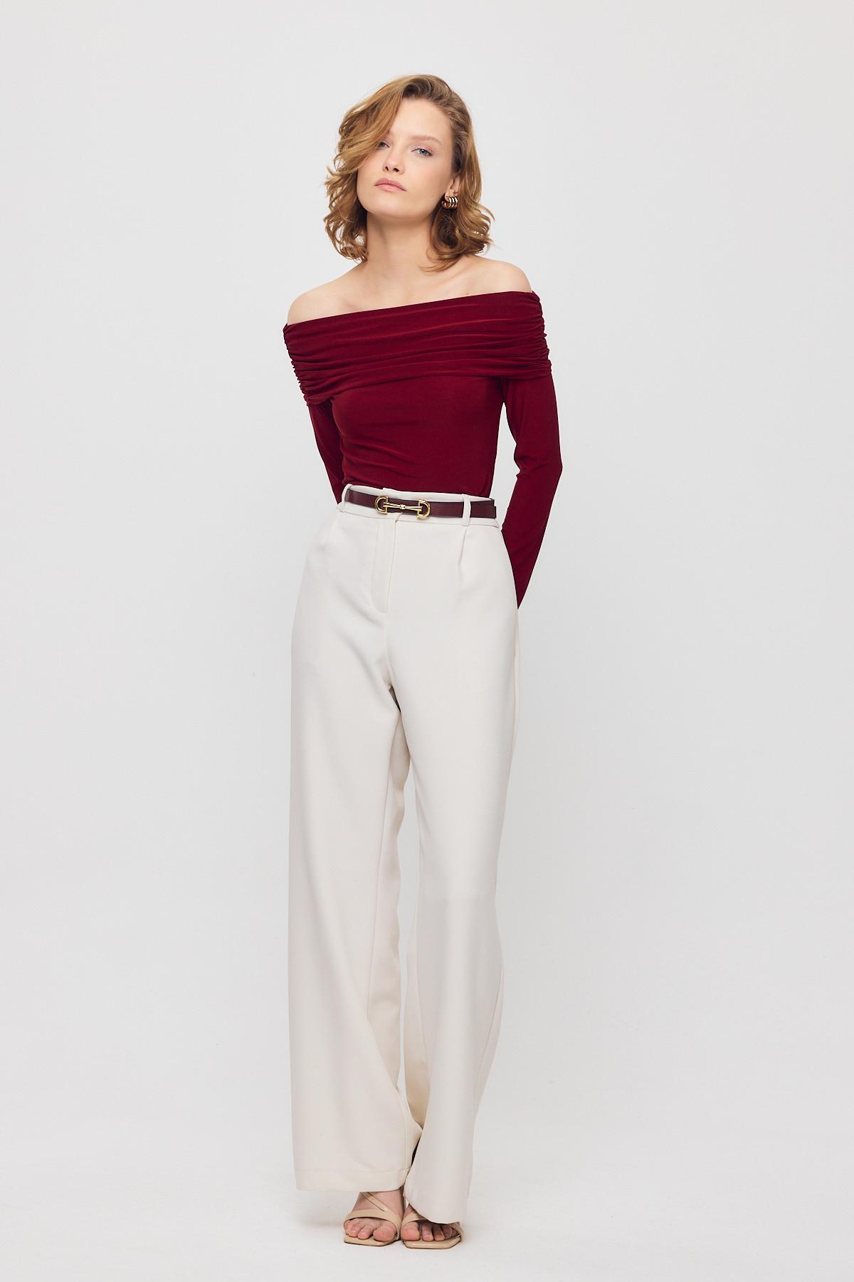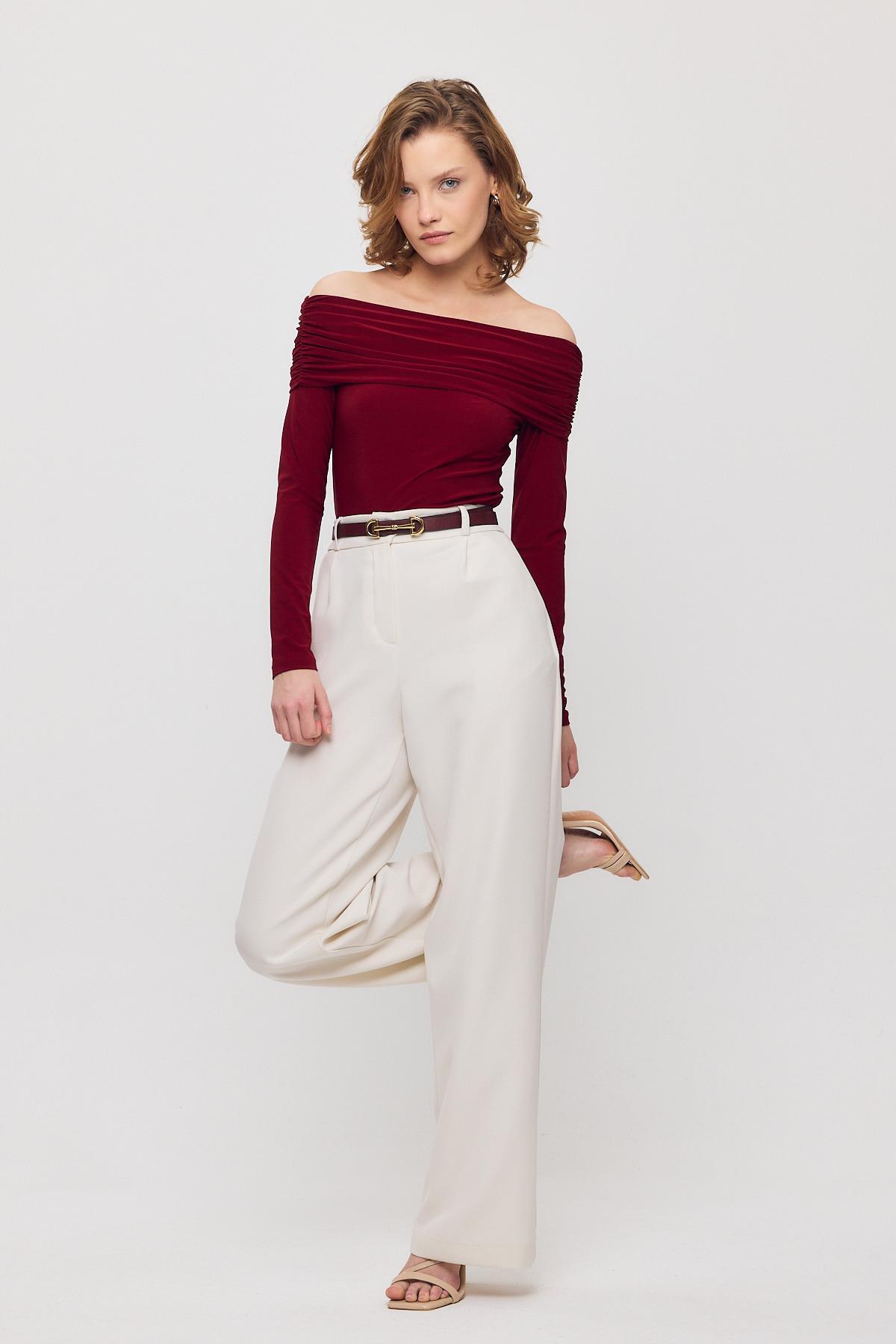 Bordo Madonna Yaka Büzgülü Bluz 12222
