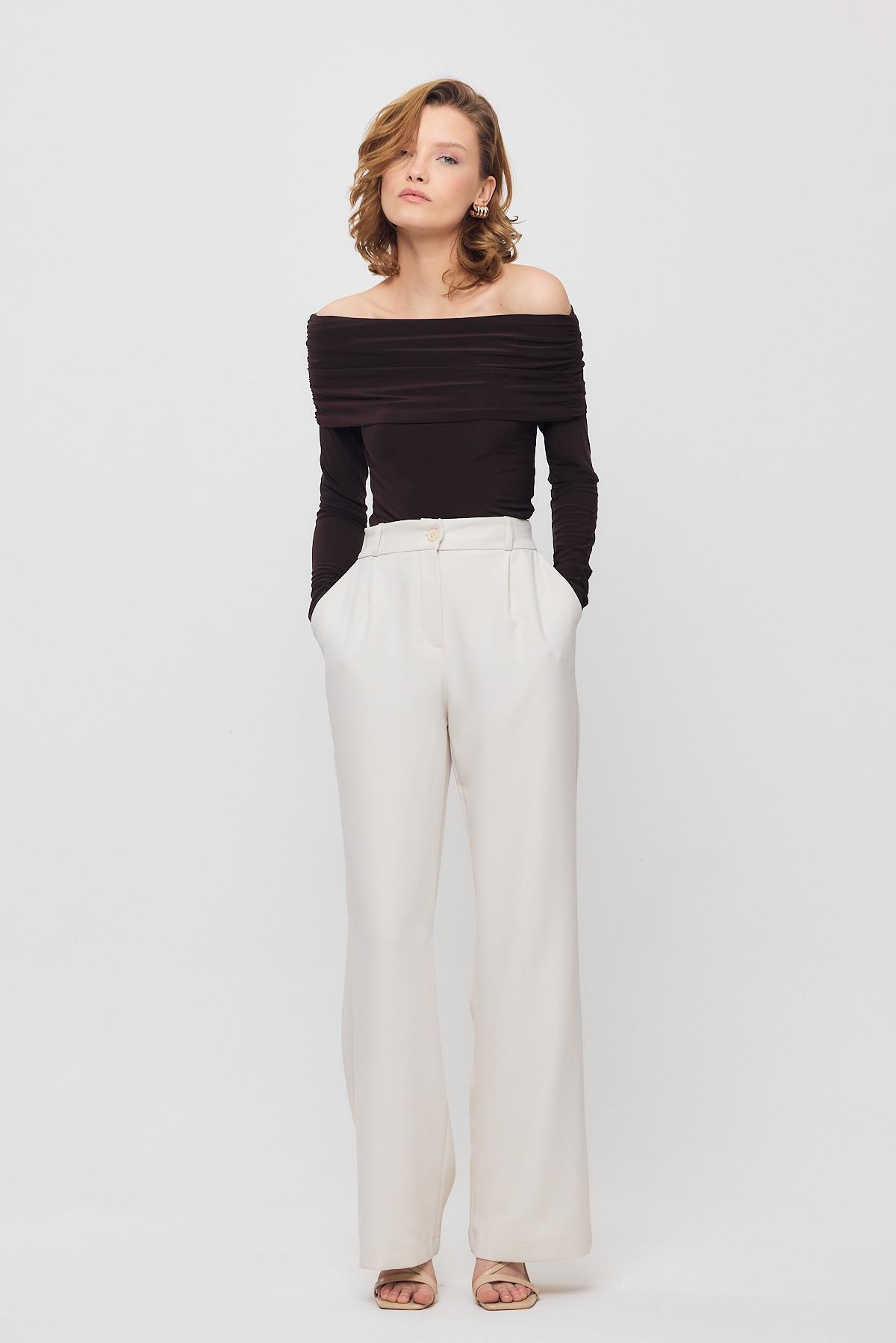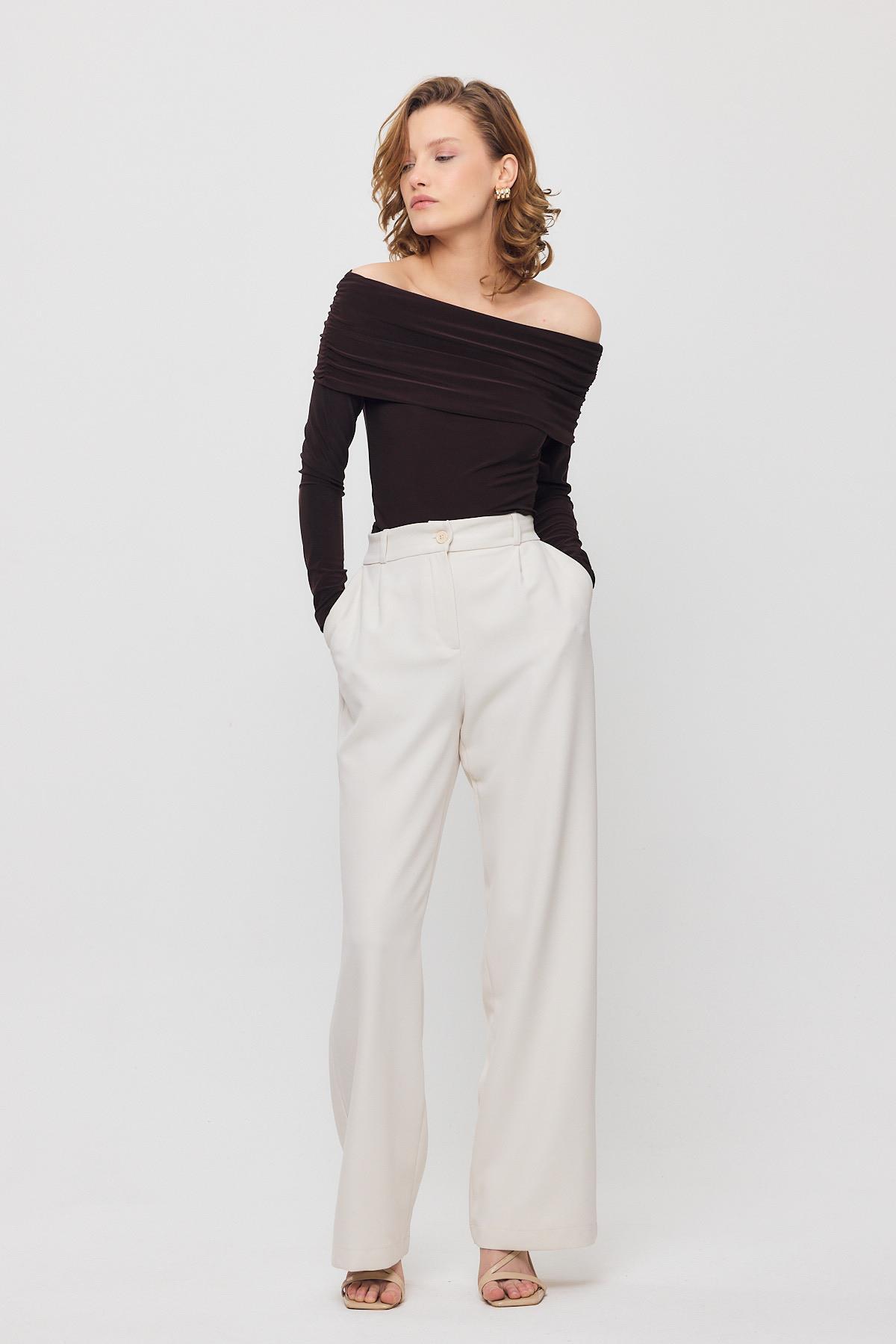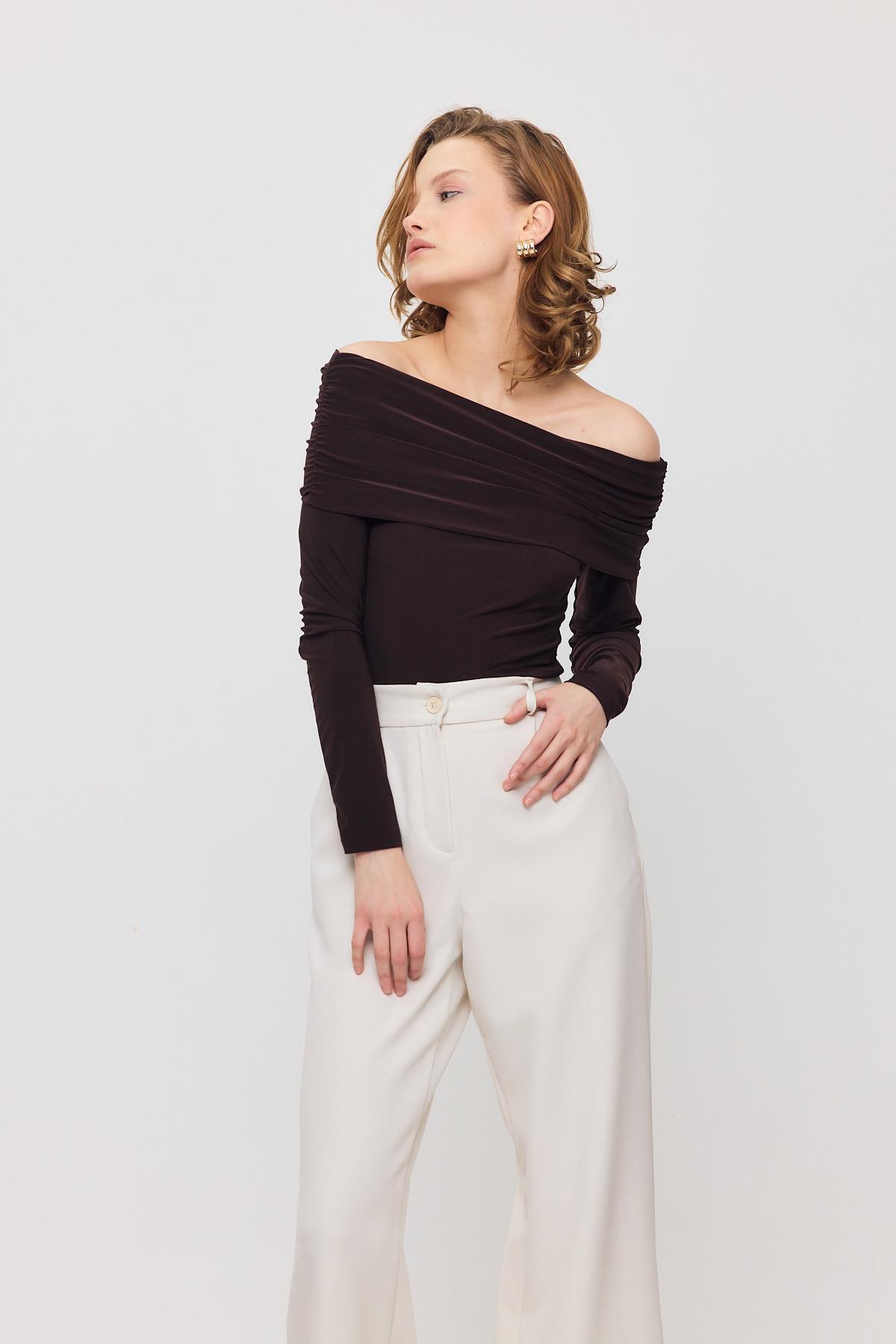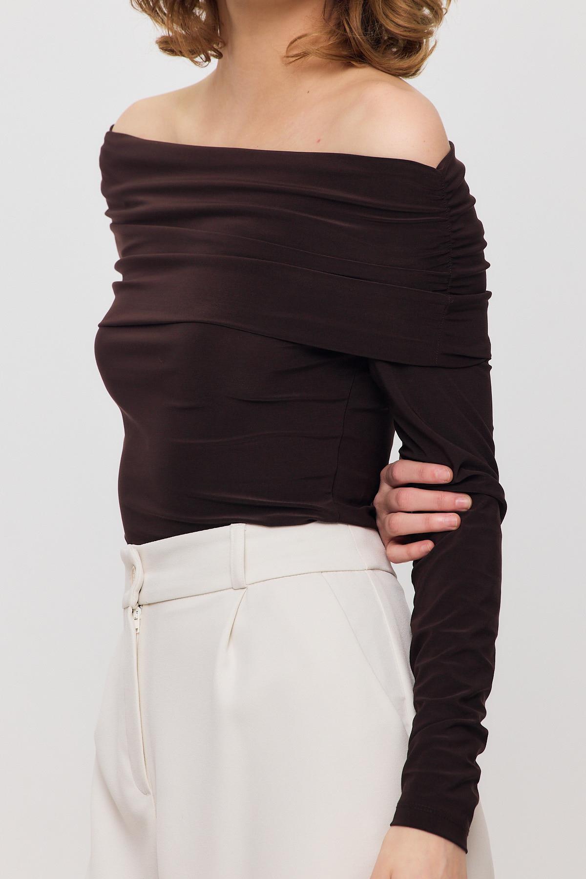 Kahve Madonna Yaka Büzgülü Bluz 12222