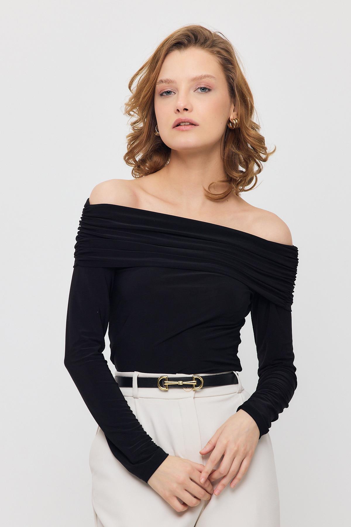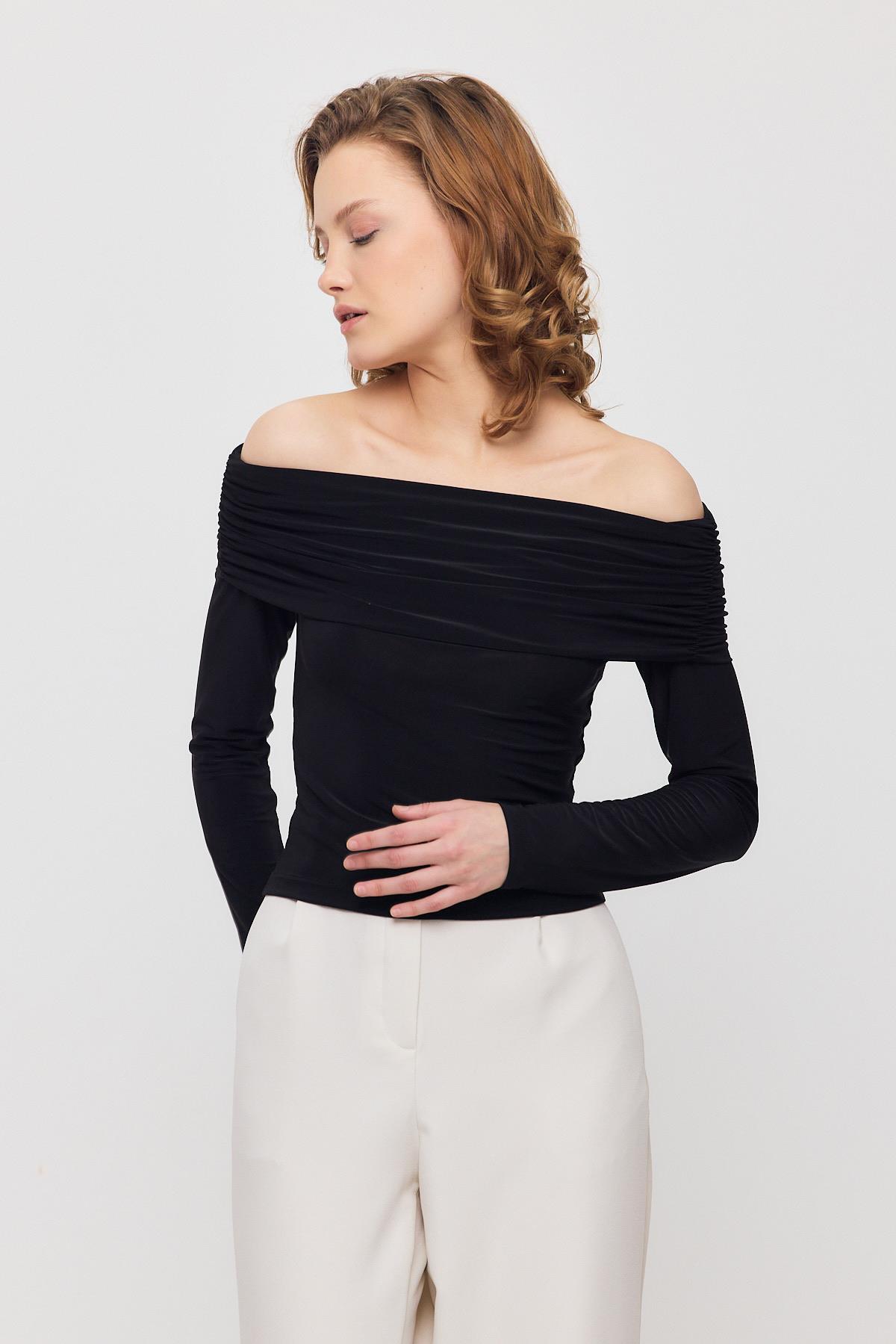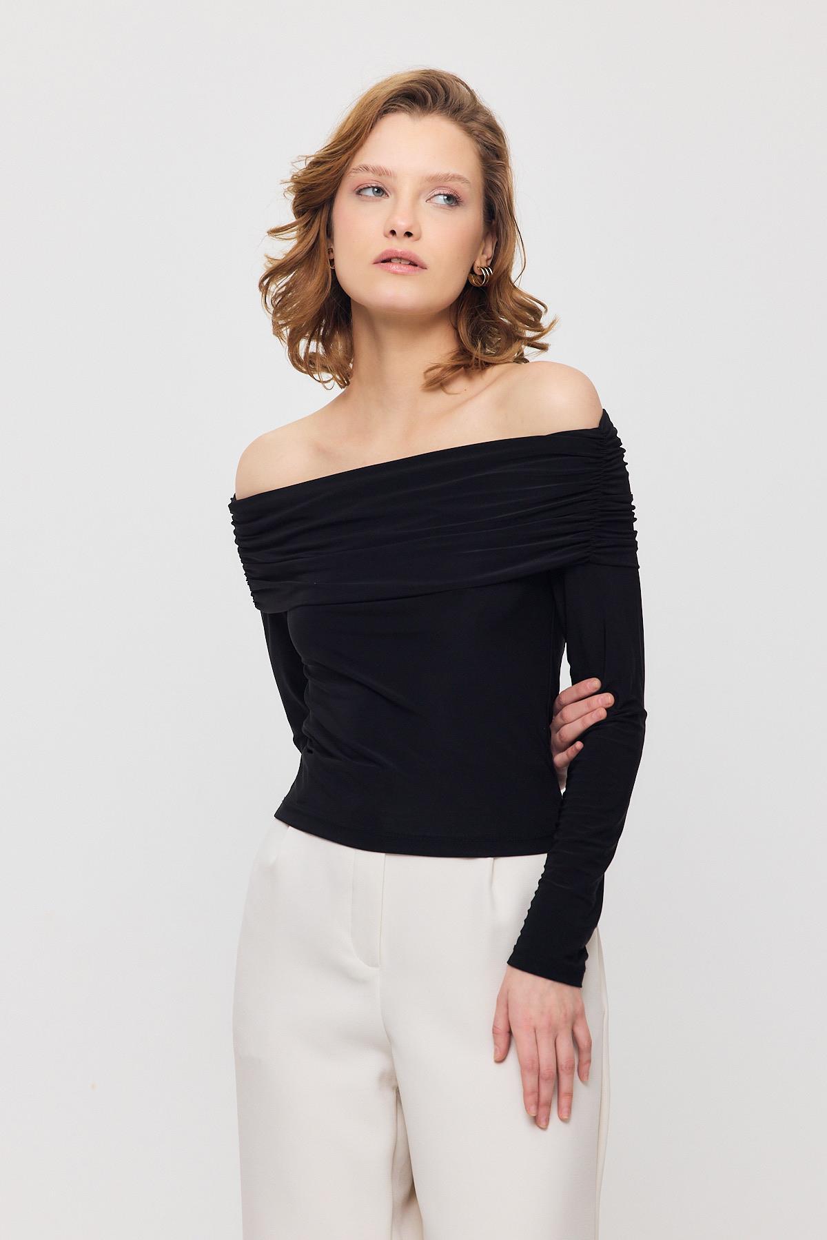 Siyah Madonna Yaka Büzgülü Bluz 12222