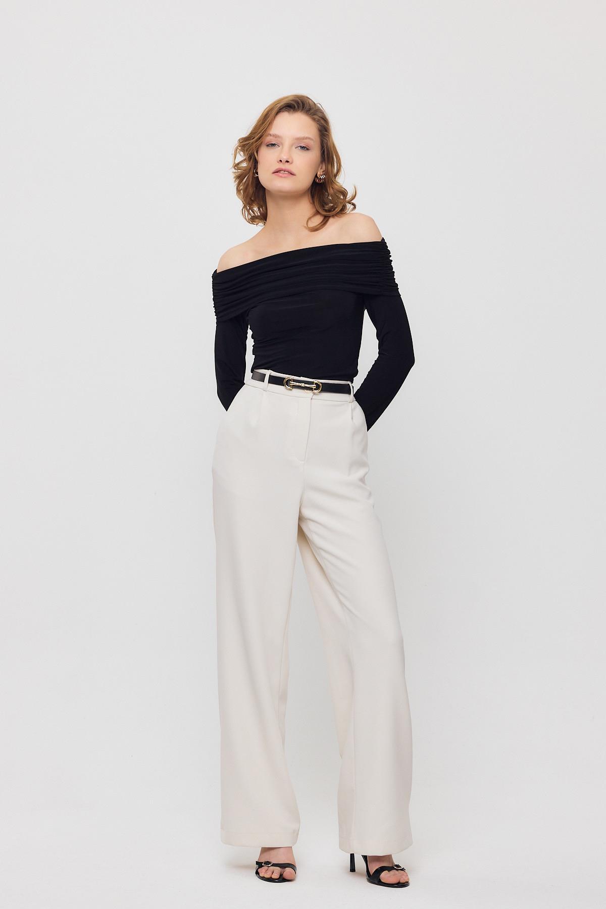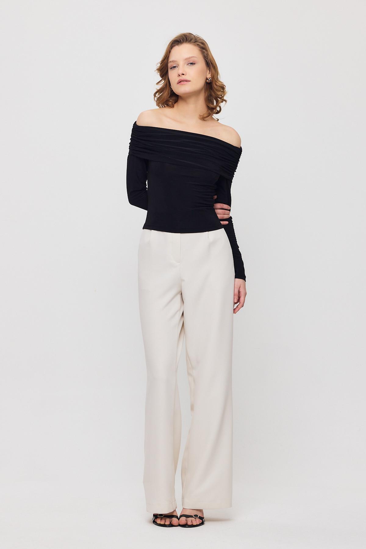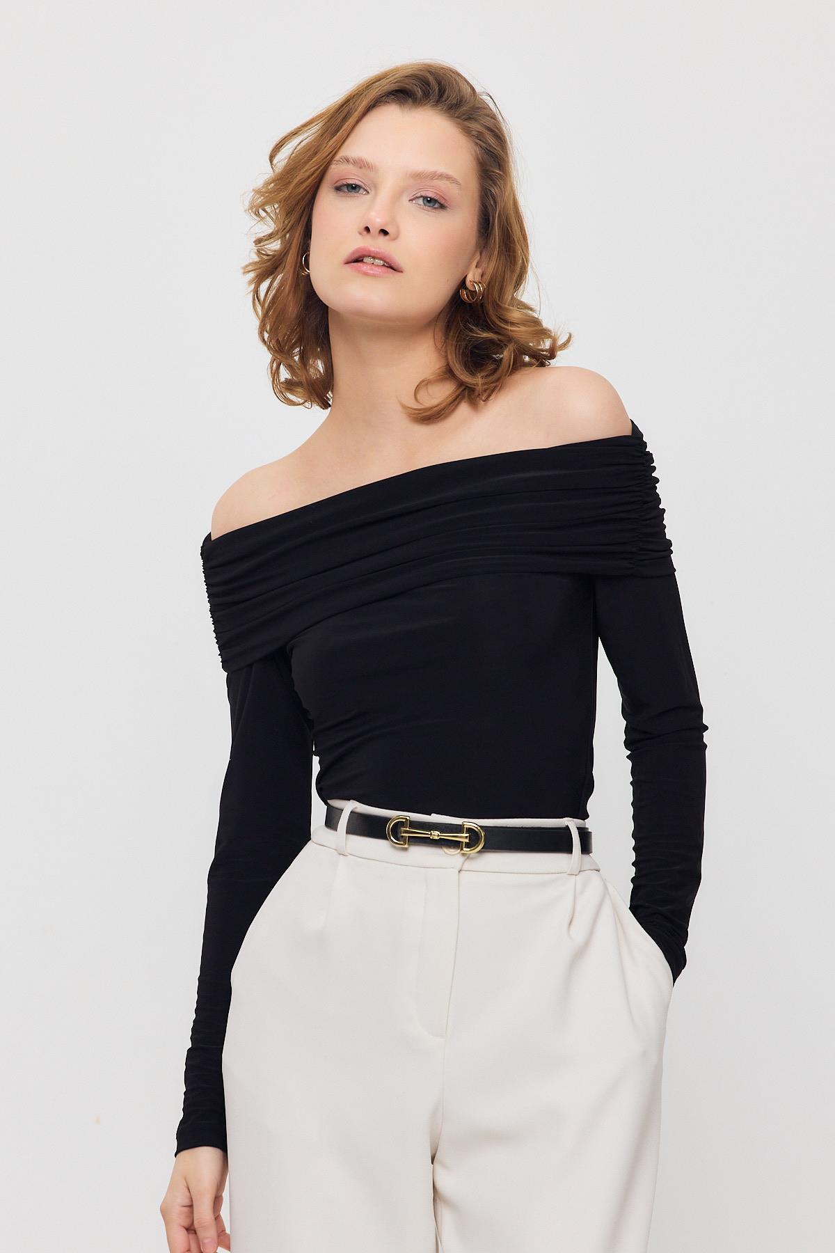 Siyah Madonna Yaka Büzgülü Bluz 12222