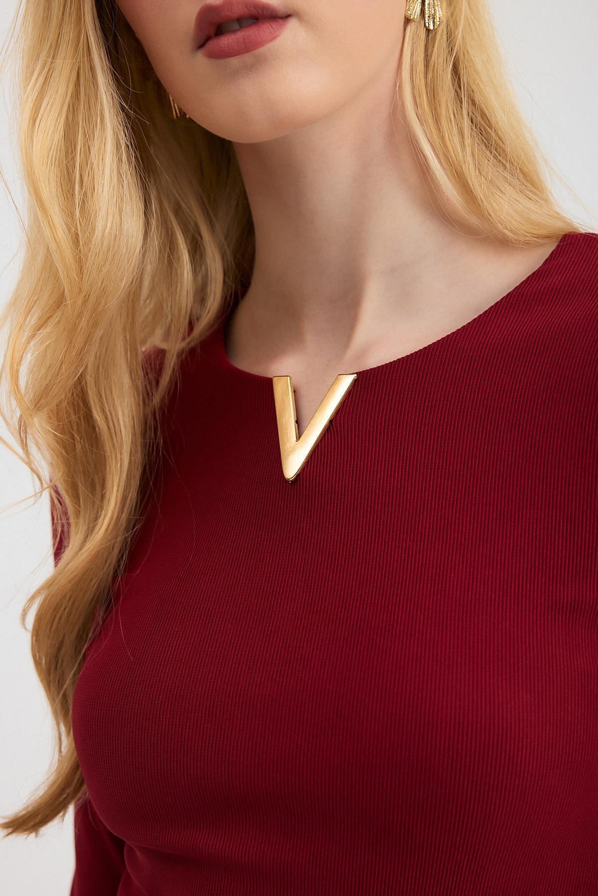 Bordo Yaka V Demir Bluz 13084