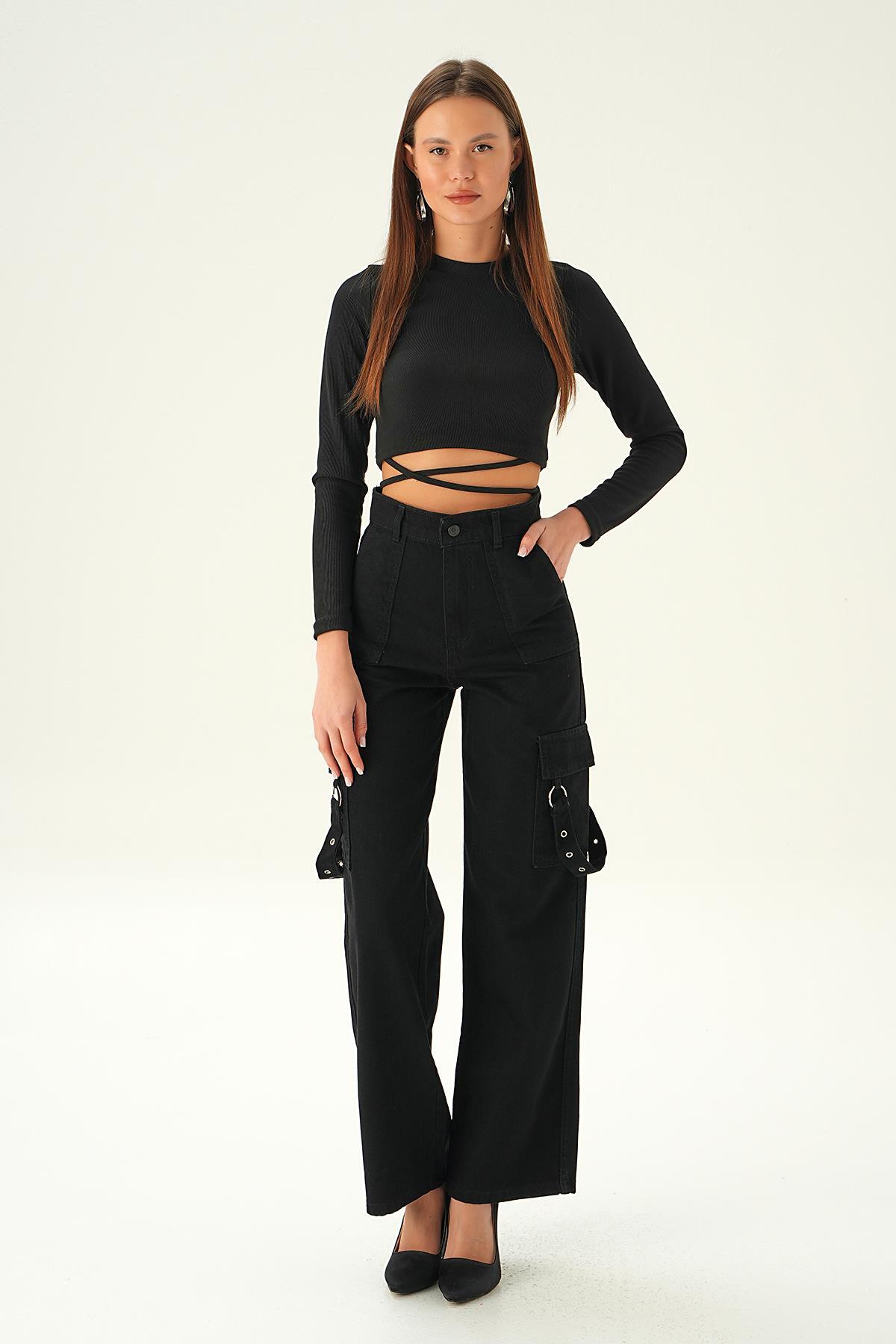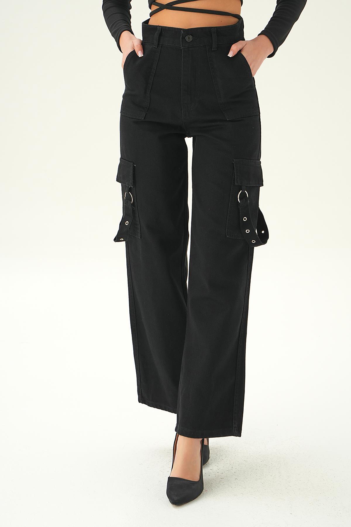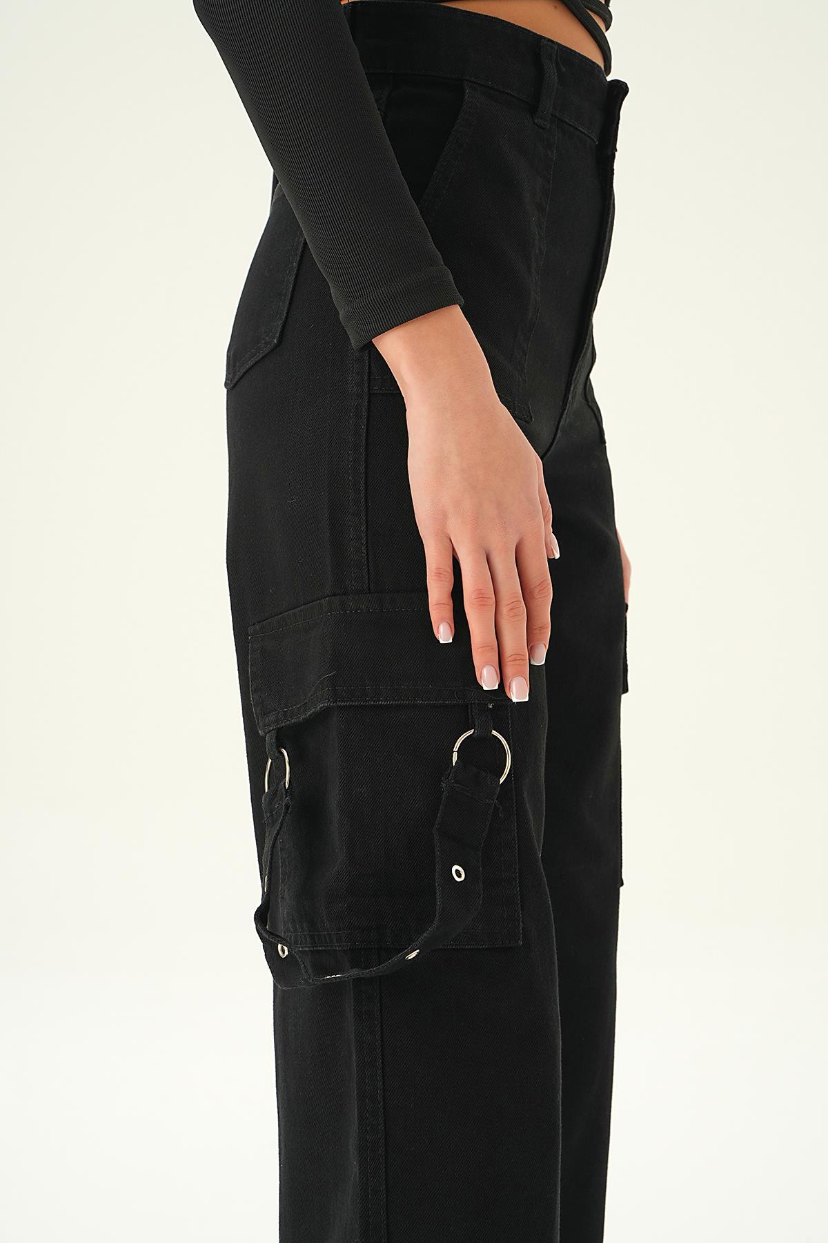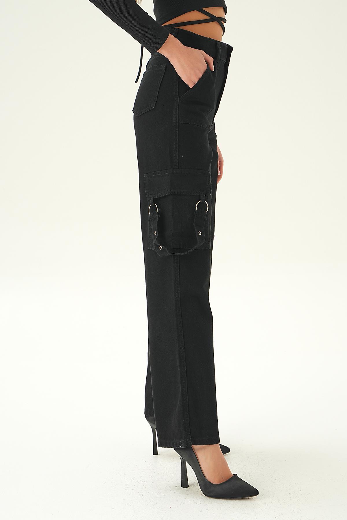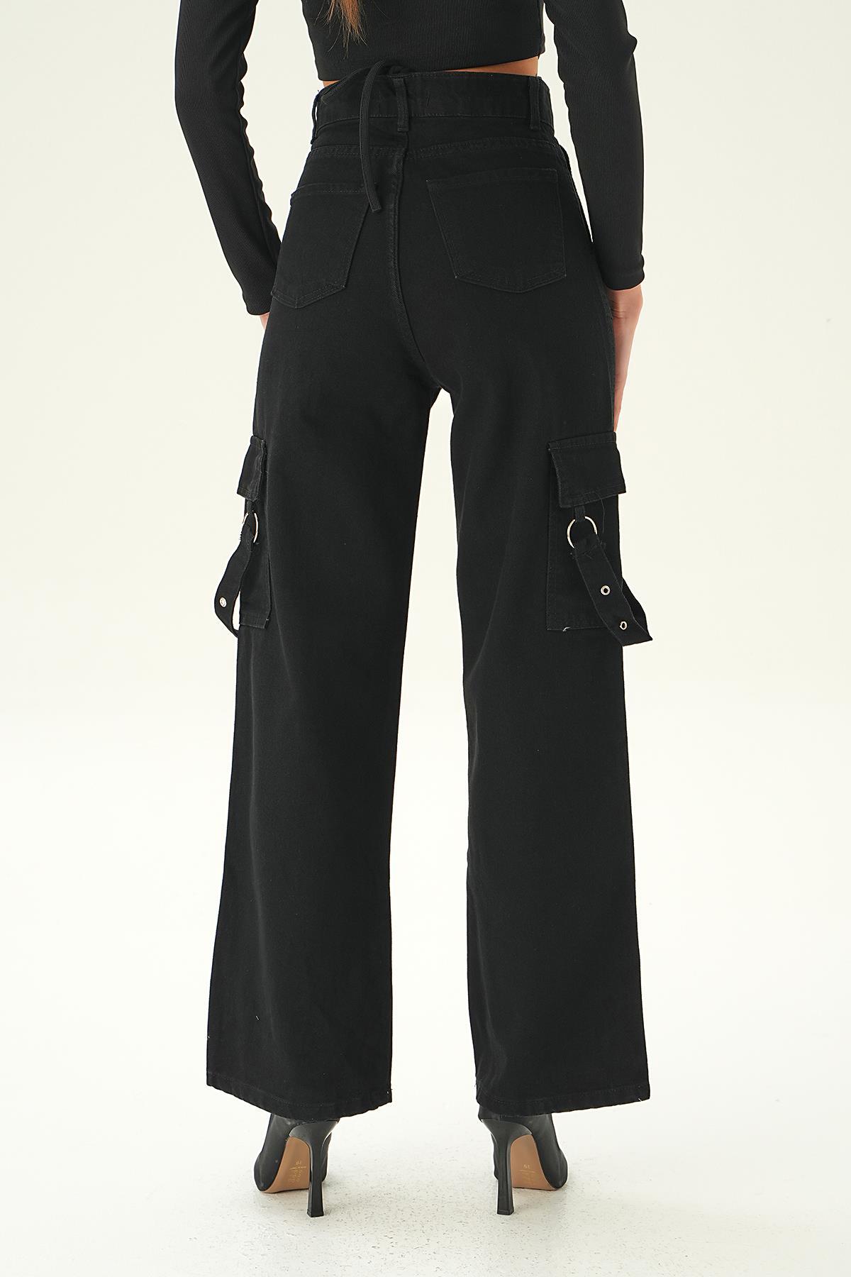 Siyah Kargo Cep Palazzo Jean 13102