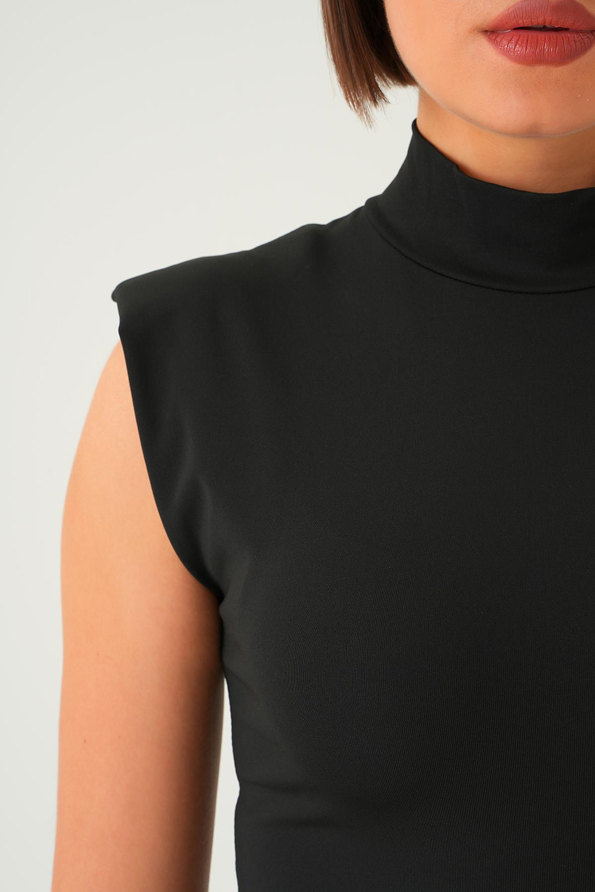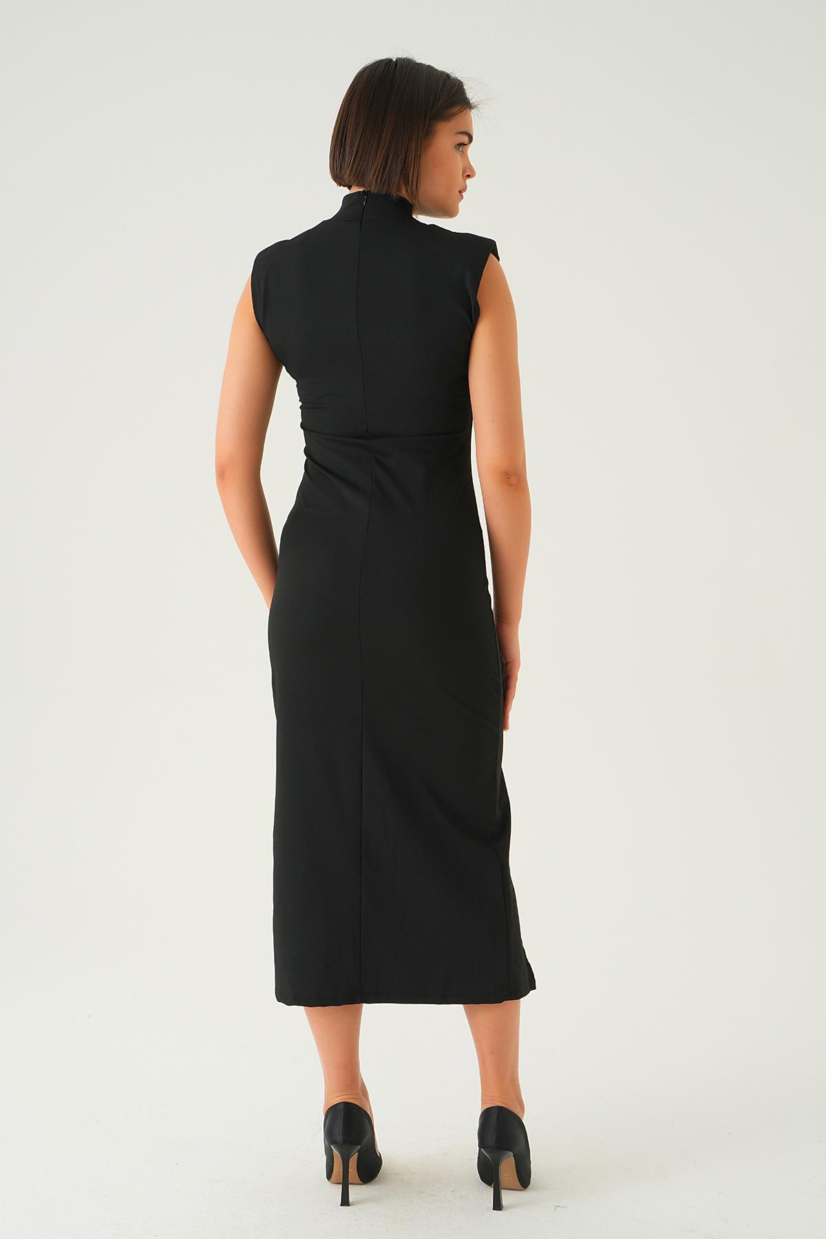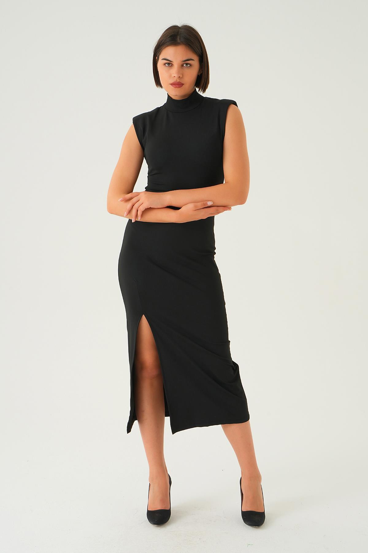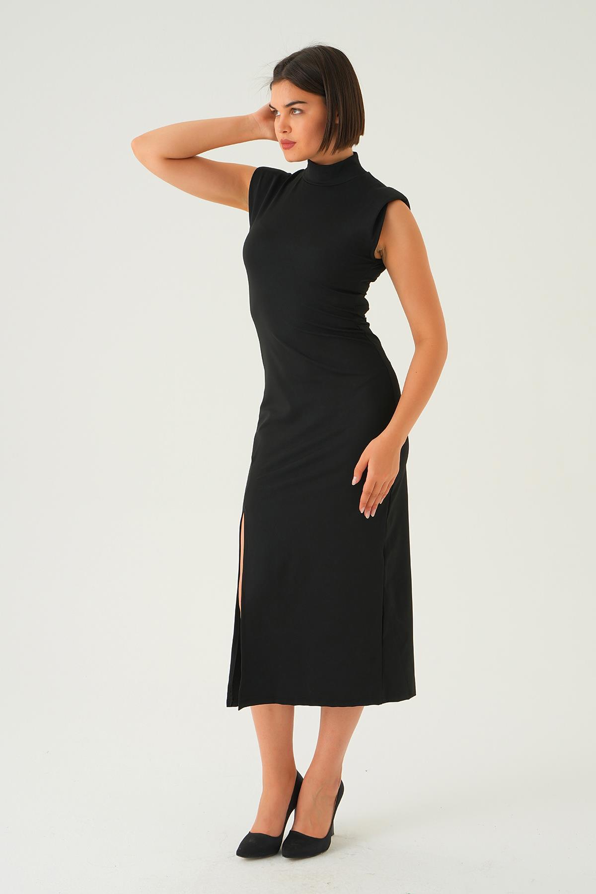 Siyah Balıkçı Yaka Yırtmaç Detay Elbise 1312