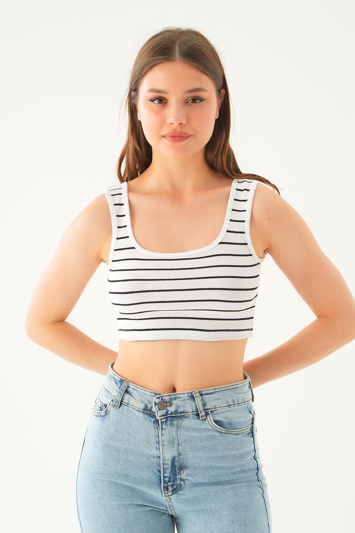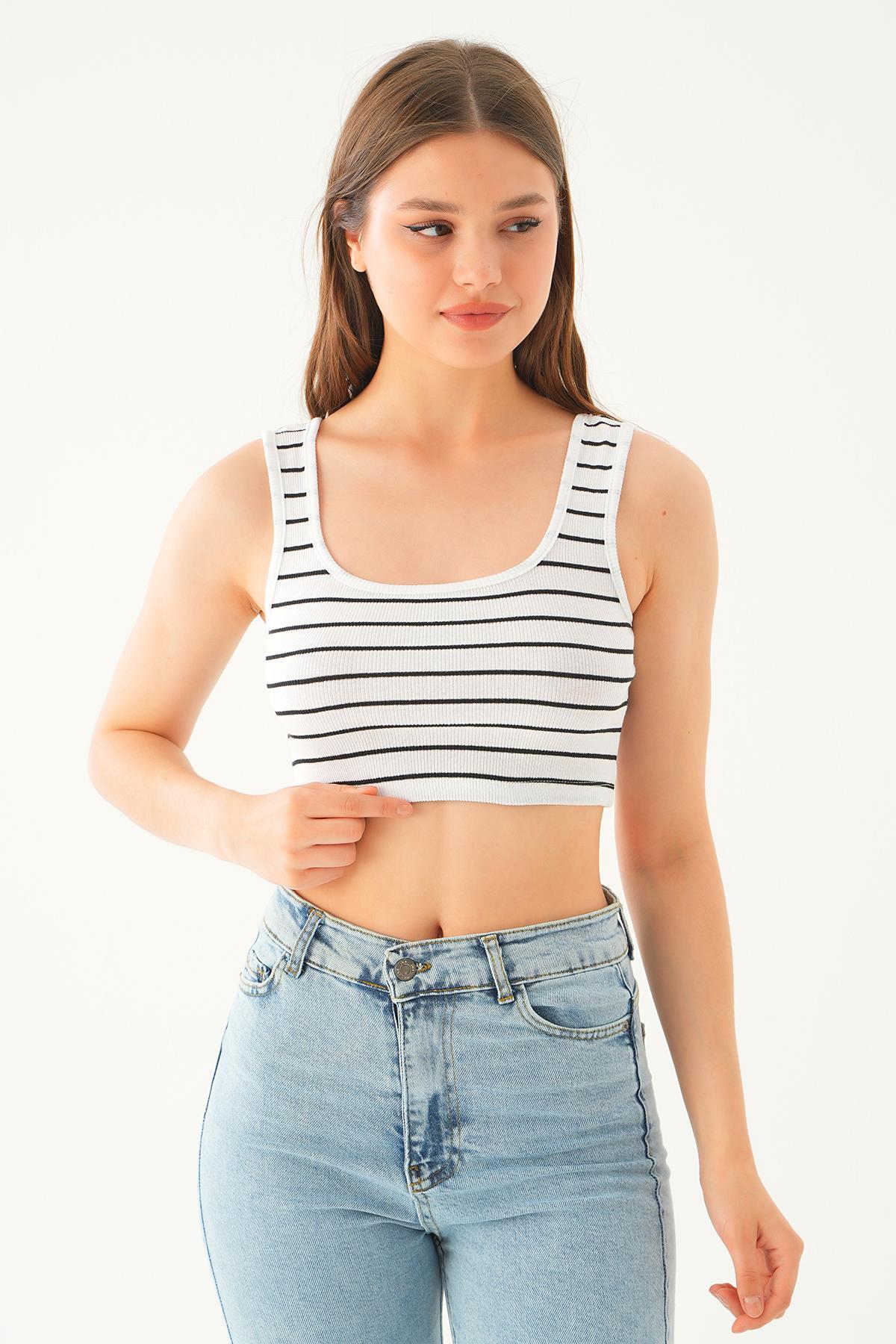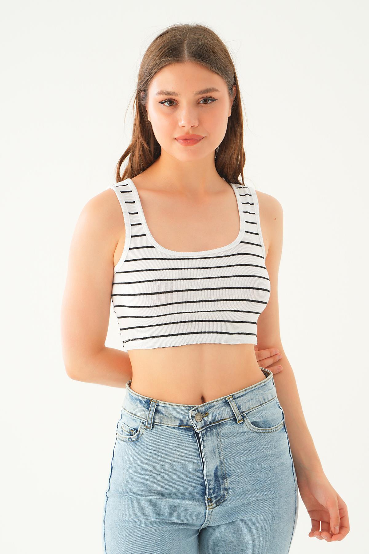 Beyaz-Siyah Çizgili Kare Atlet 1317
