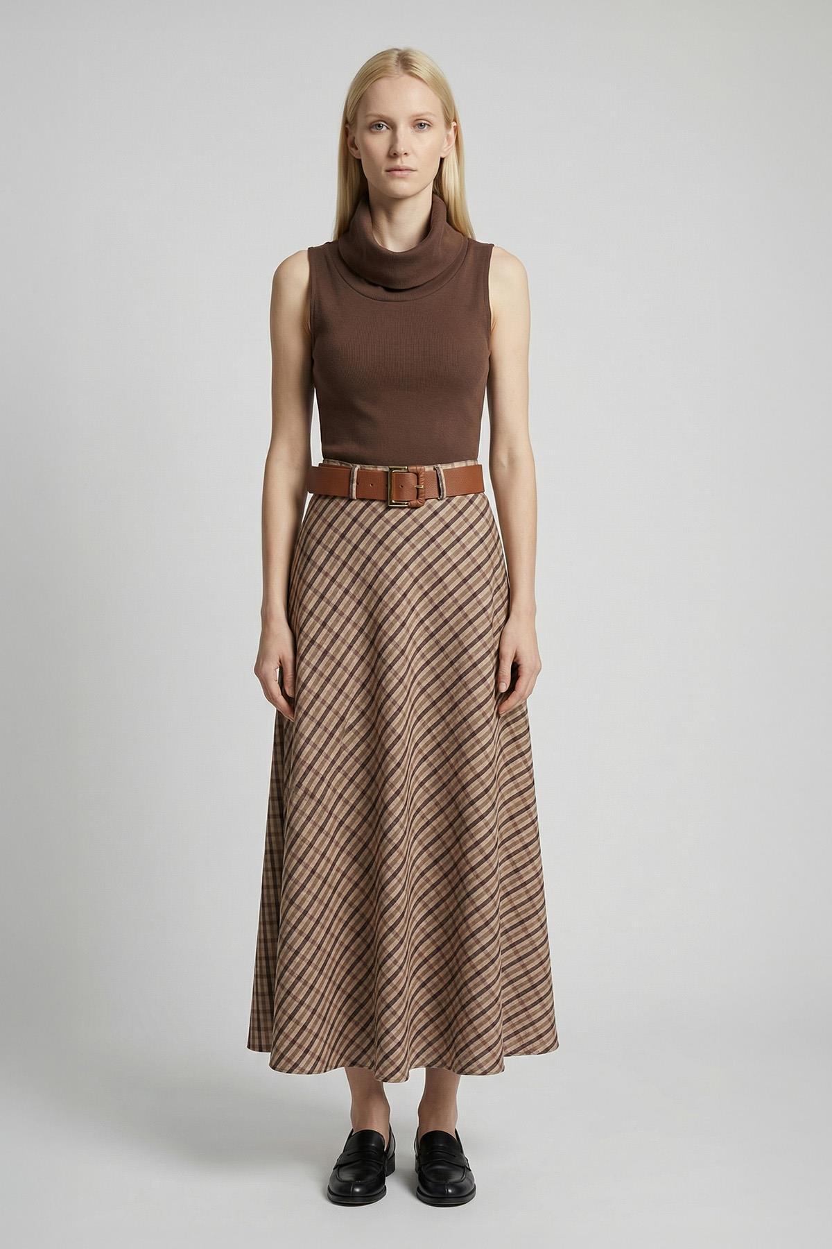 1344 Desenli Kemerli Etek Bej