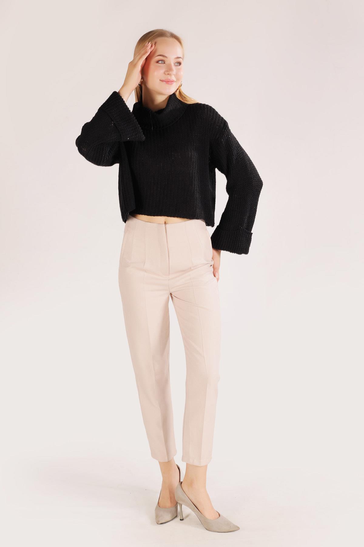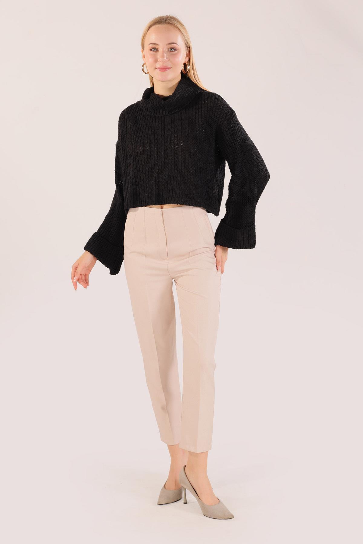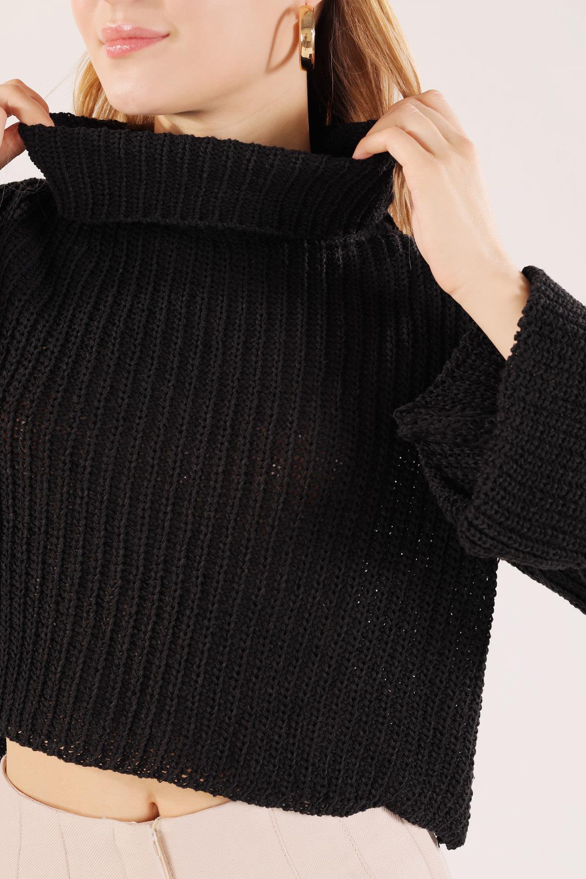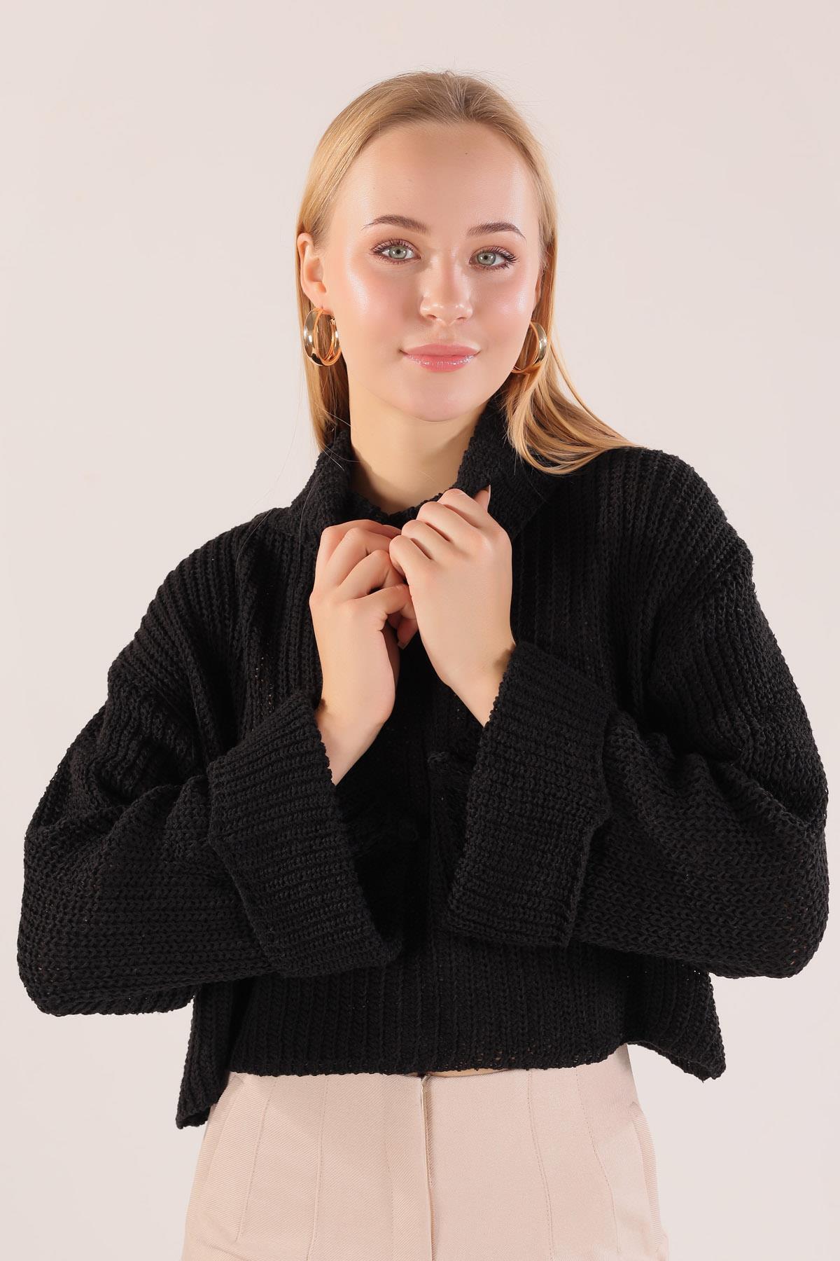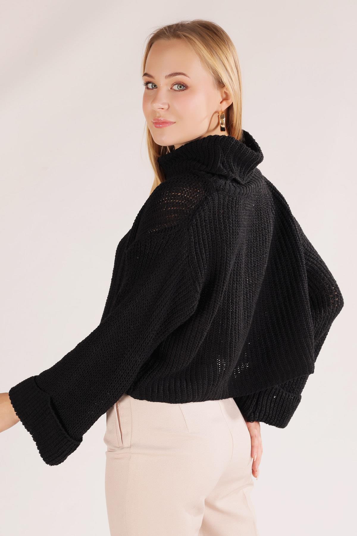 Siyah Balıkçı Yaka İspanyol Kol Kazak 1366