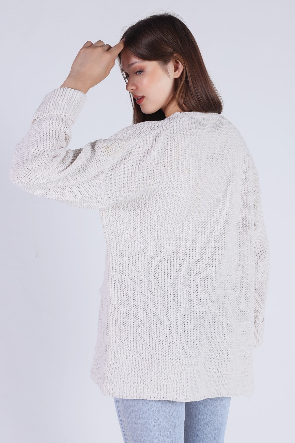Natural Kadın Bağlamalı Polo Yaka Triko Hırka 7095