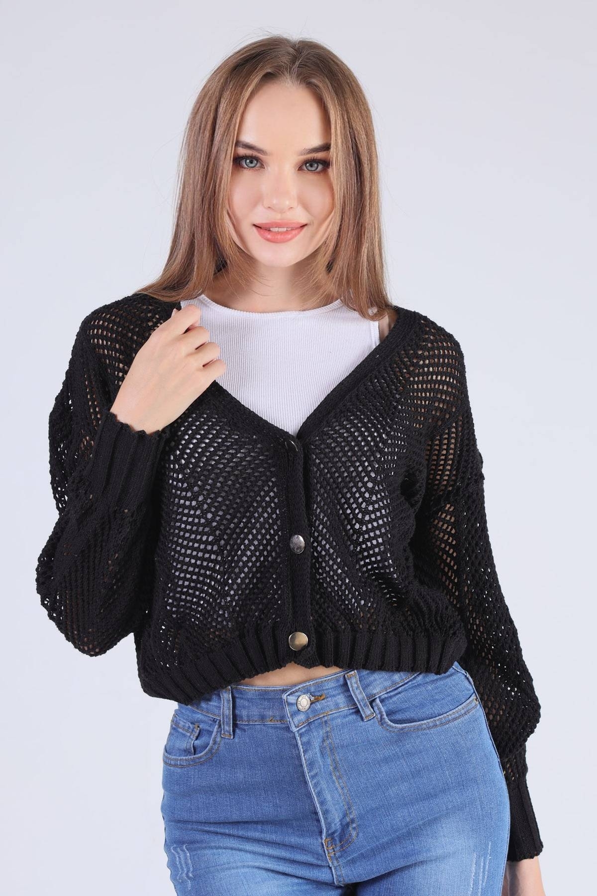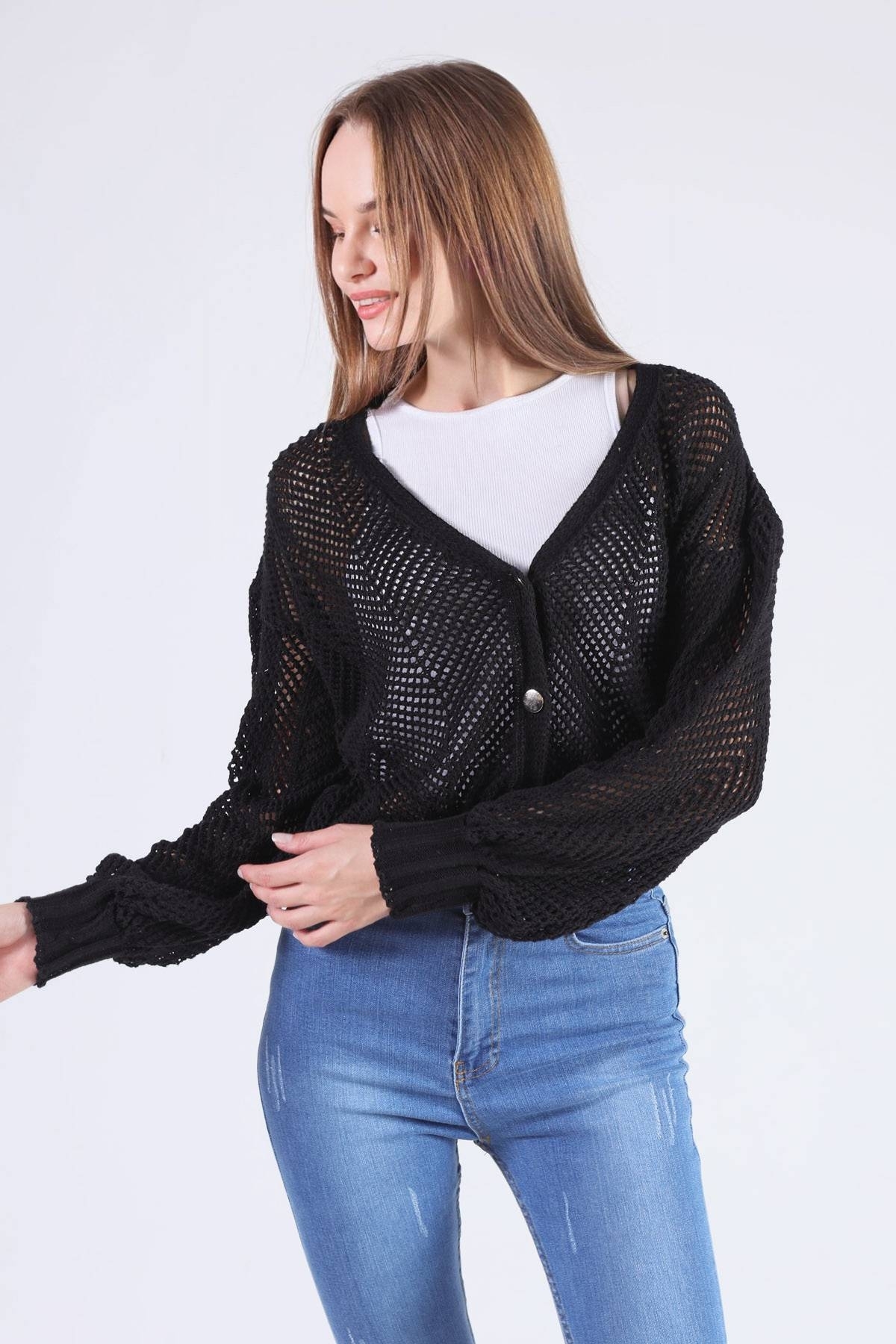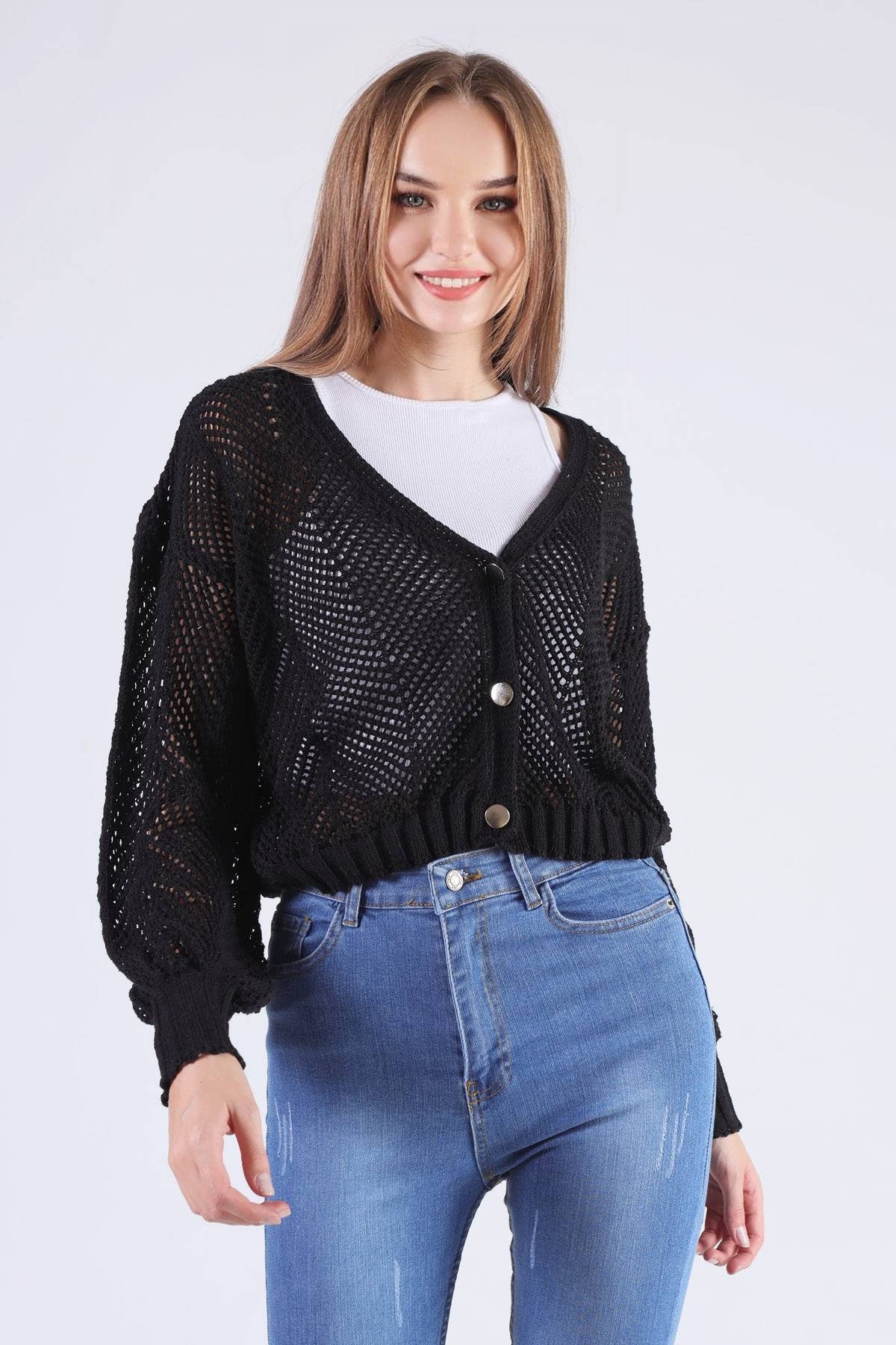 Siyah Metal Düğmeli Hırka 1405