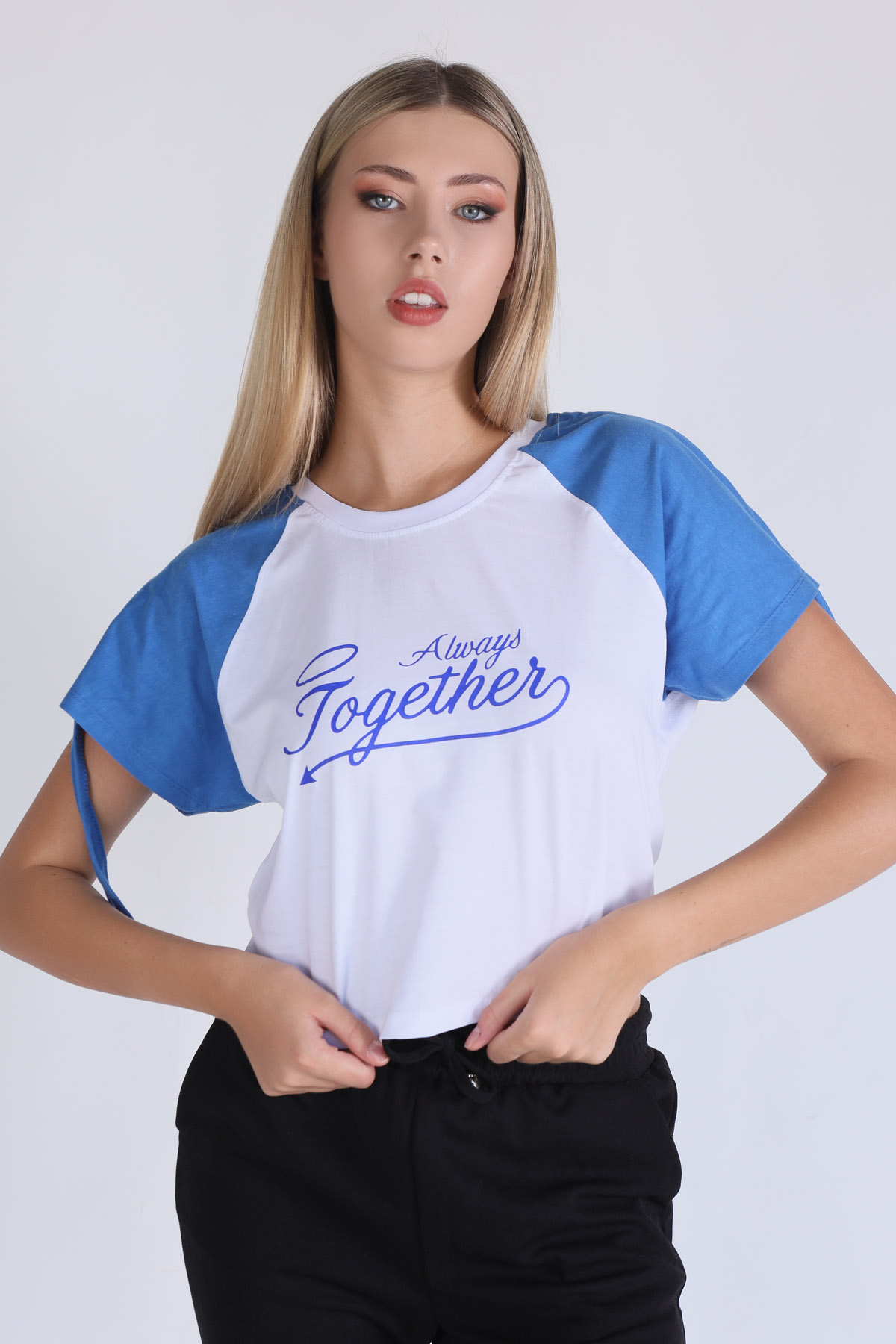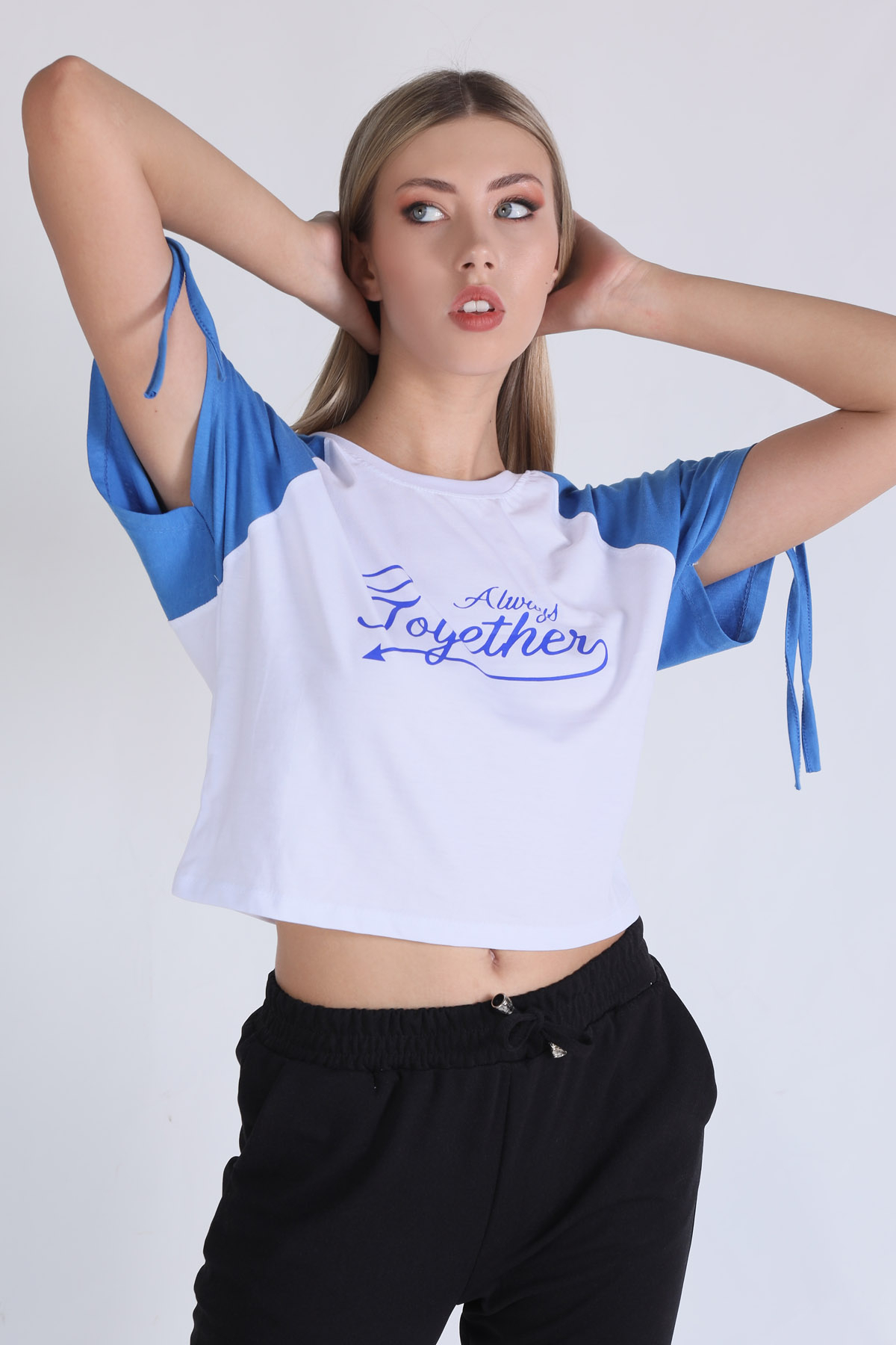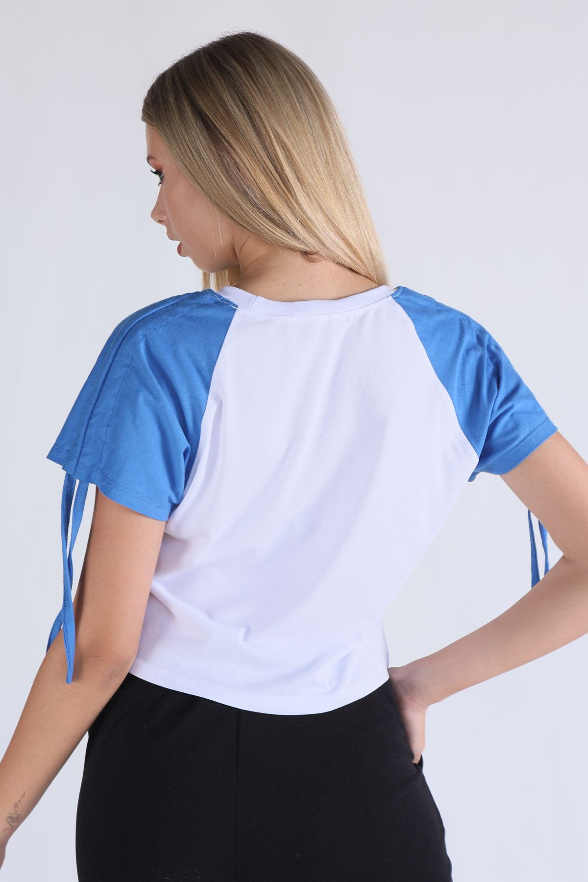 Mavi Kol Büzgü Detay Crop Tişört 1436