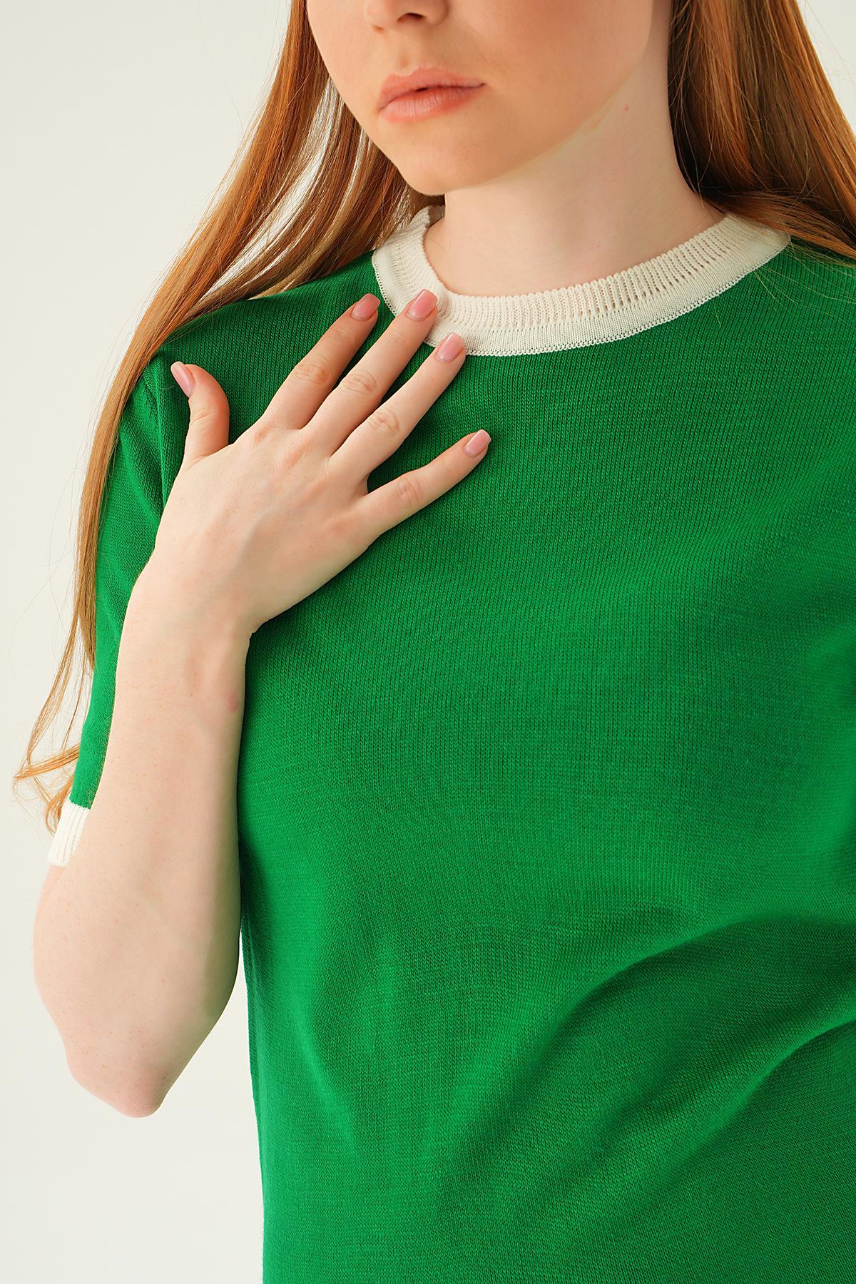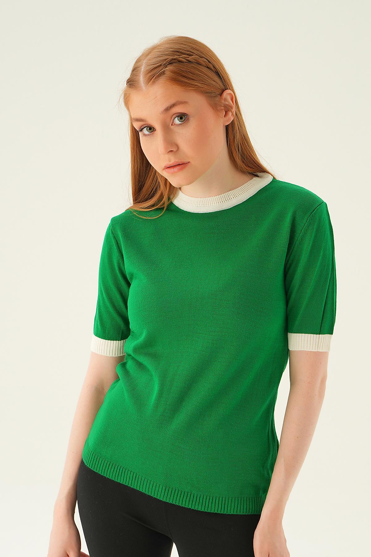 Benetton Yeşili Yaka ve Kol Çizgi Tişört 1442