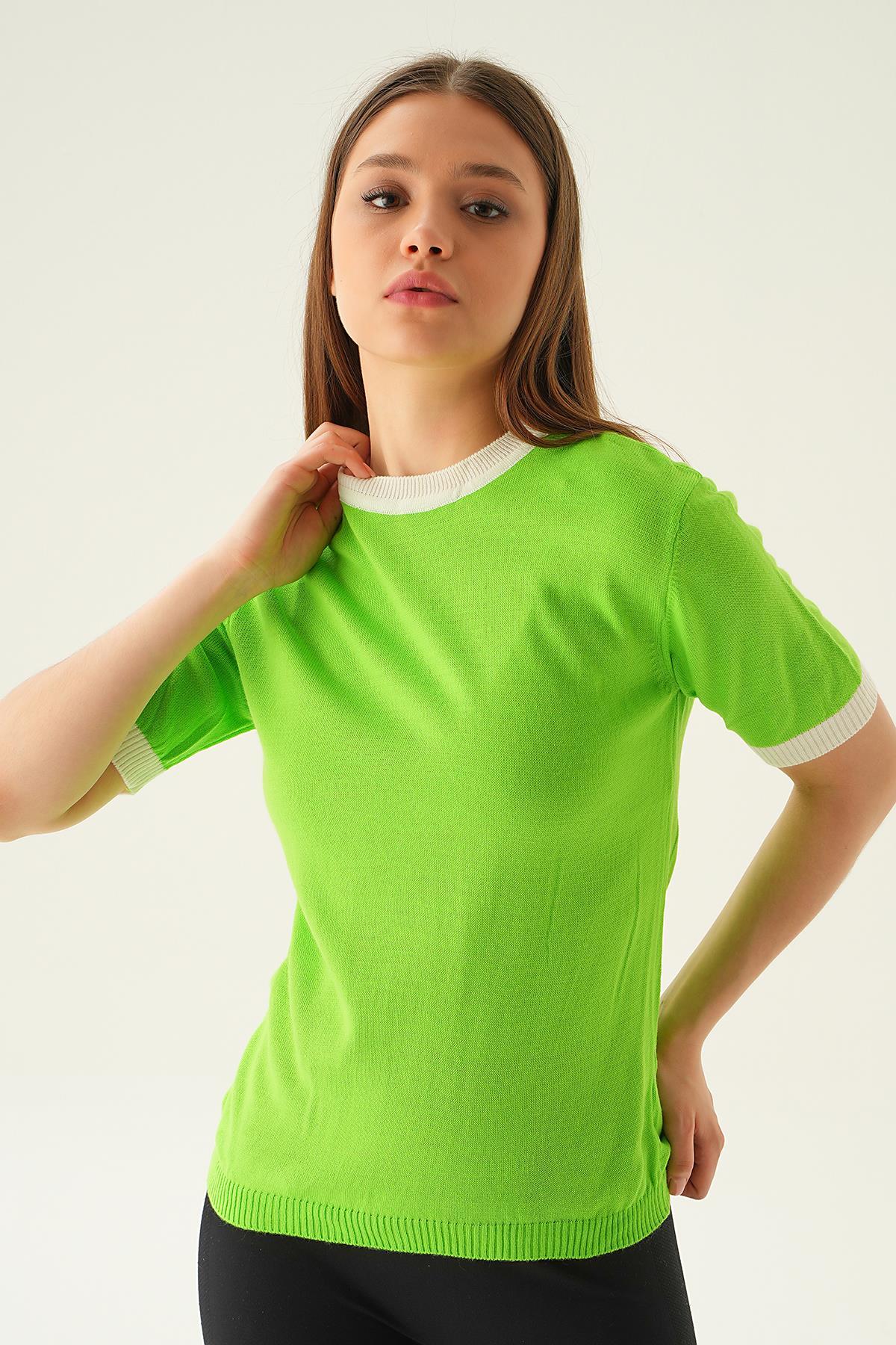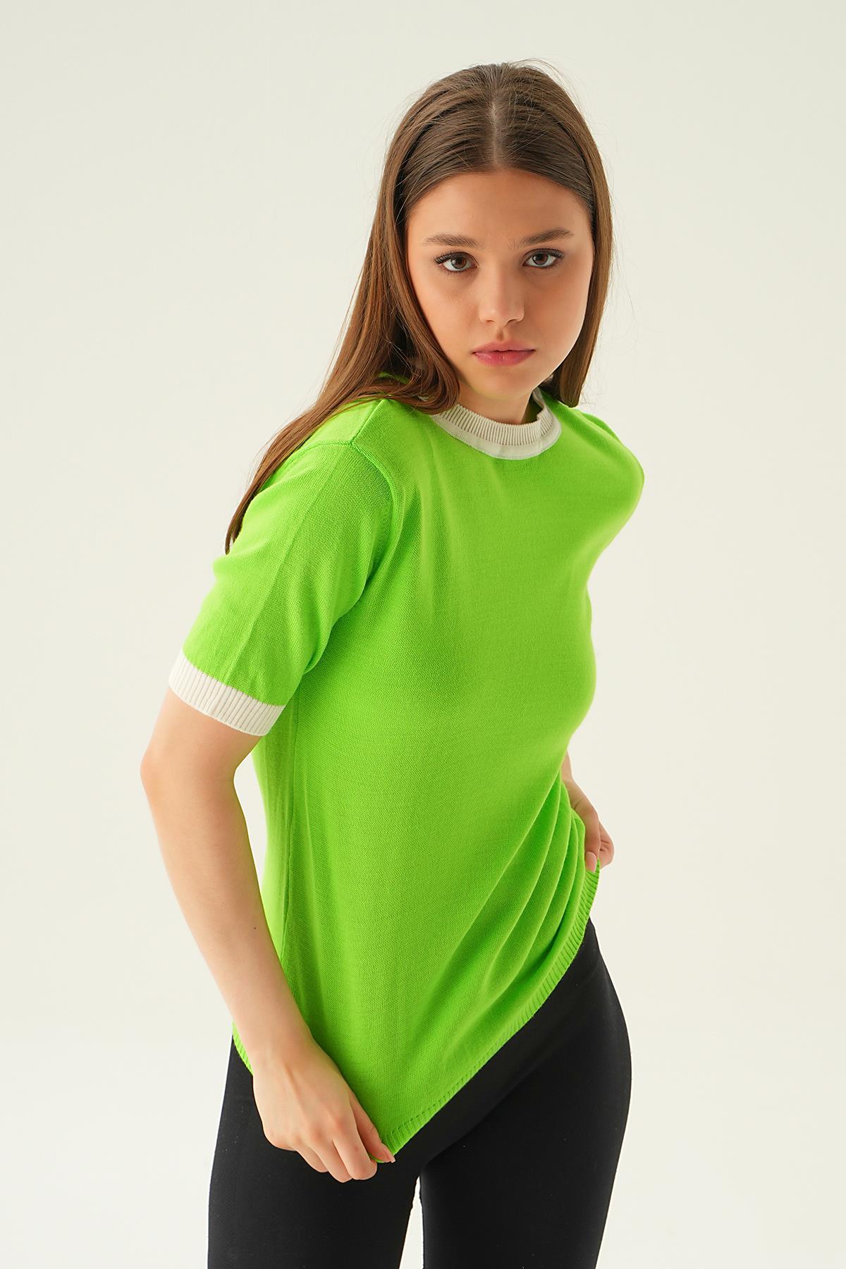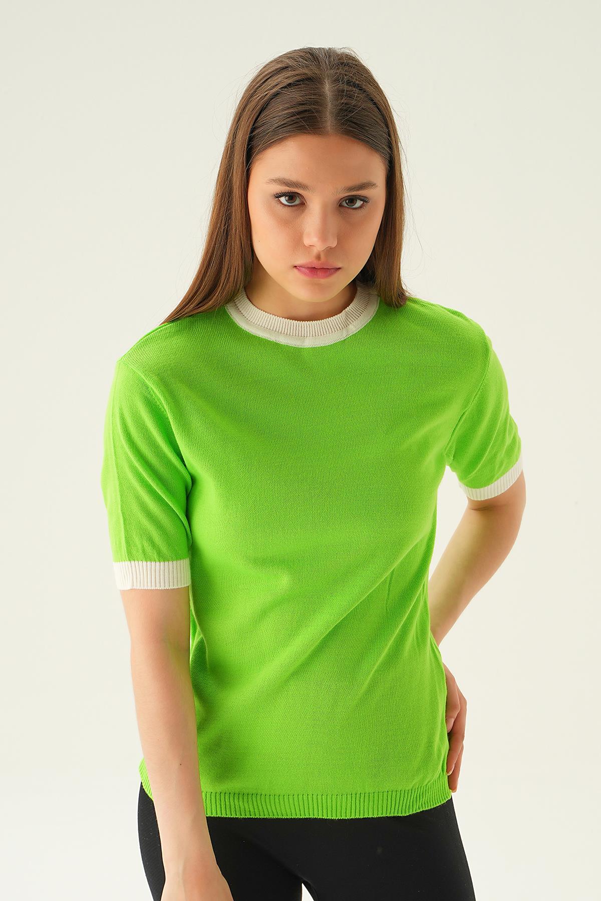 Elma Yeşili Yaka ve Kol Çizgi Tişört 1442