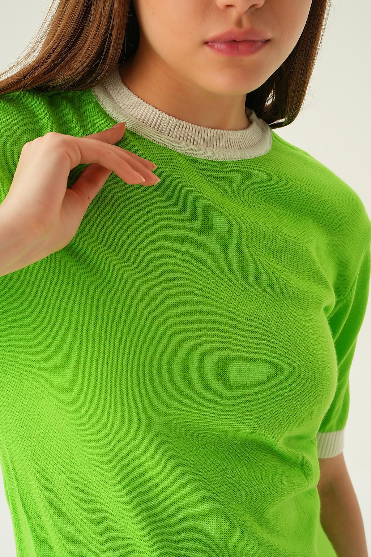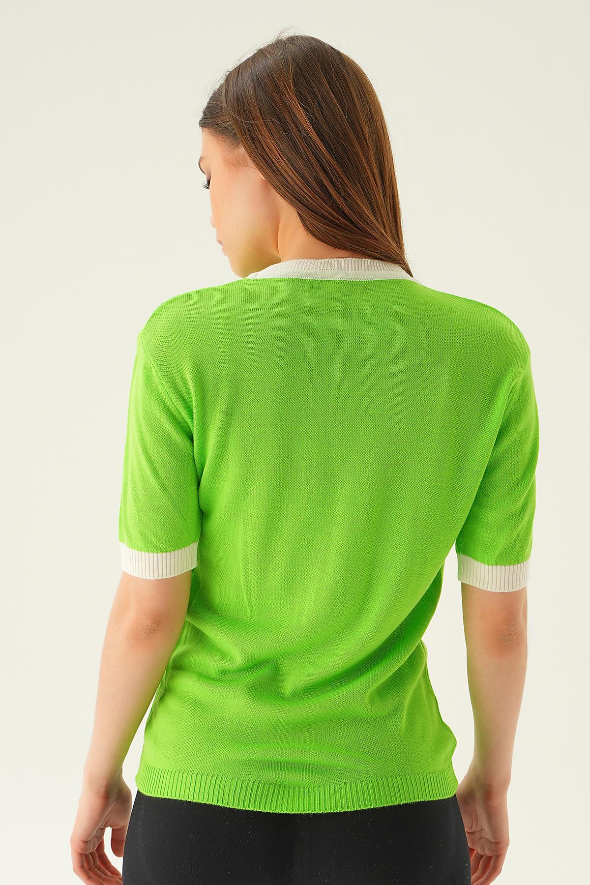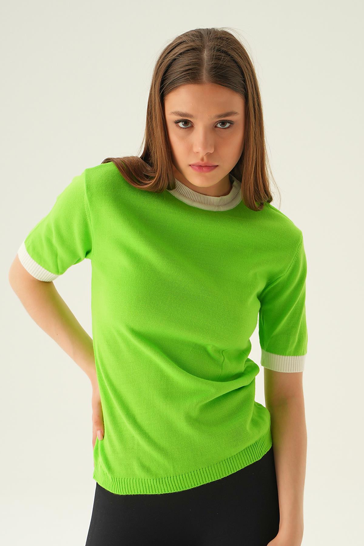 Elma Yeşili Yaka ve Kol Çizgi Tişört 1442