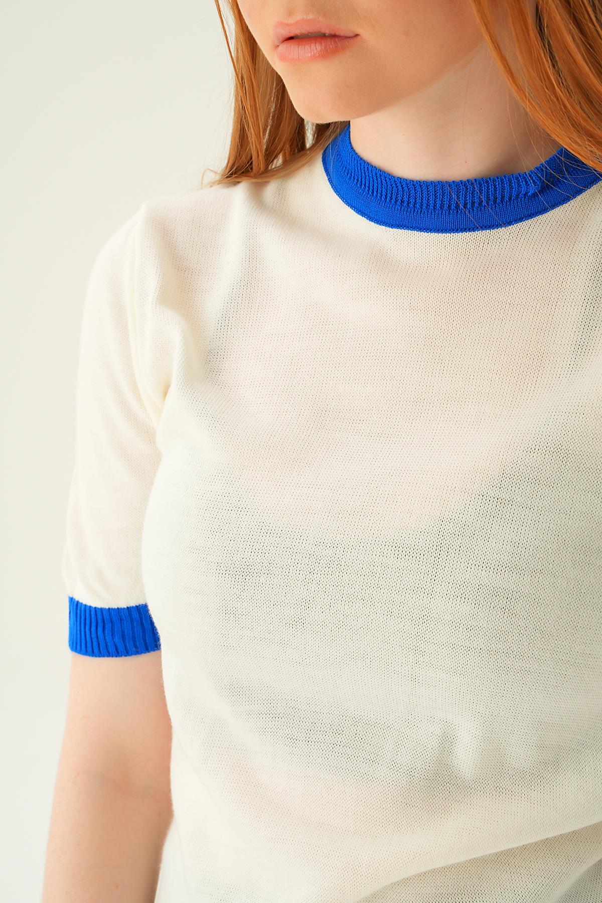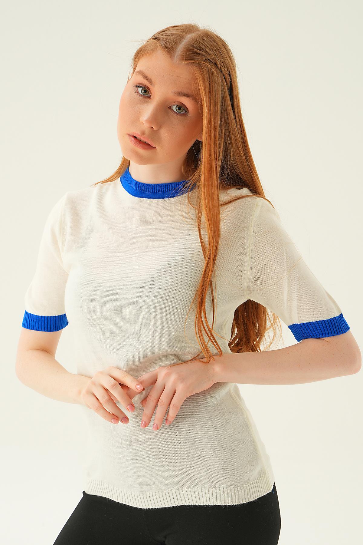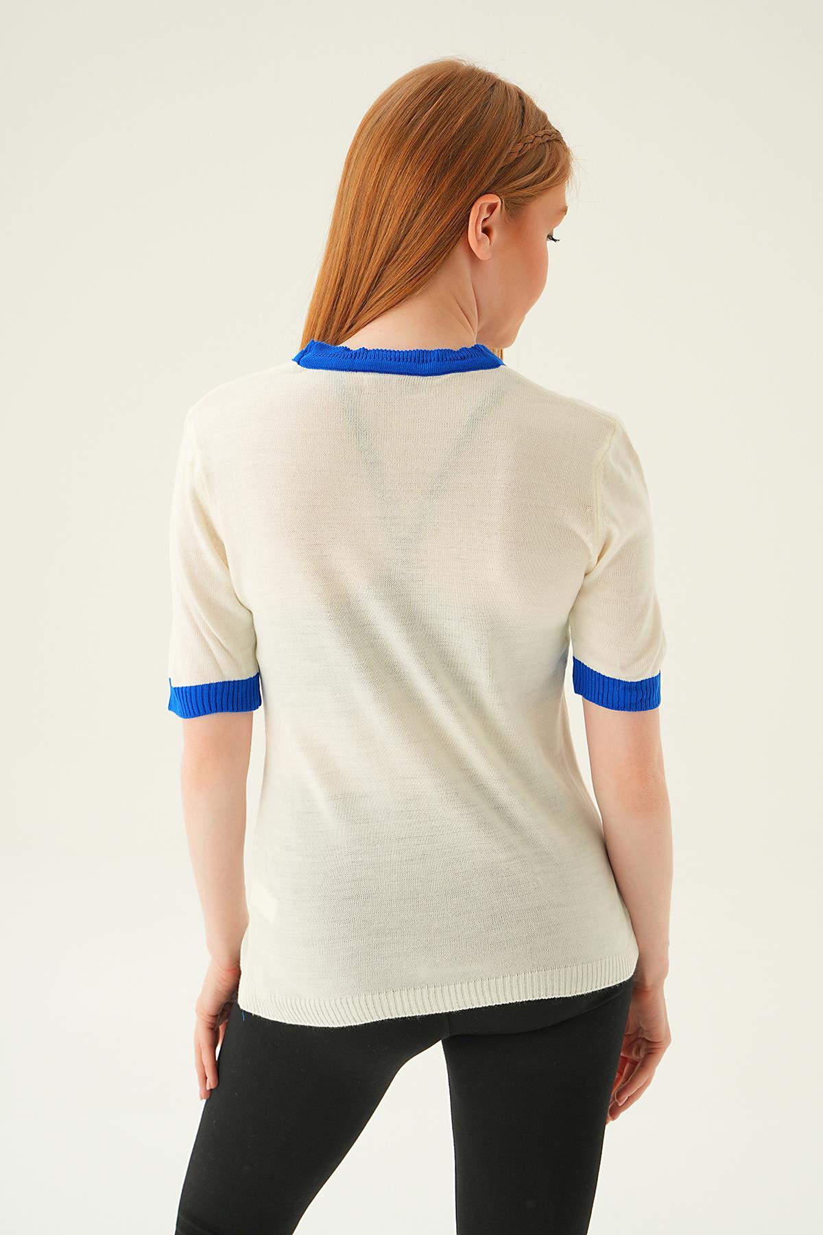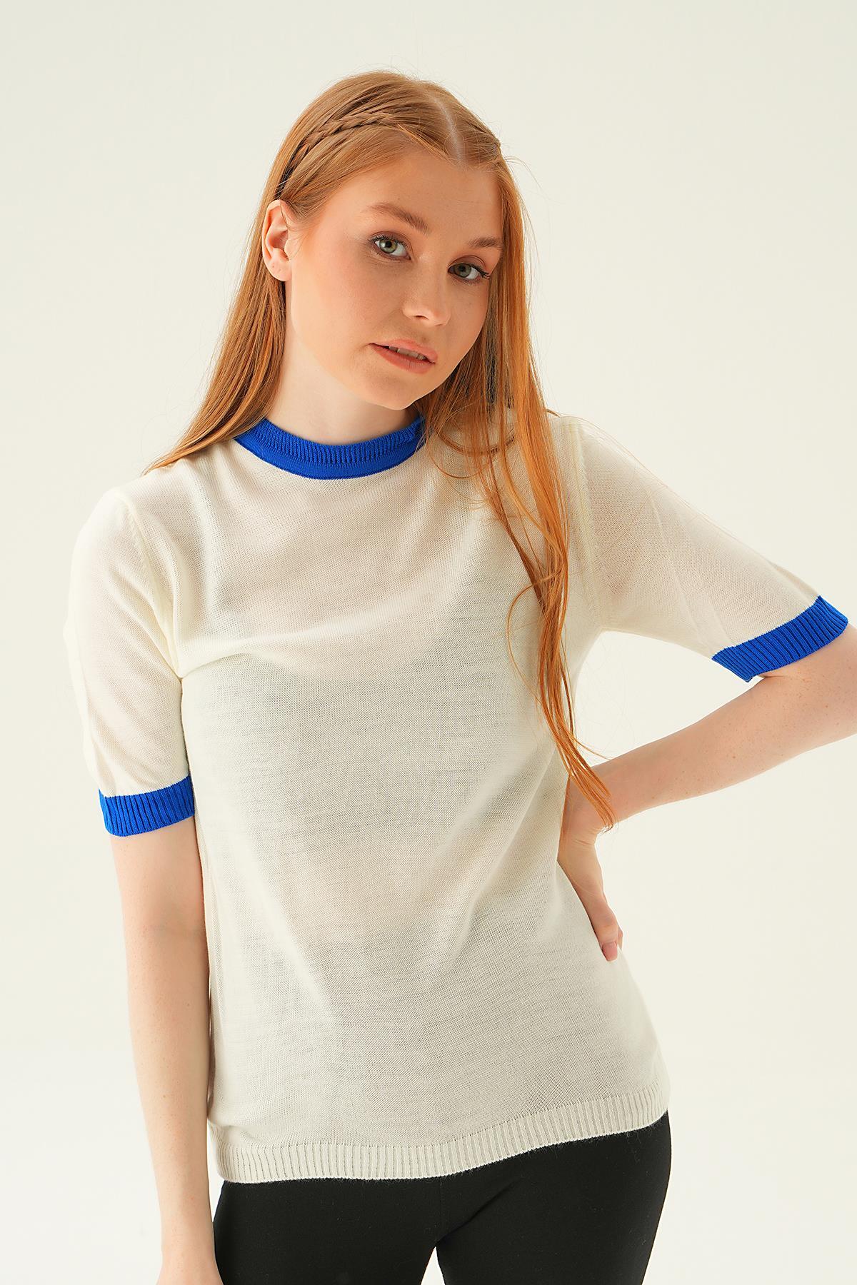 Kemik Yaka ve Kol Çizgi Tişört 1442