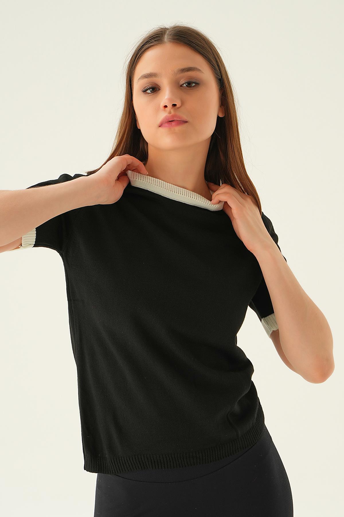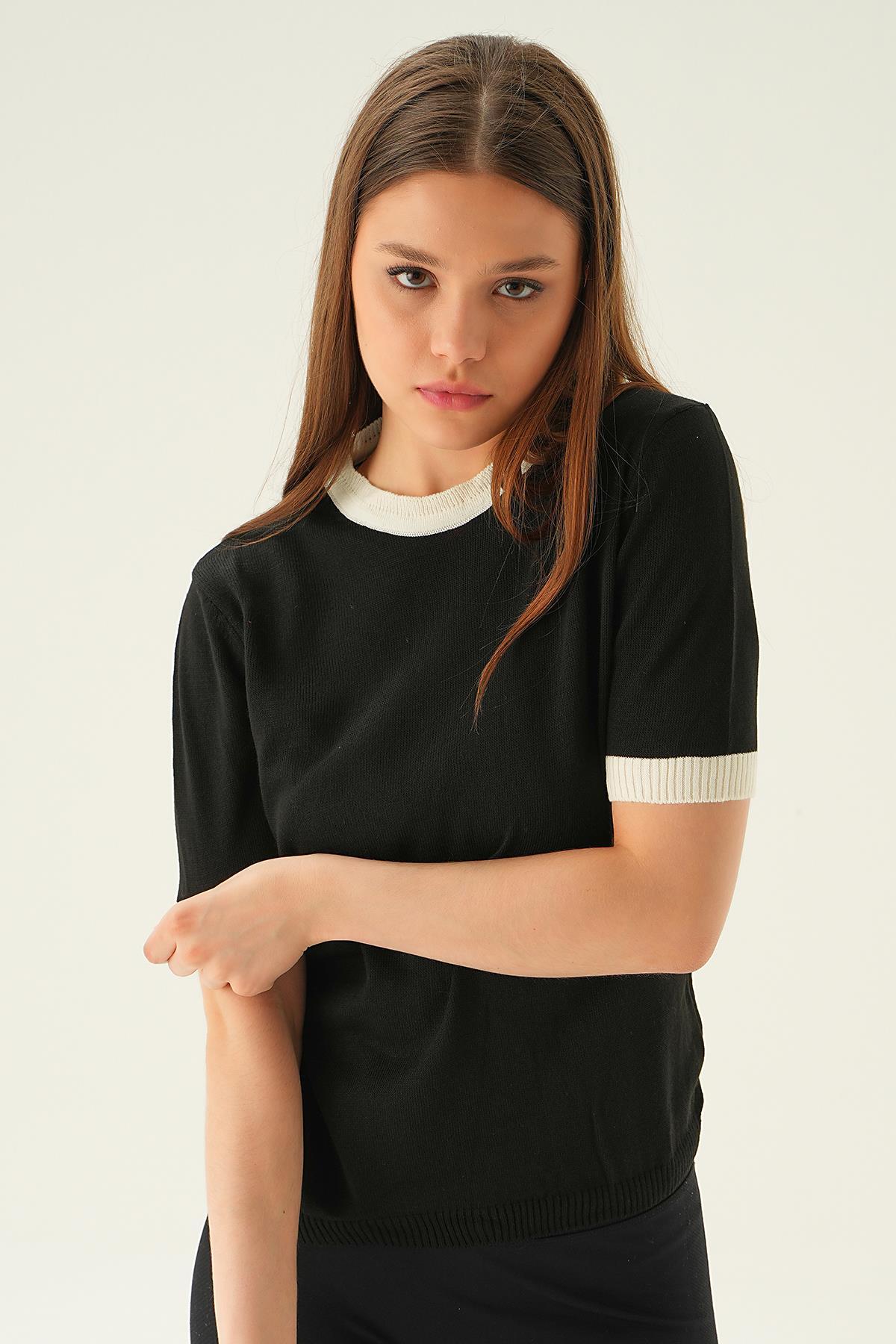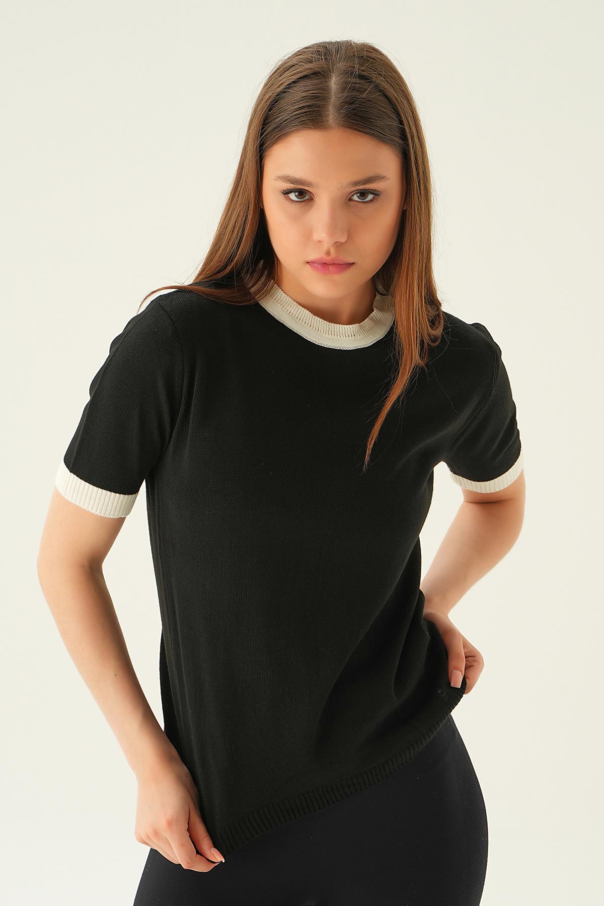 Siyah Yaka ve Kol Çizgi Tişört 1442