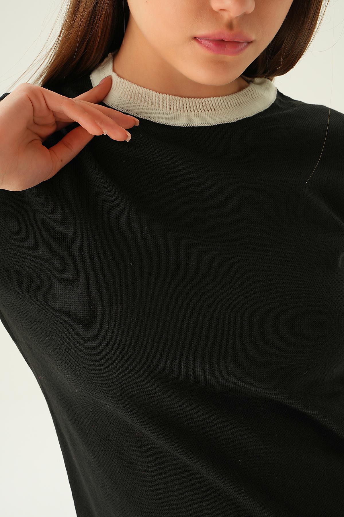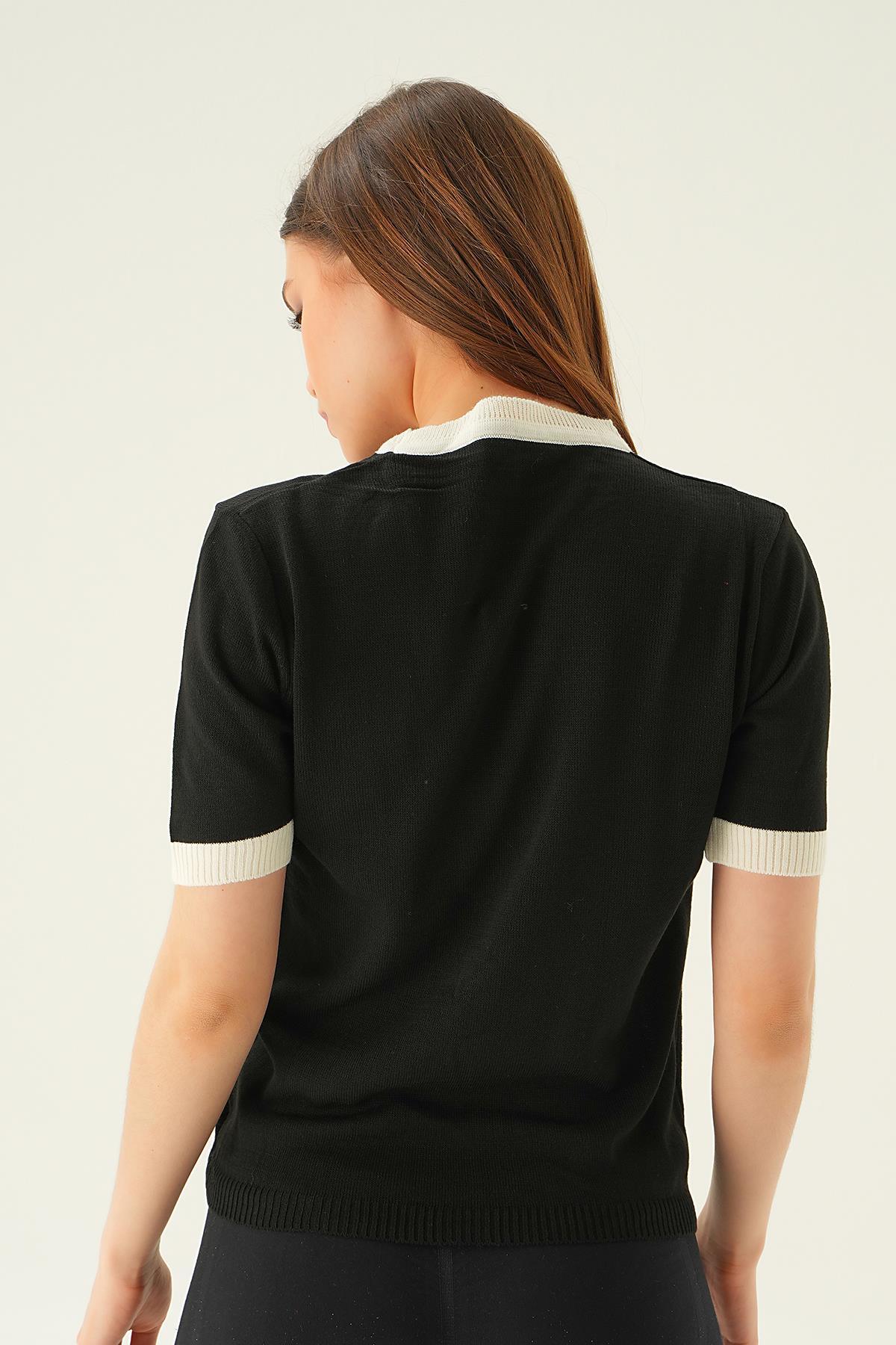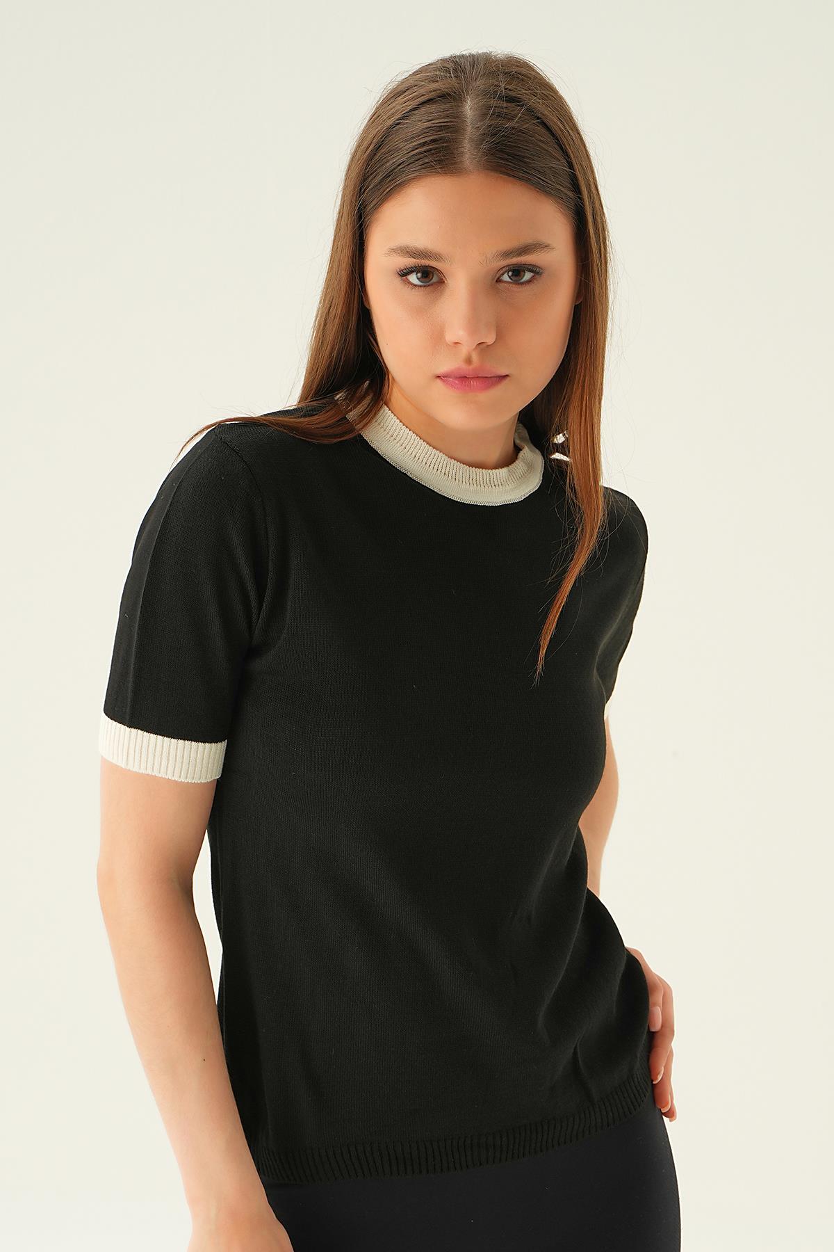 Siyah Yaka ve Kol Çizgi Tişört 1442