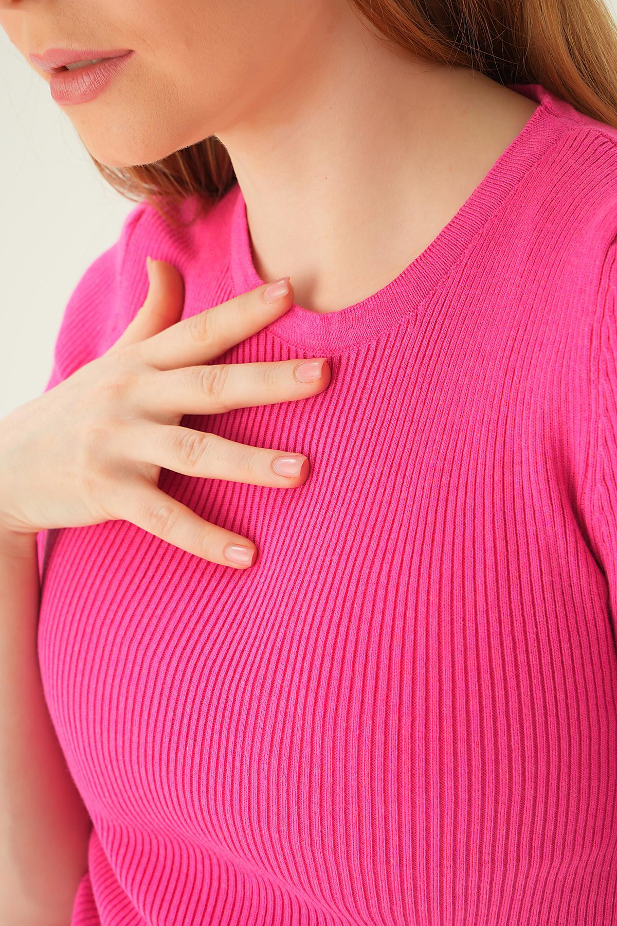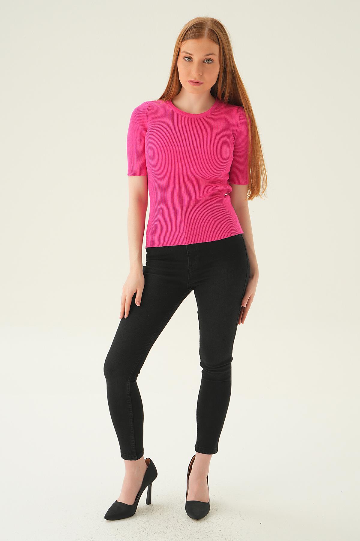 Fuşya Bisiklet Yaka Tişört 1449