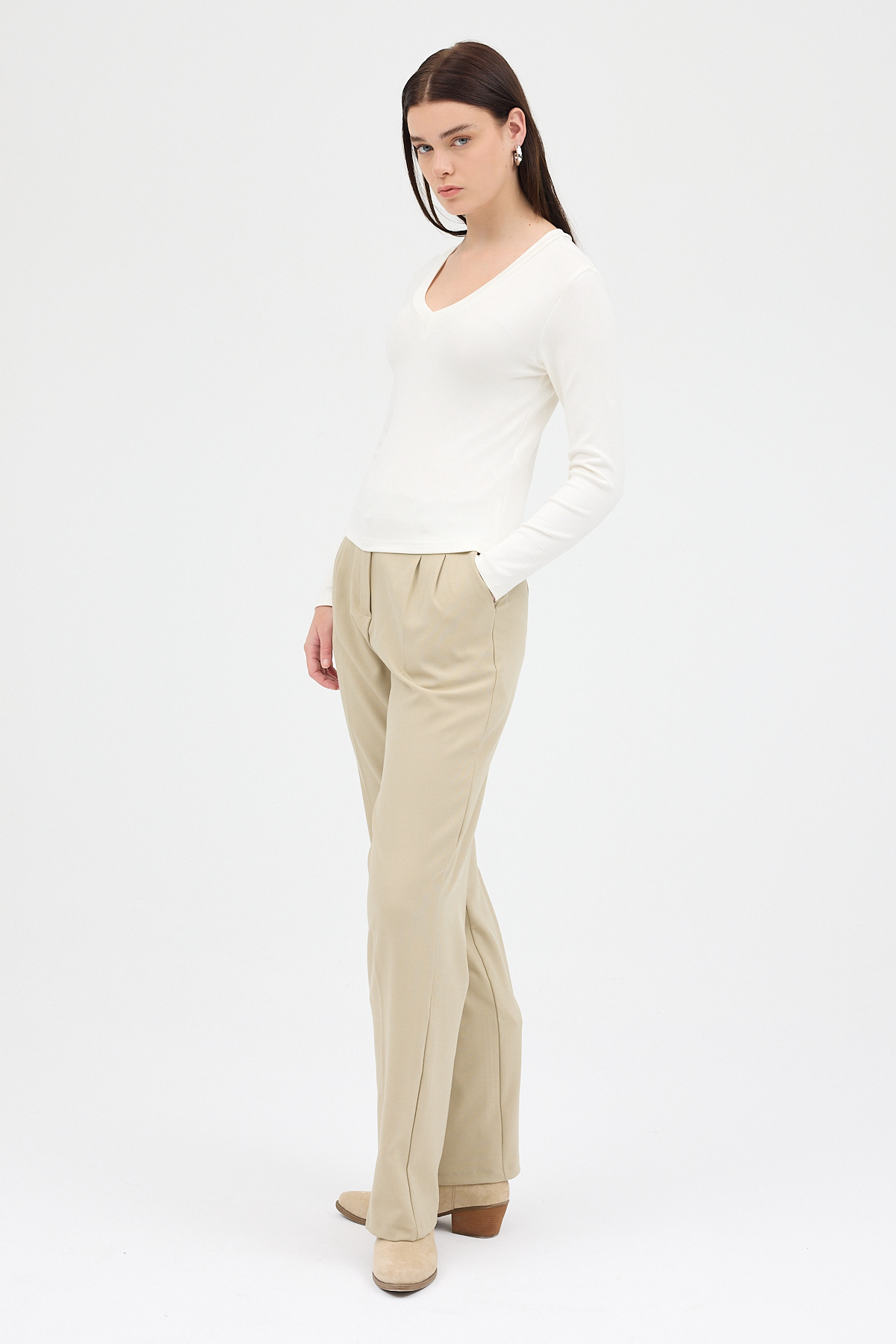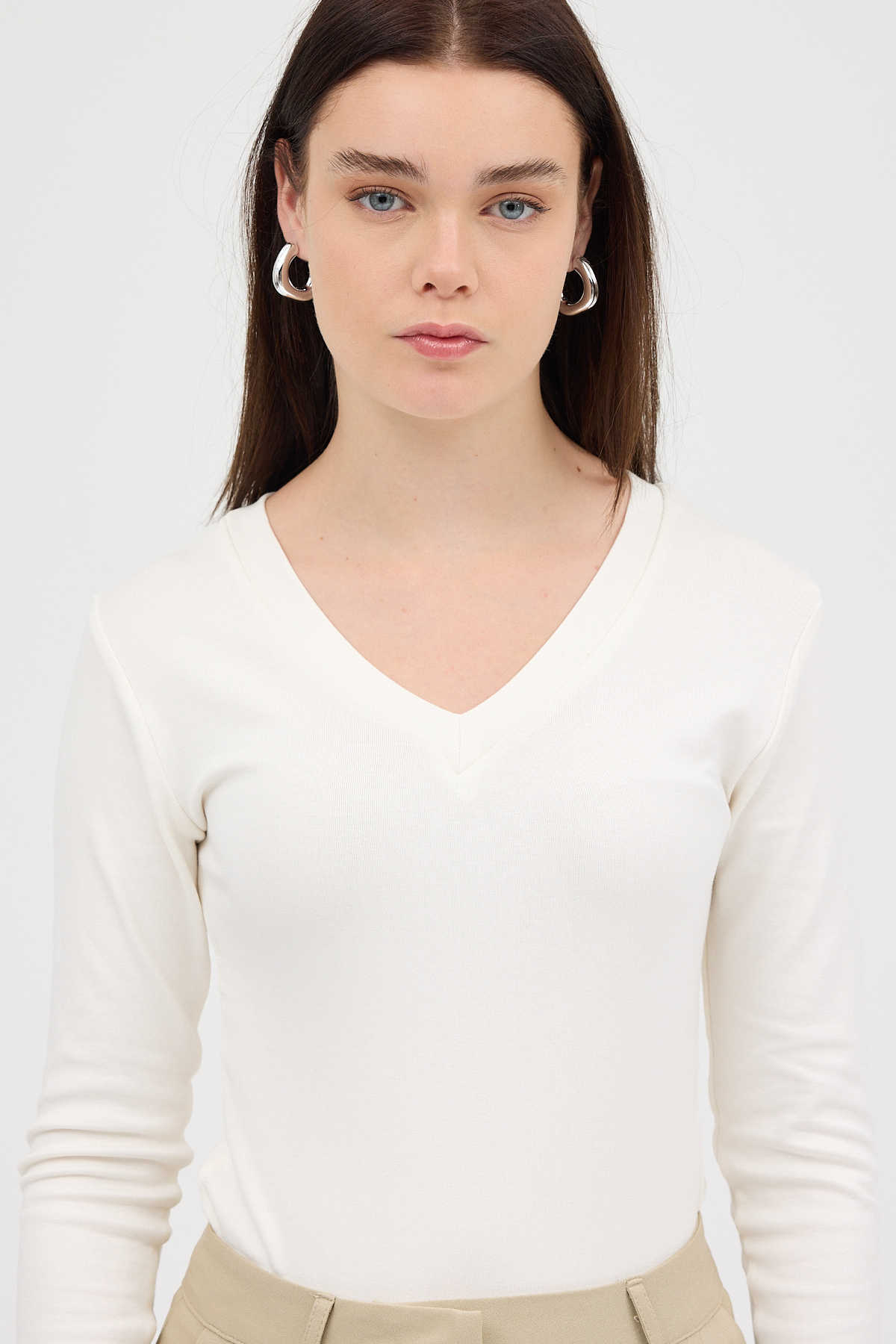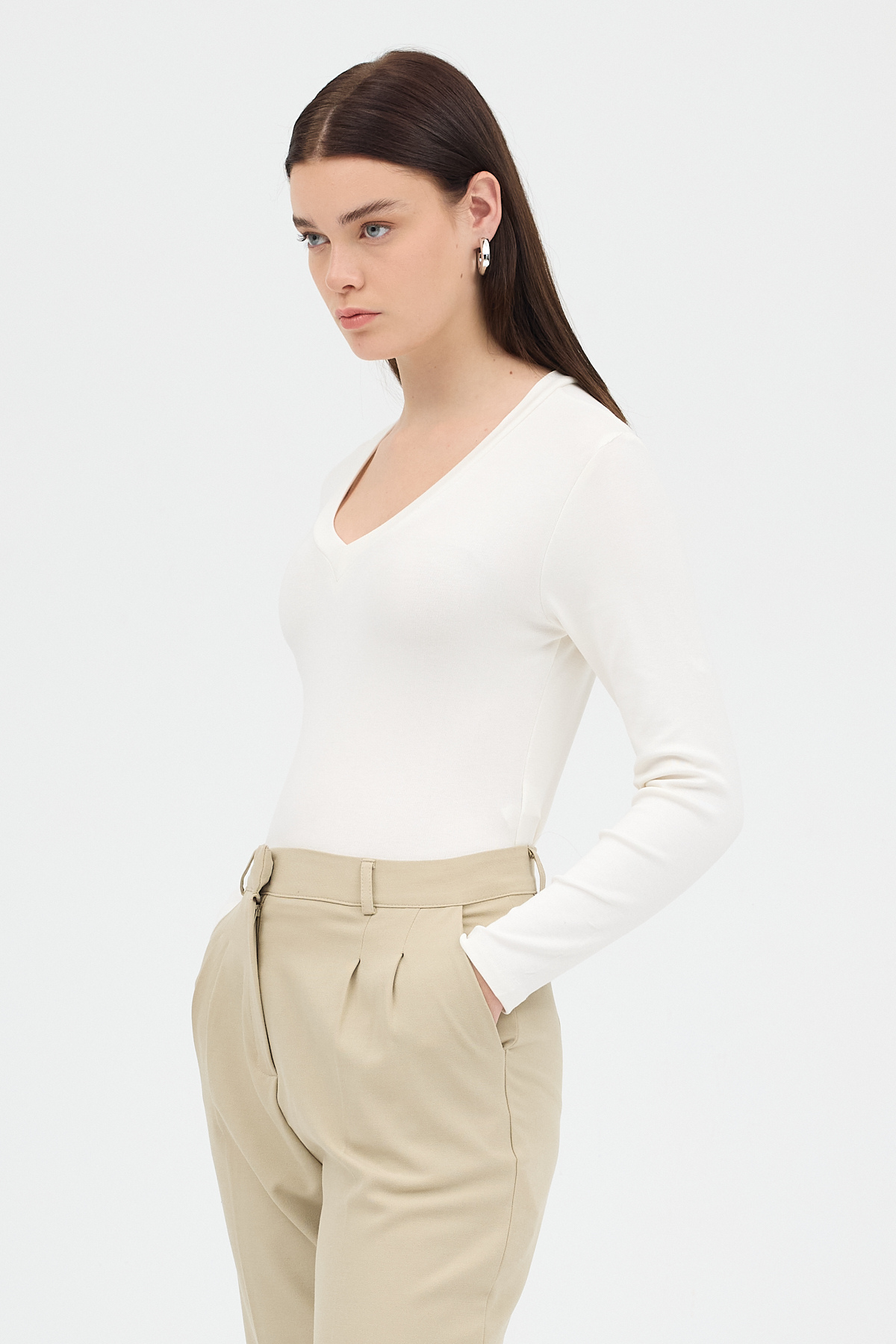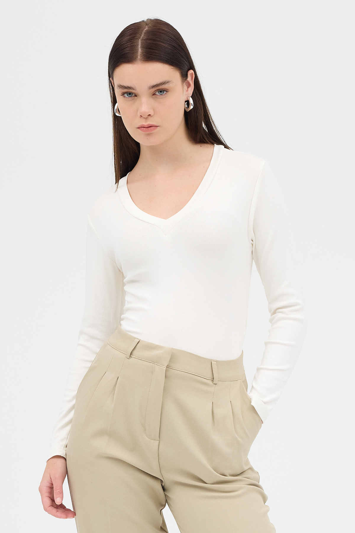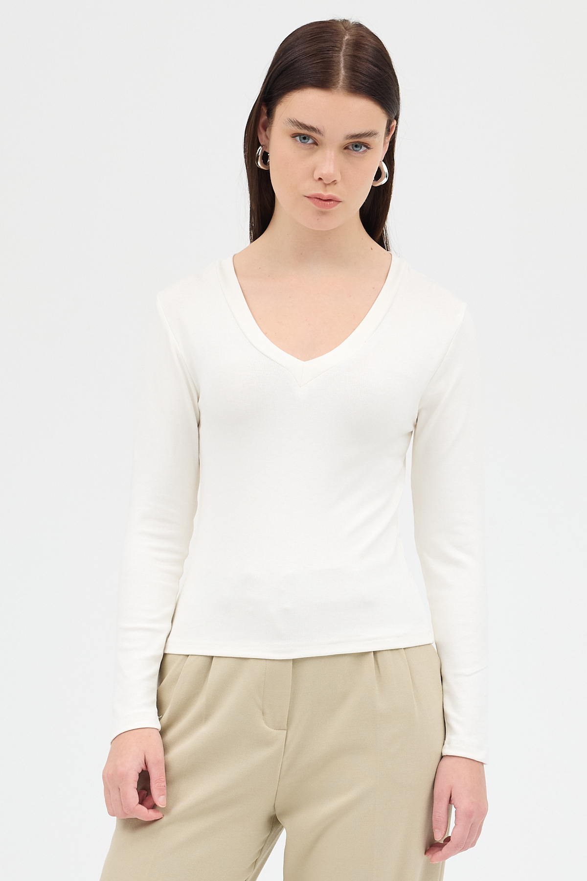Ekru V Yaka Uzun Kol Body 1452