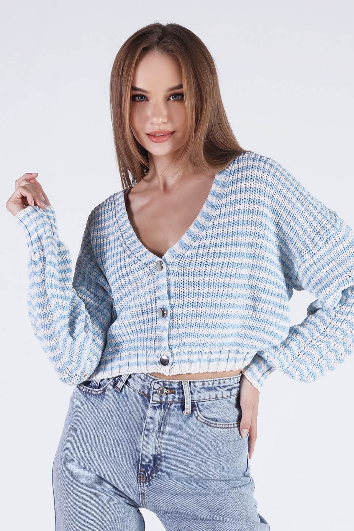Mavi Çizgili Hırka 1456