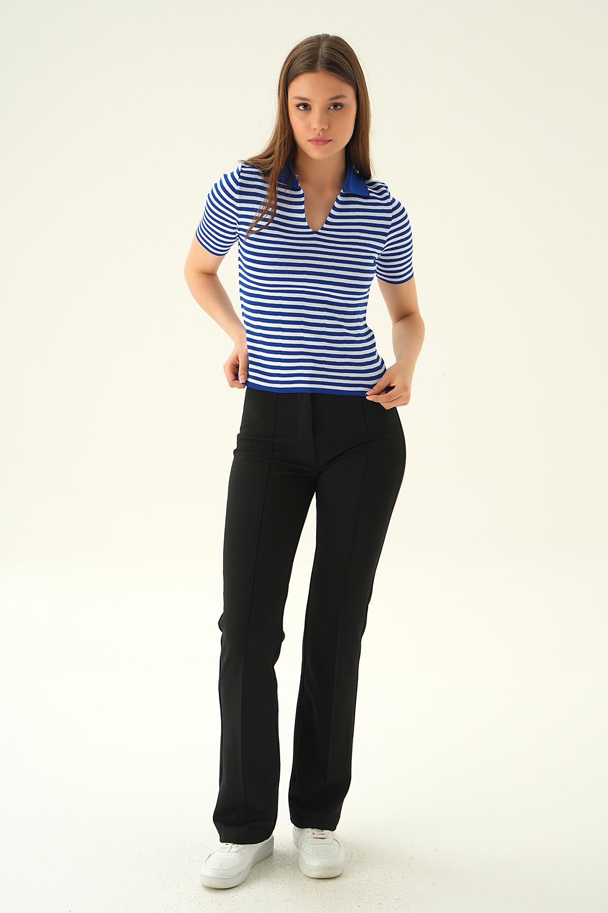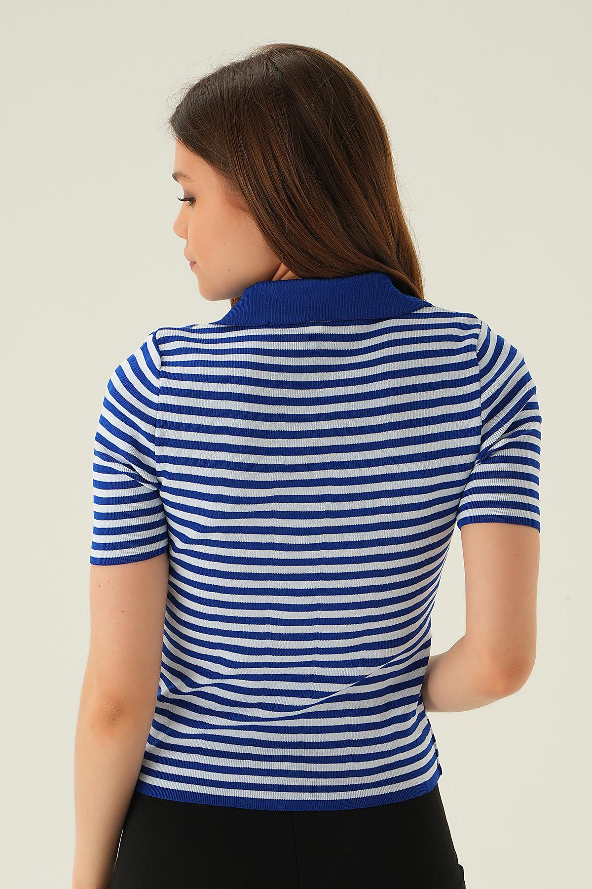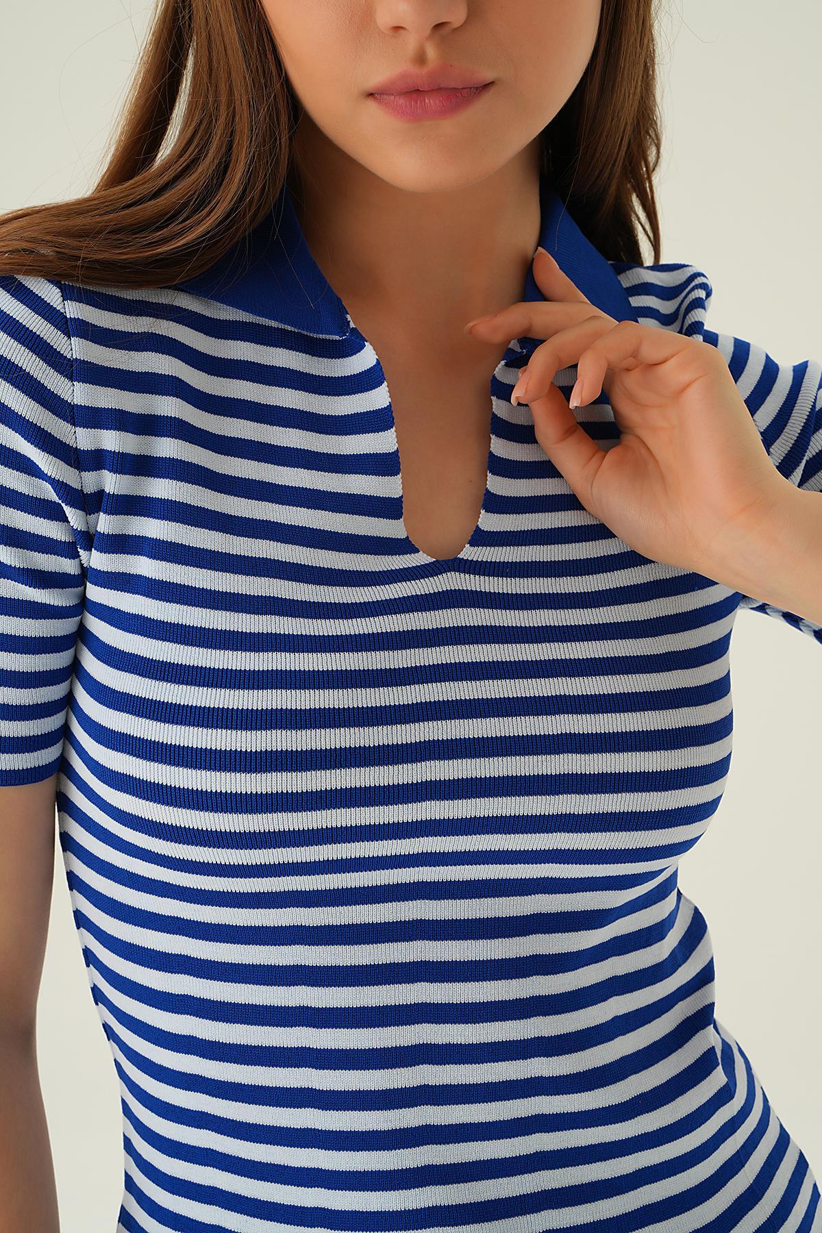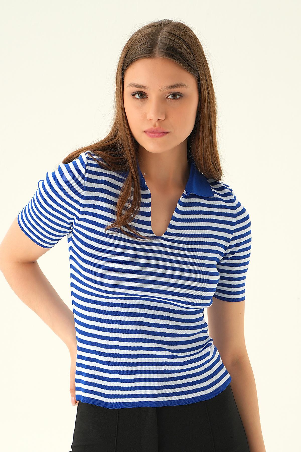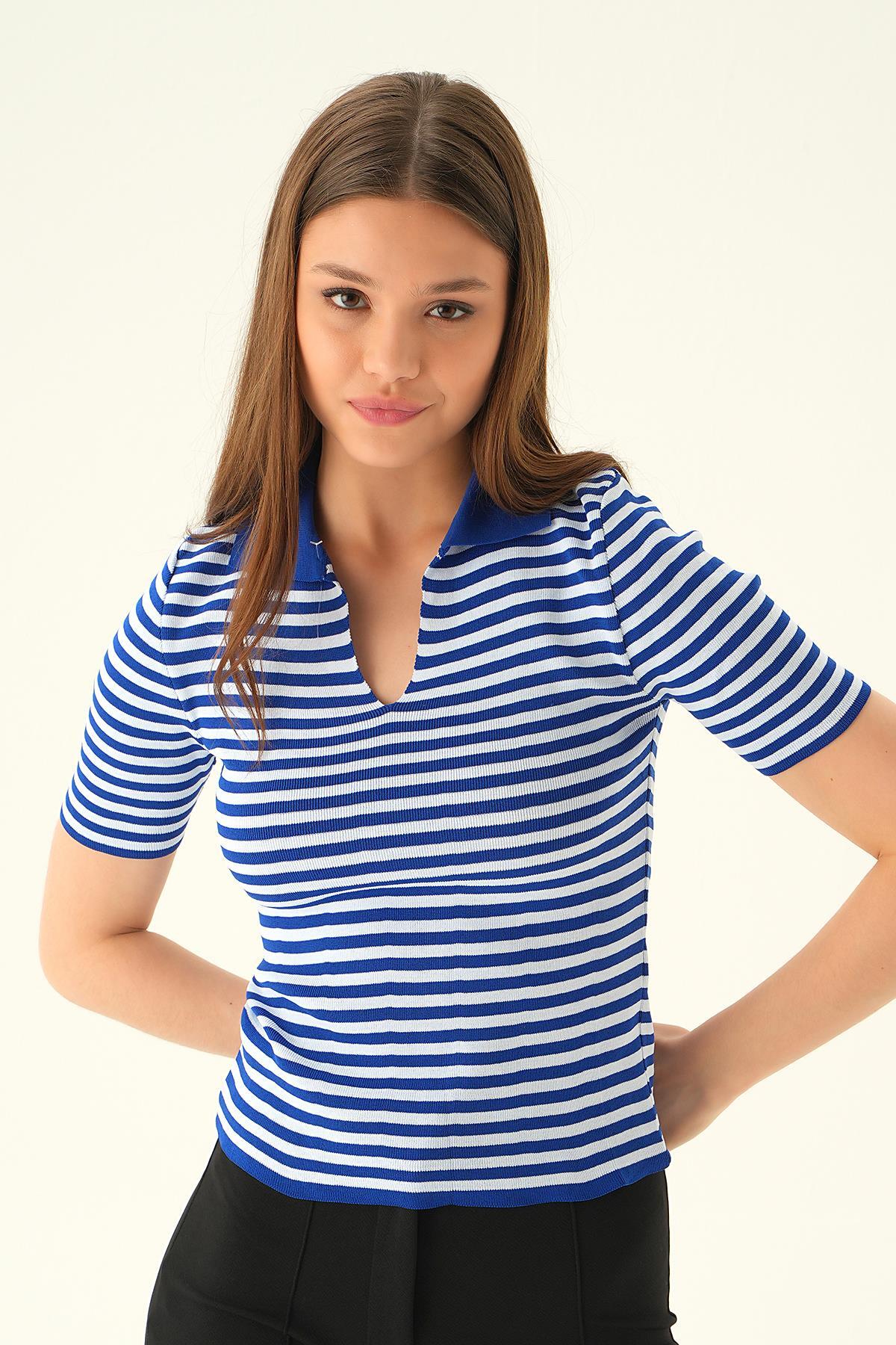 Saks V Yaka Çizgili Tişört 1456