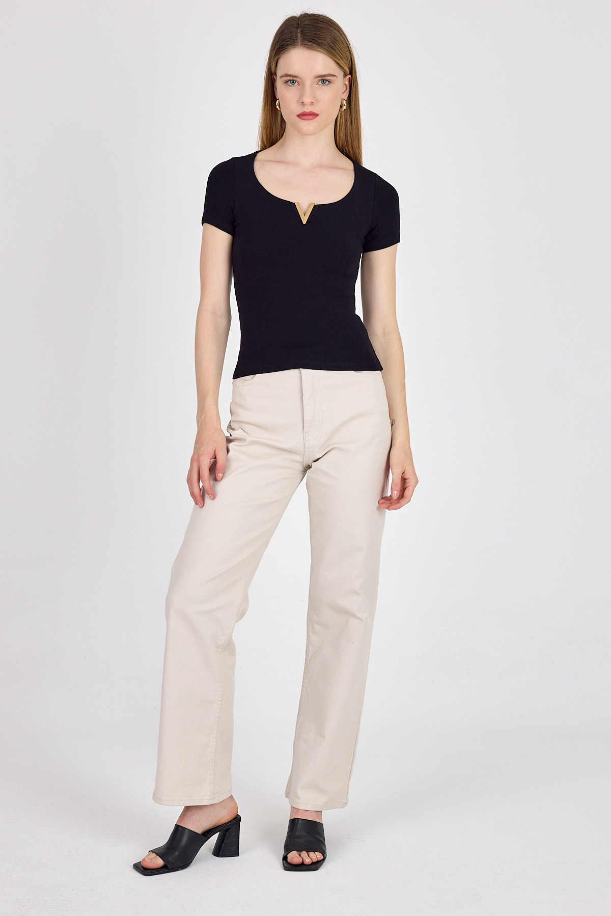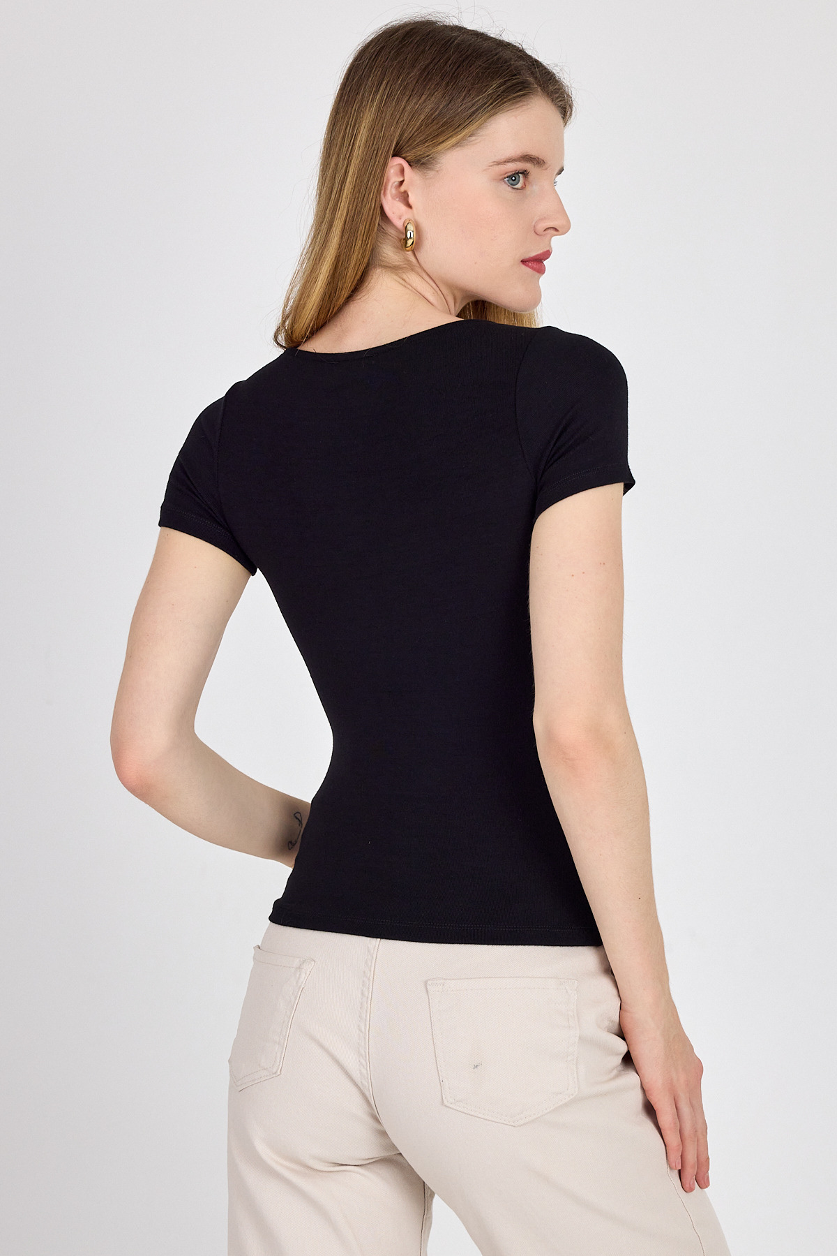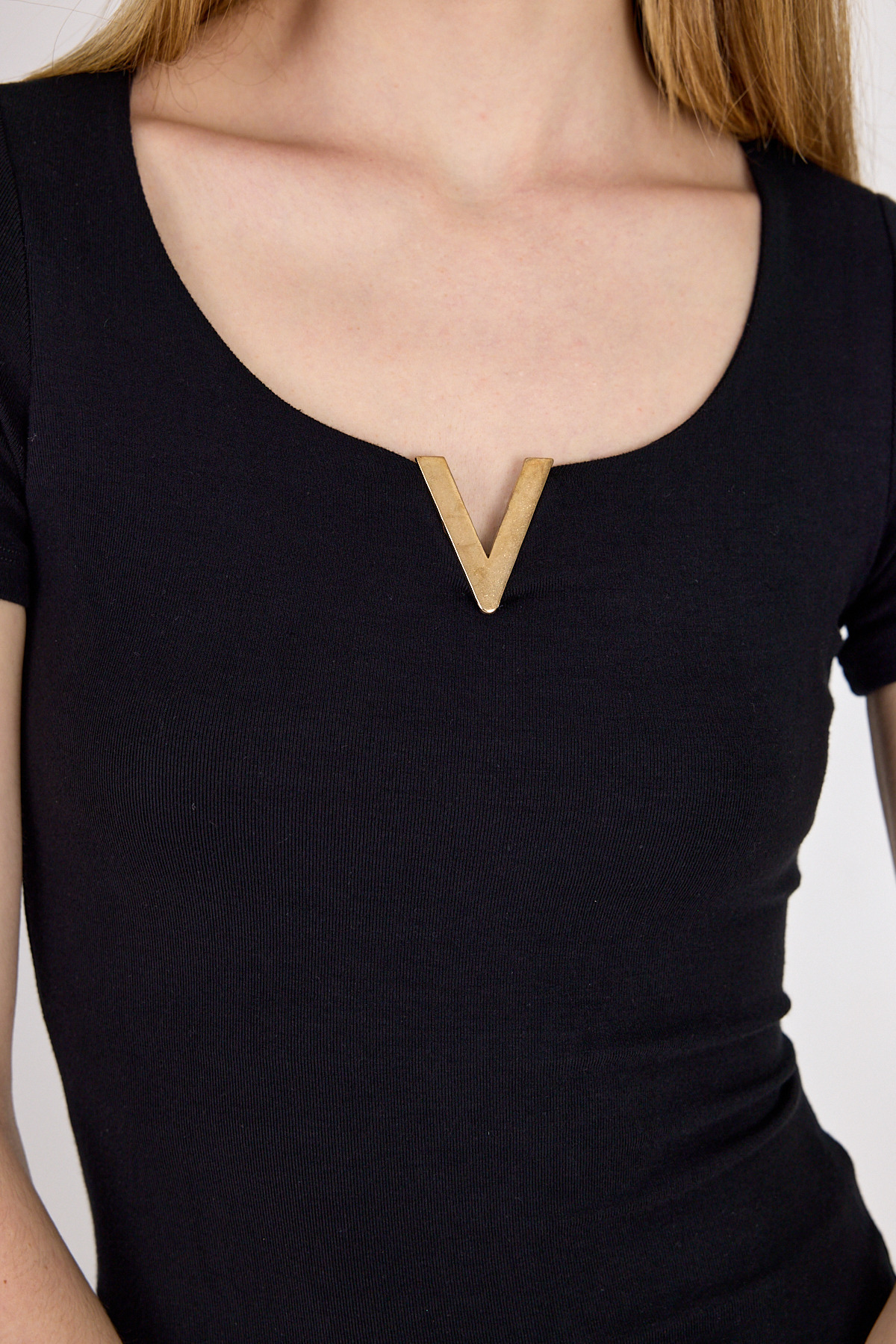 Siyah Gold Aksesuar Detaylı Viskoz/Yumuşak Kumaş Tişört 1460