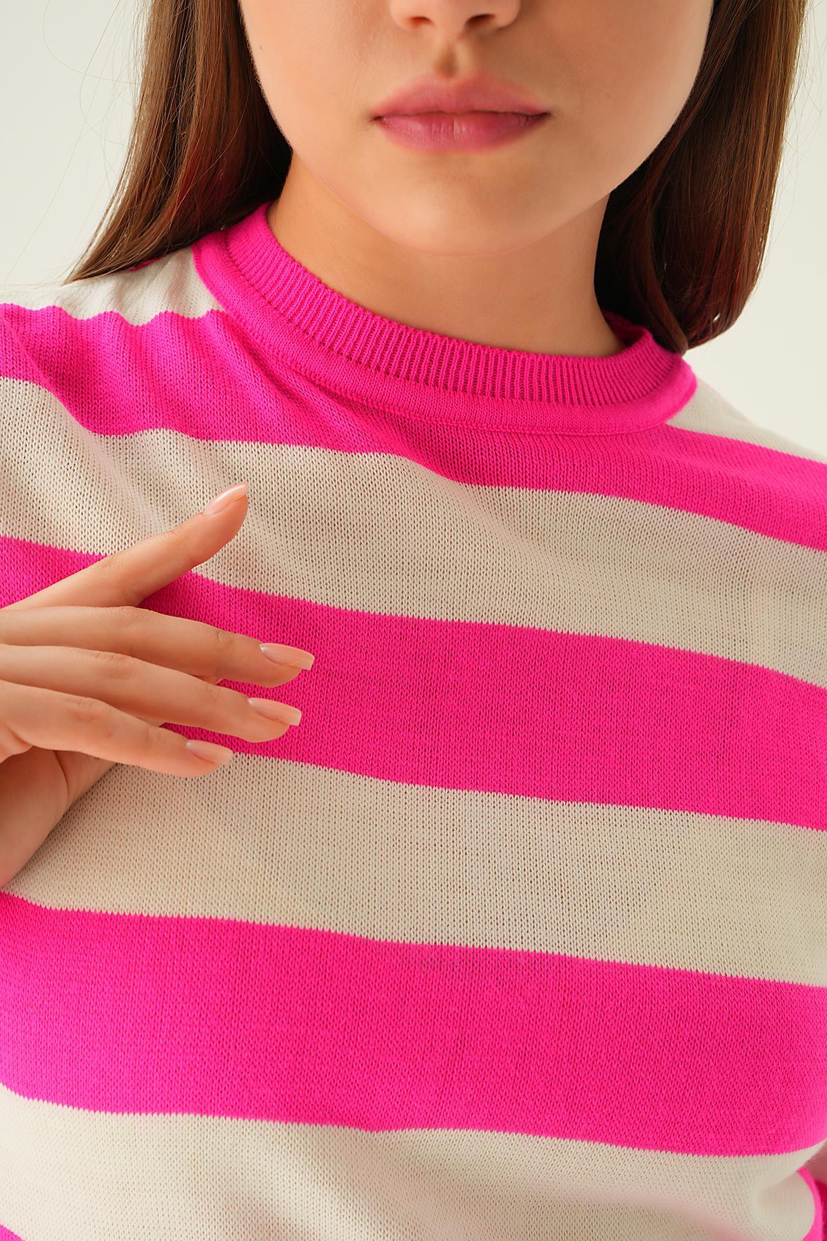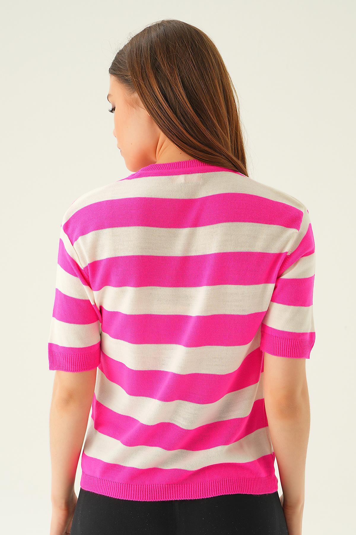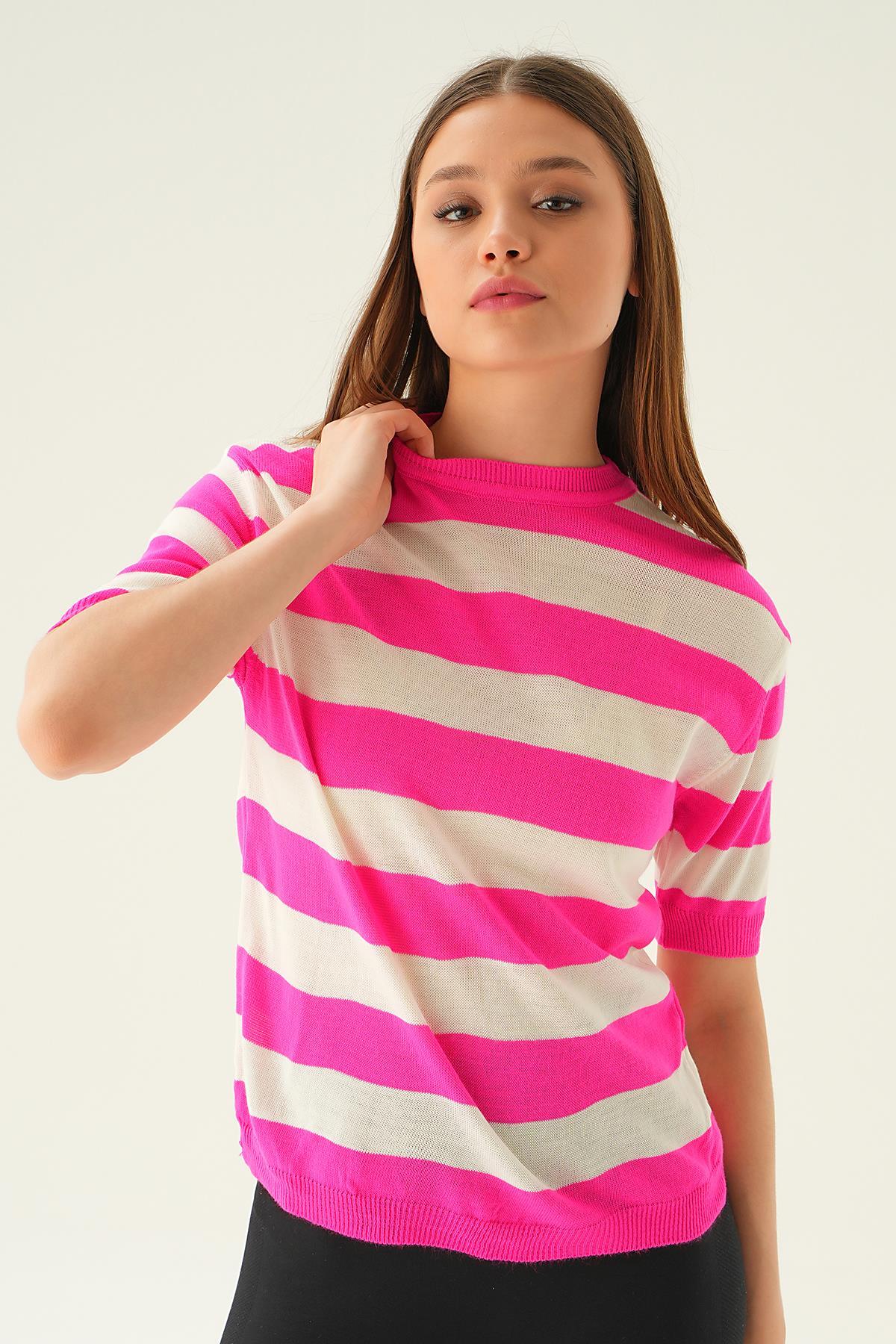 Fuşya Kalın Çizgili Tişört 1461