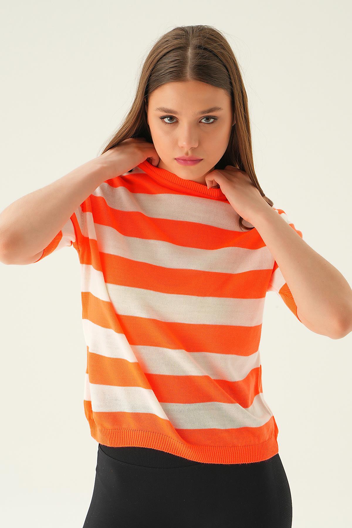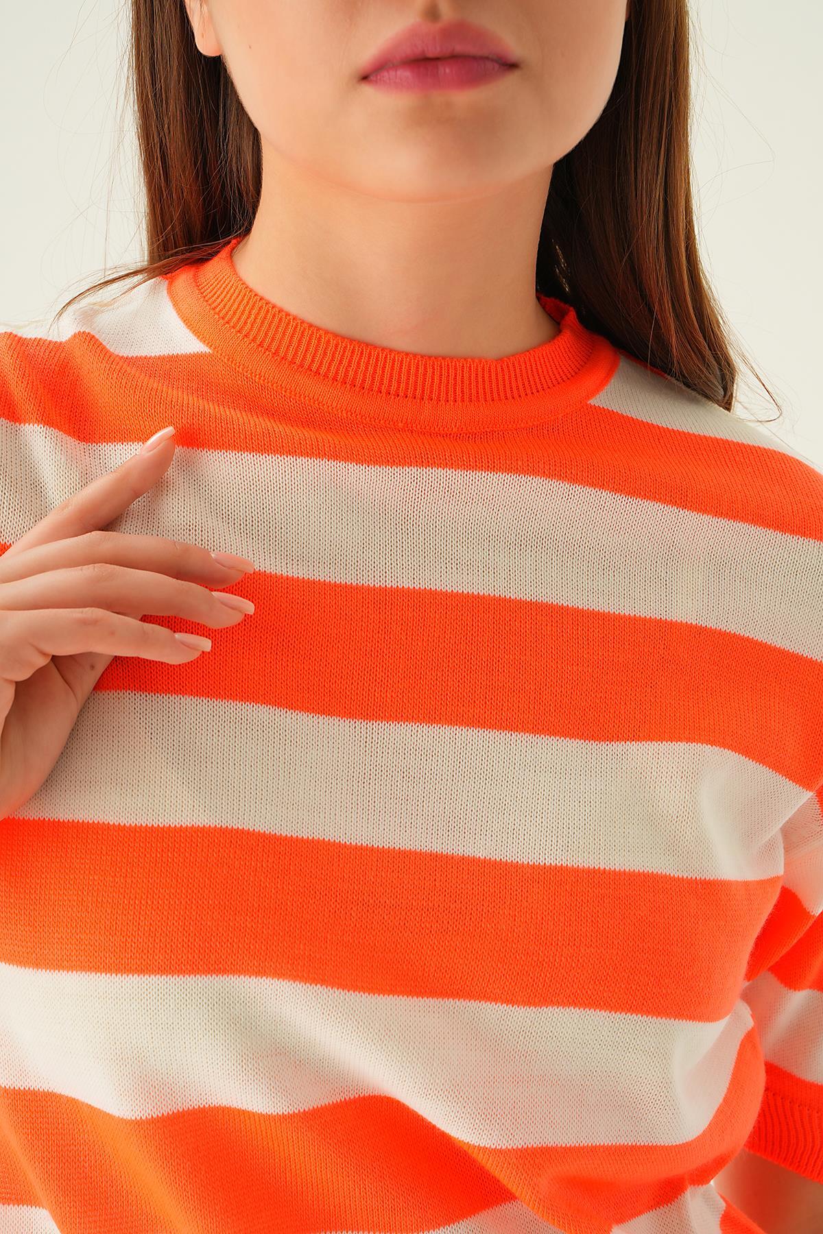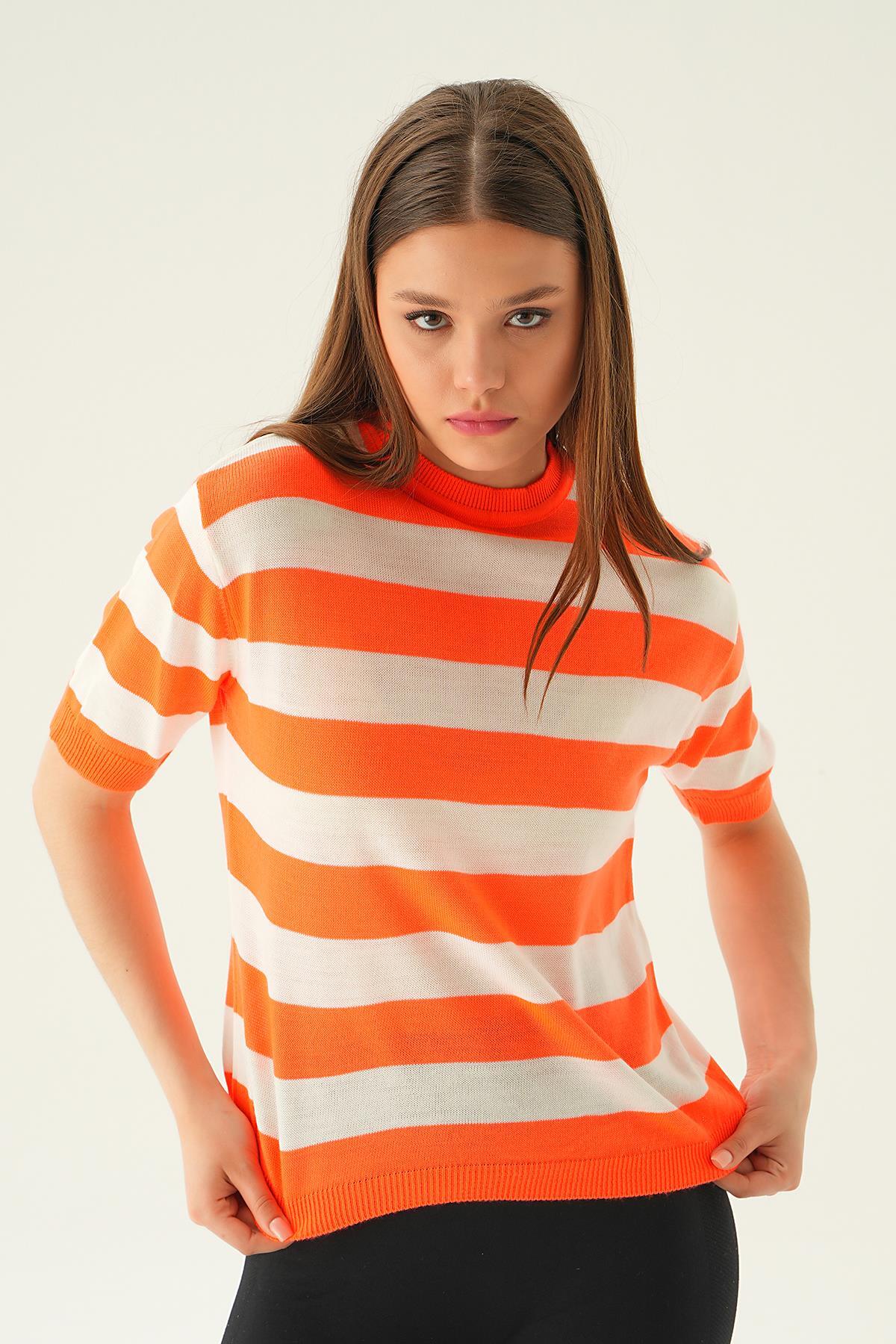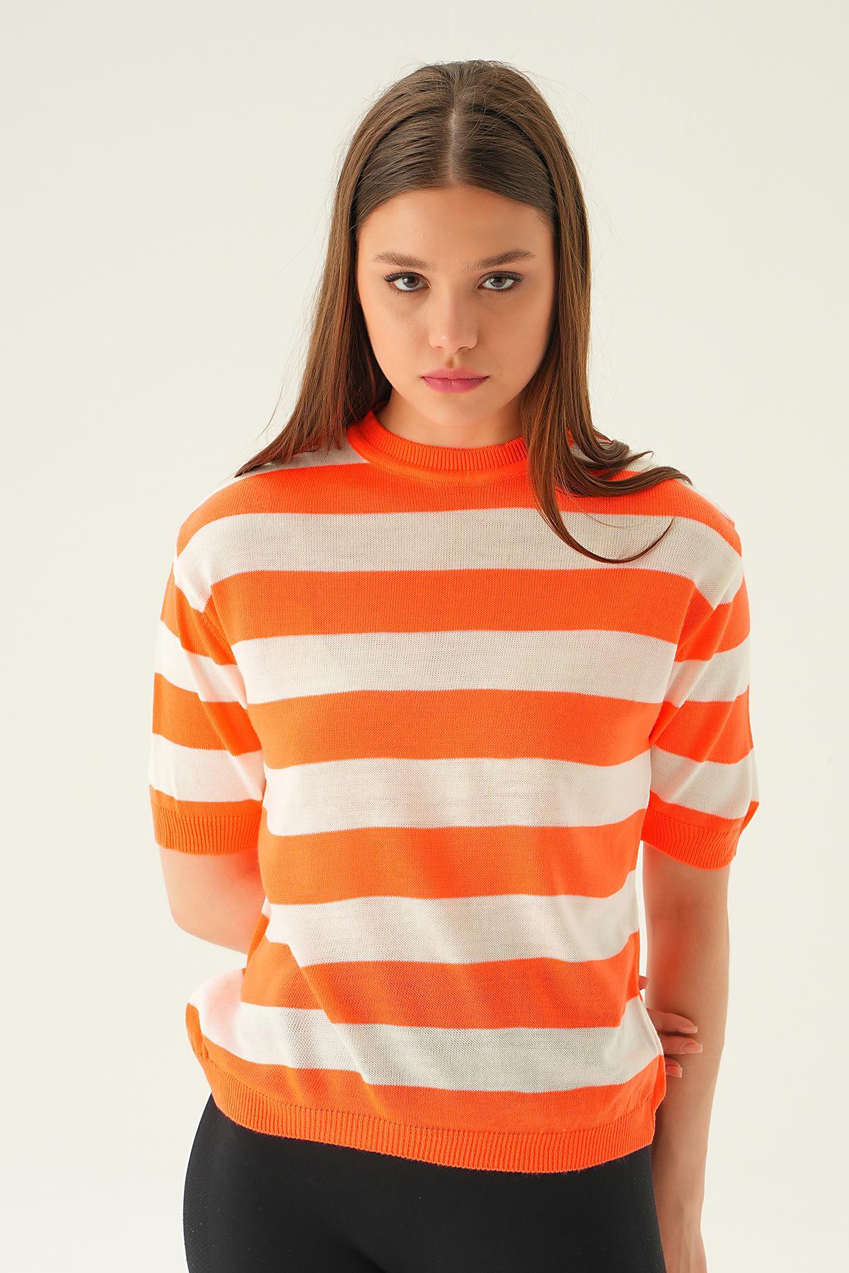 Orange Kalın Çizgili Tişört 1461