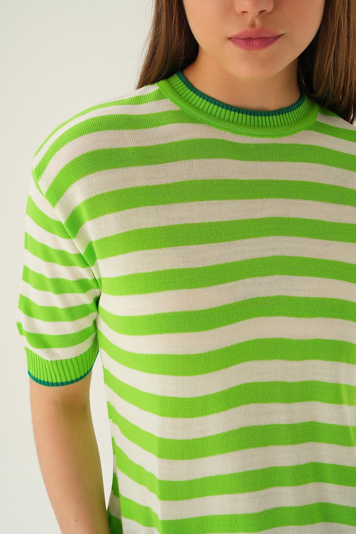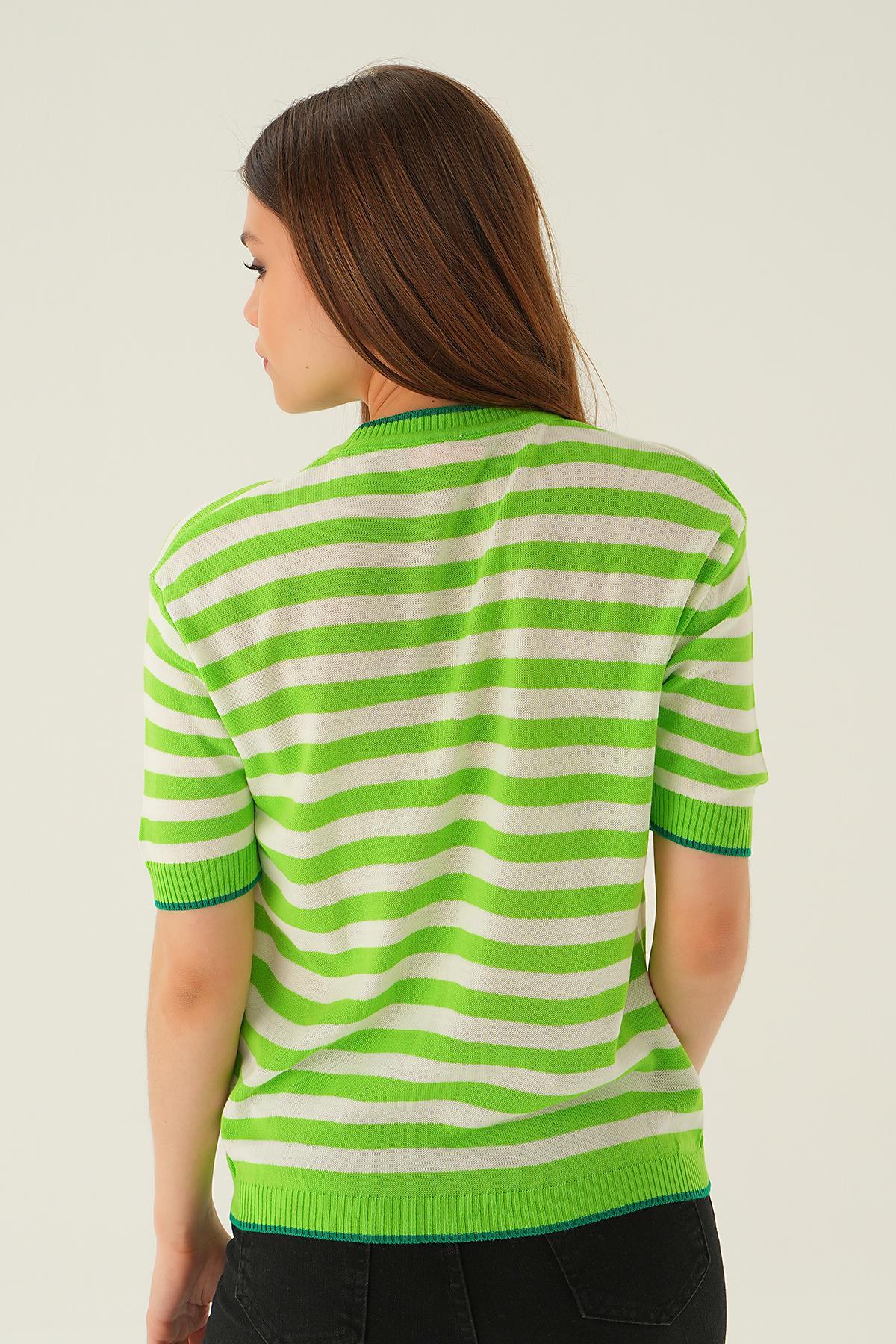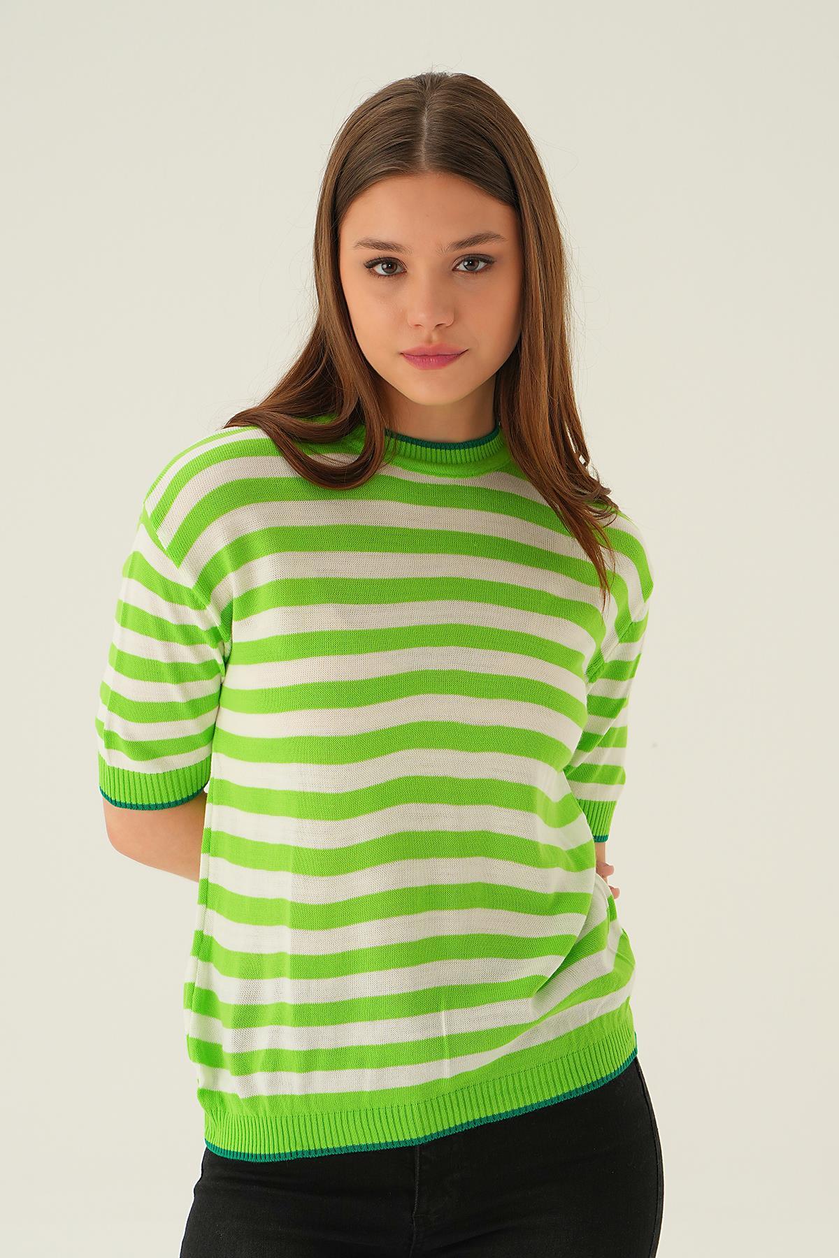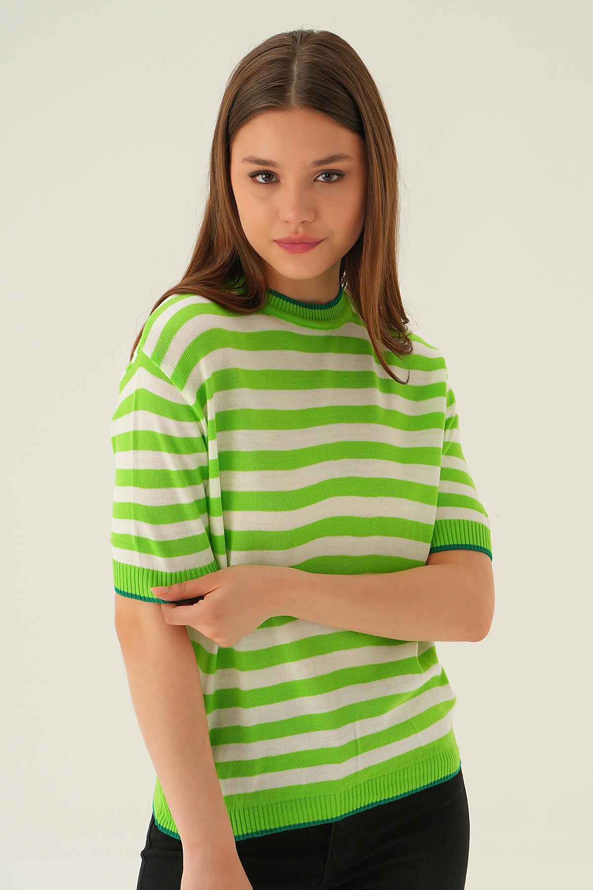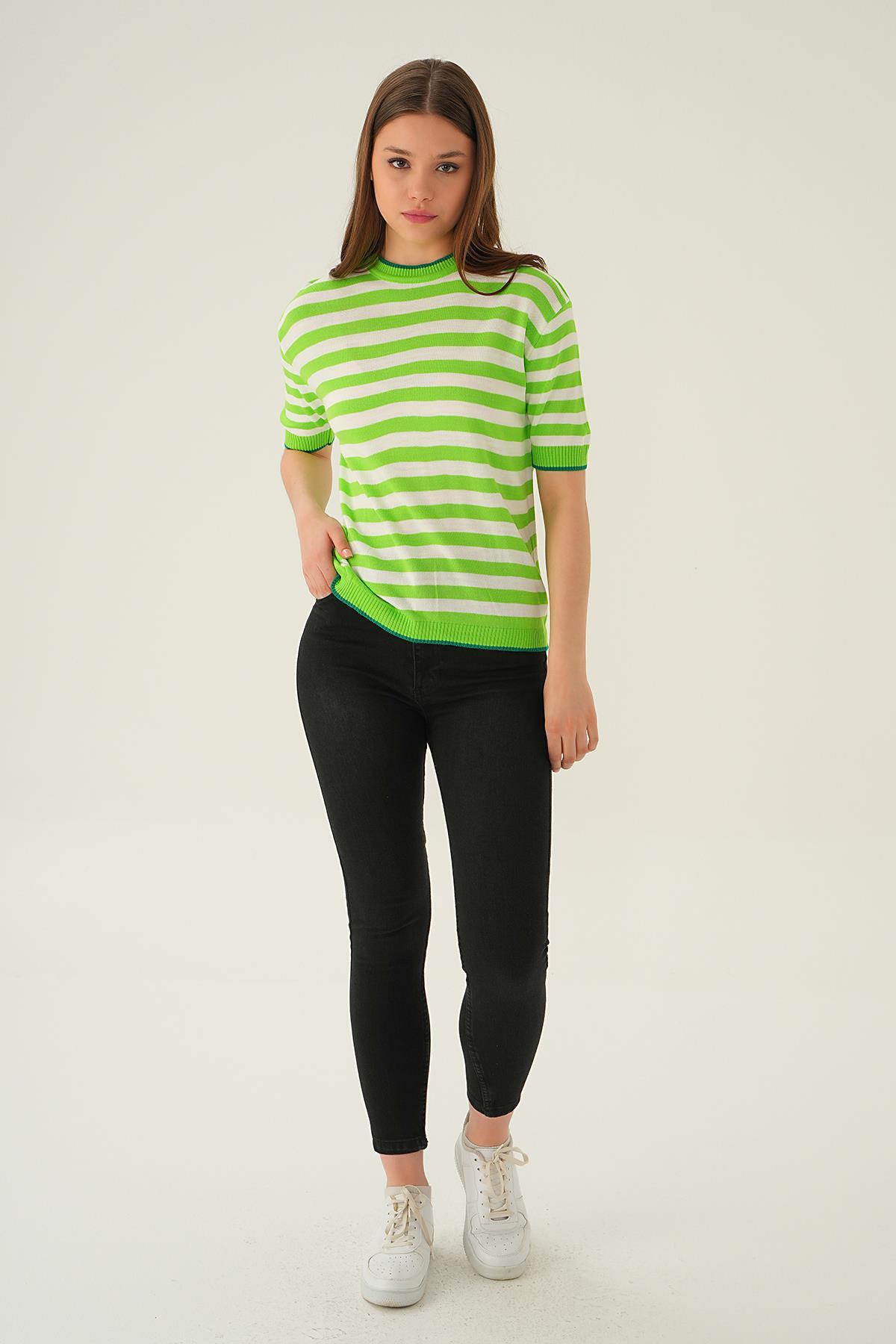 Elma Yeşili Bisiklet Yaka Çizgili Tişört 1469