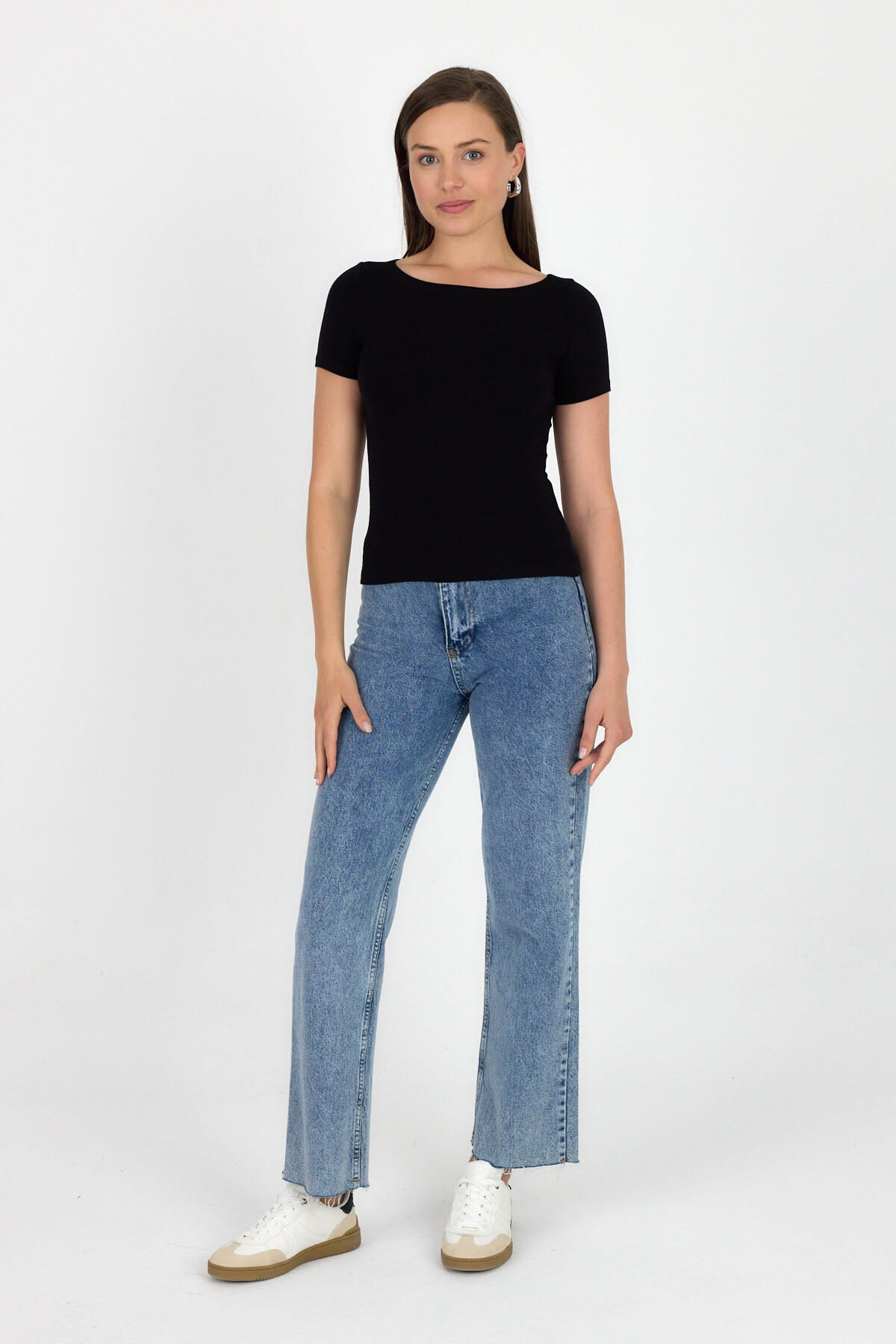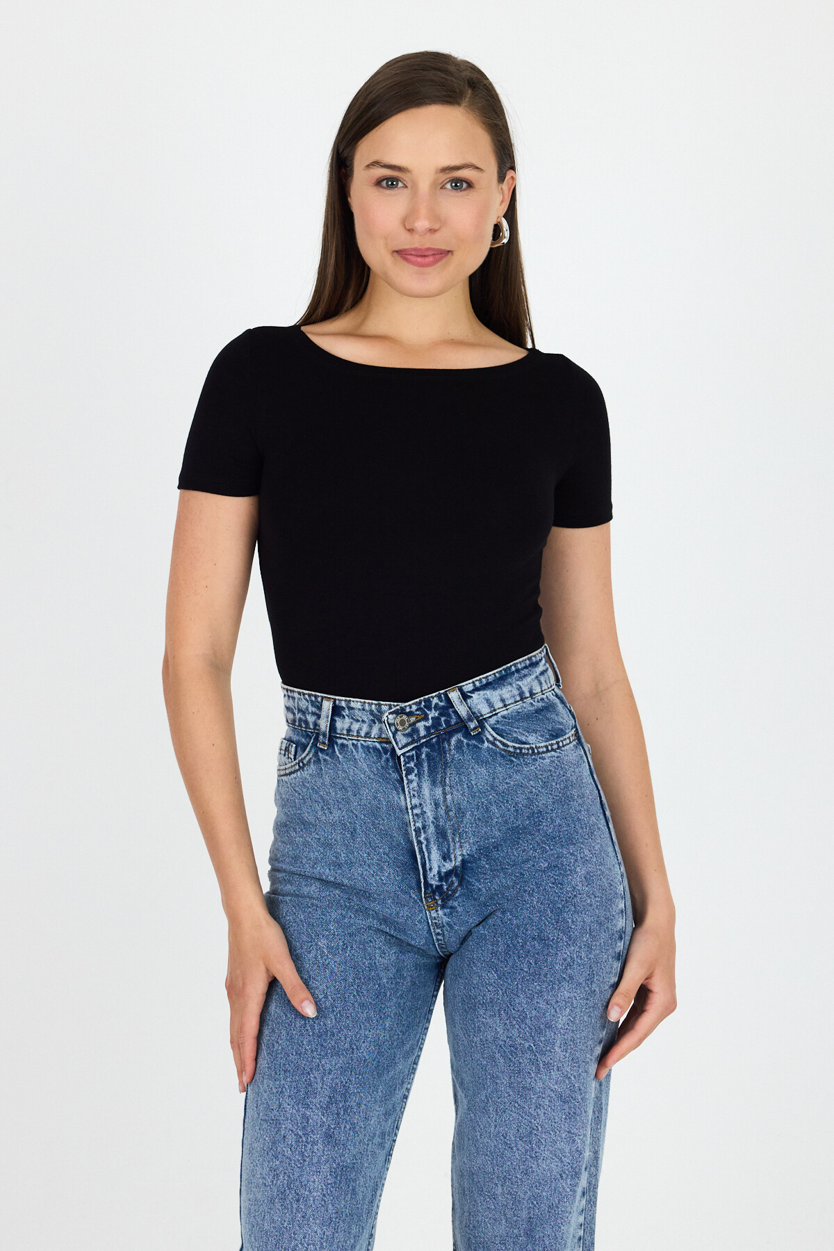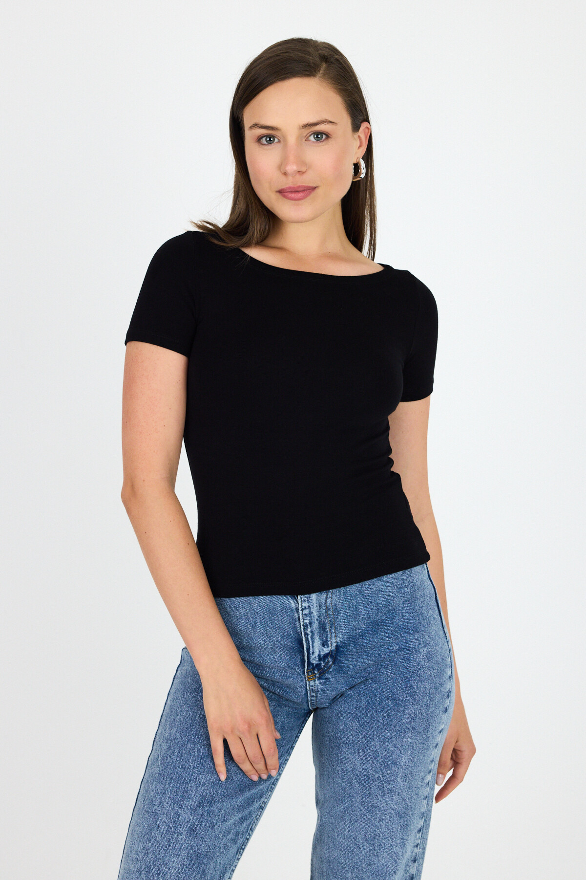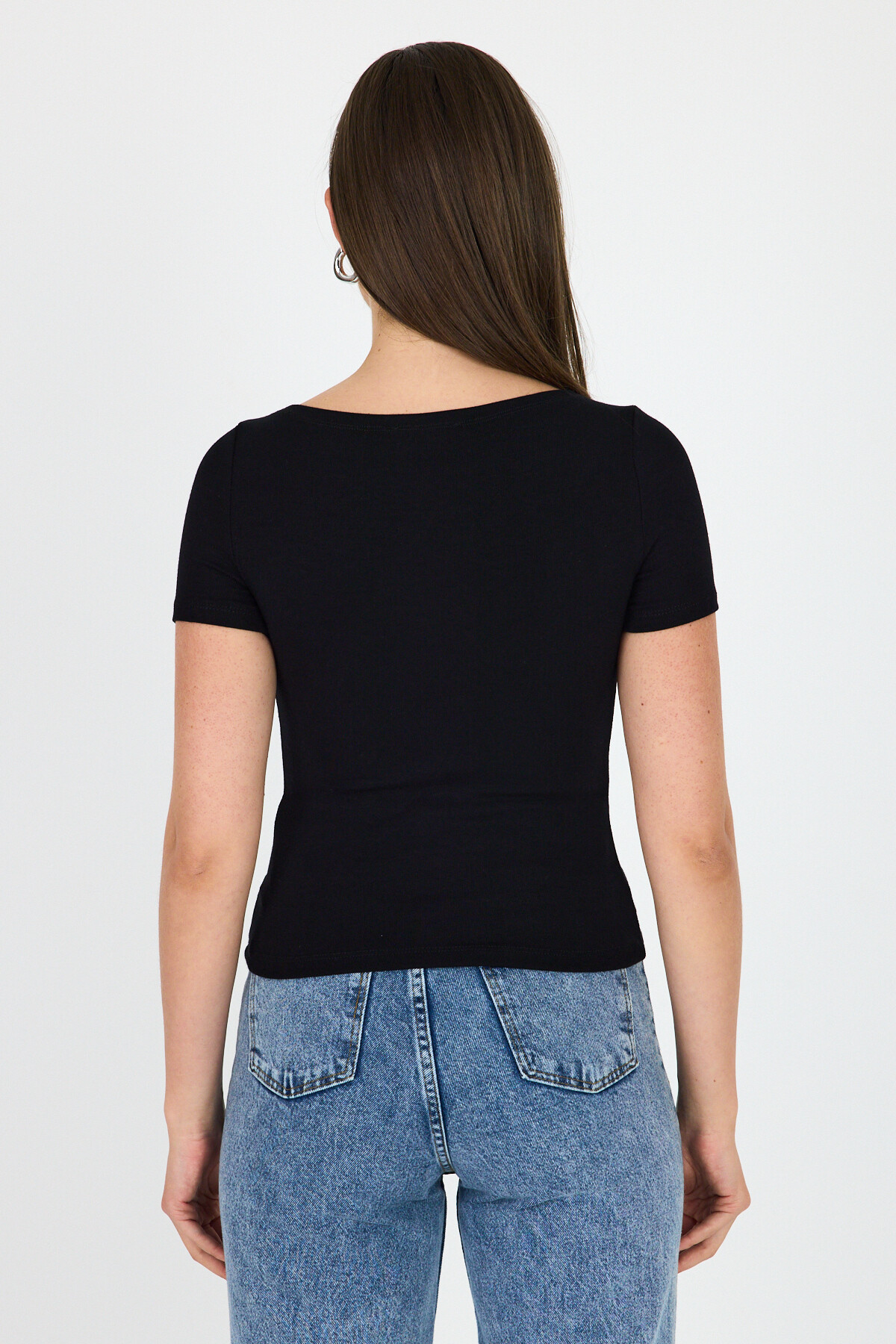 Siyah Bisiklet Yaka Viskoz/Yumuşak Kumaş Tişört 1469