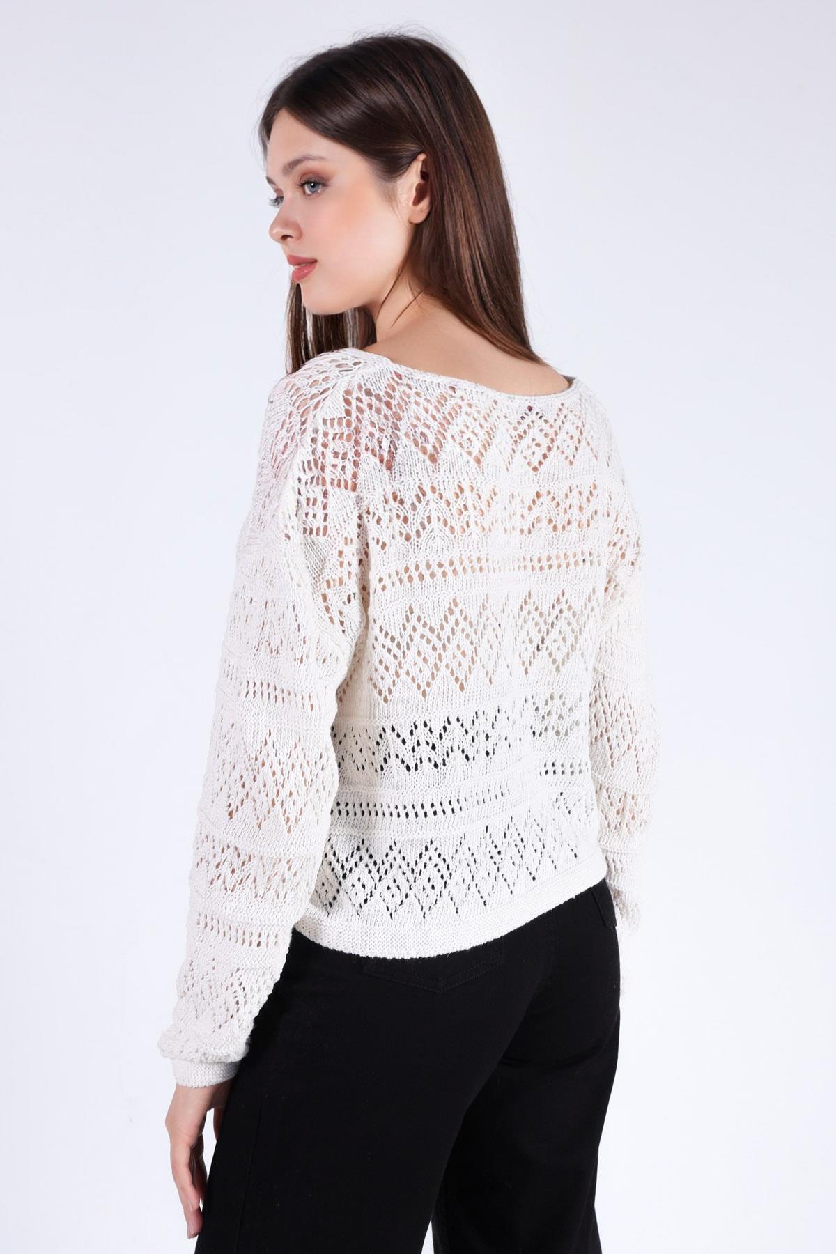 Gri - Ekru Yıldız Baskılı Oversize Kazak 2474 - RAYS Gri - Ekru Yıldız Baskılı Oversize Kazak 2474 - RAYS (1)