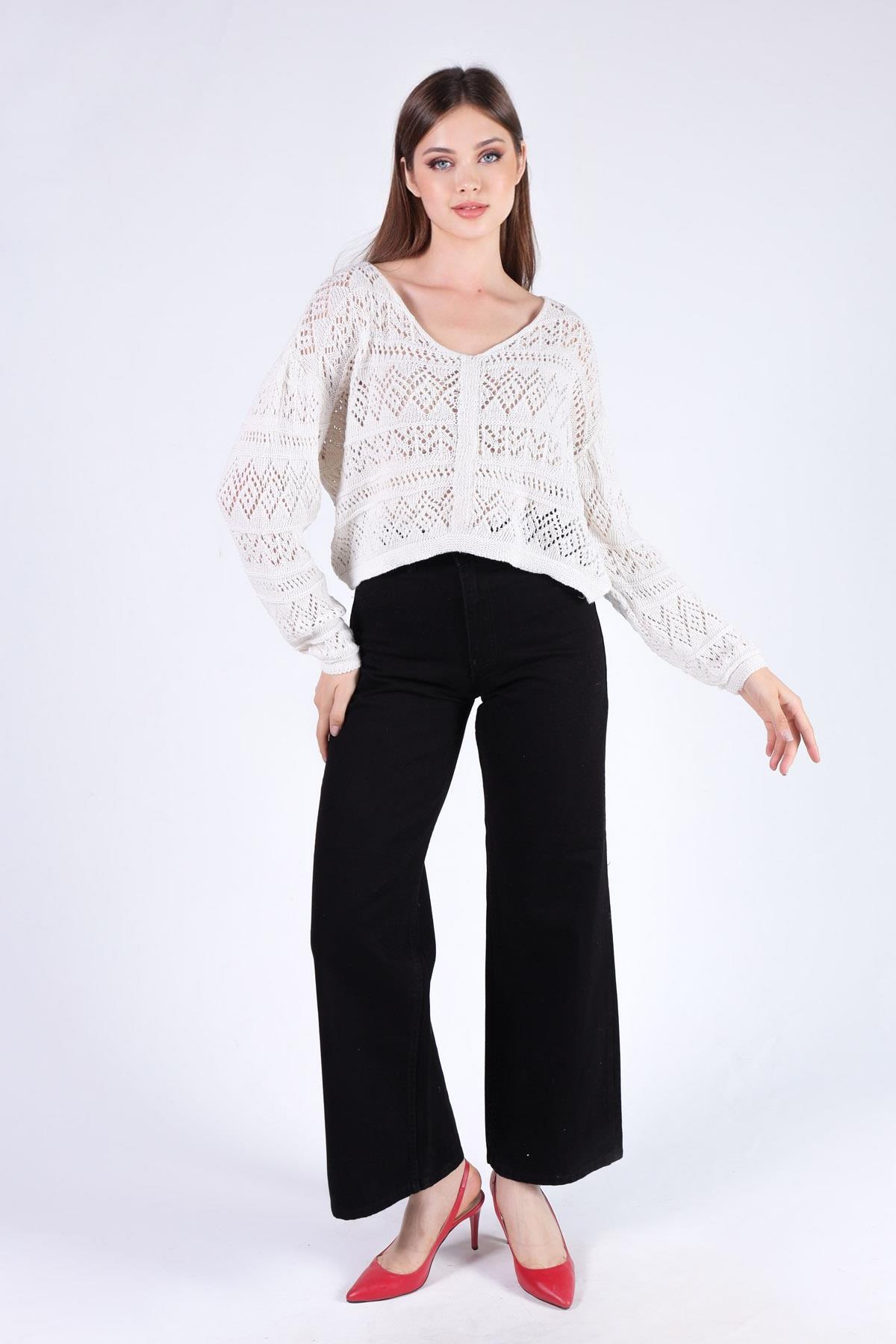 Kahve Kalp Nakışlı Kısa Kazak 2337 - RAYS Kahve Kalp Nakışlı Kısa Kazak 2337 - RAYS (1)