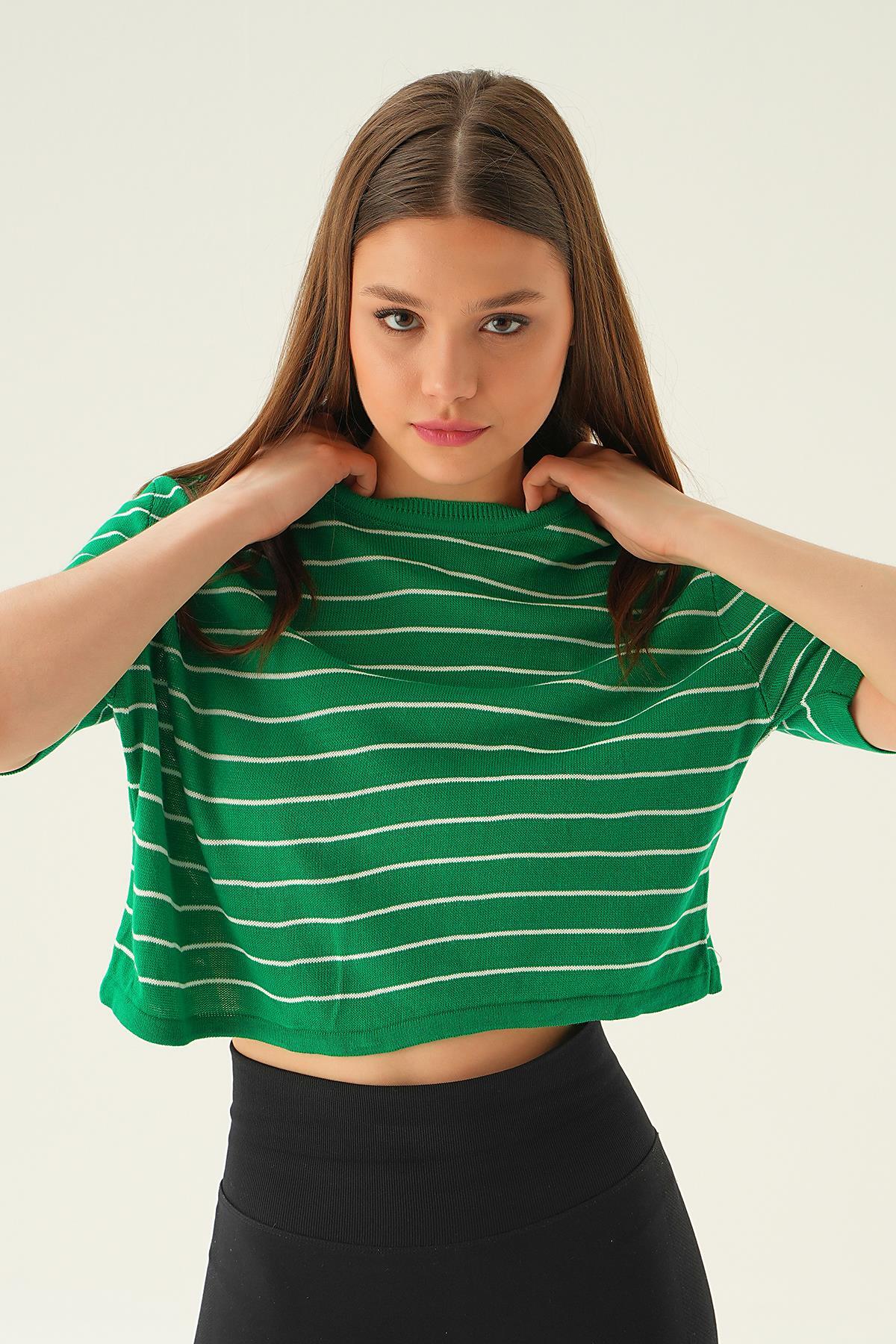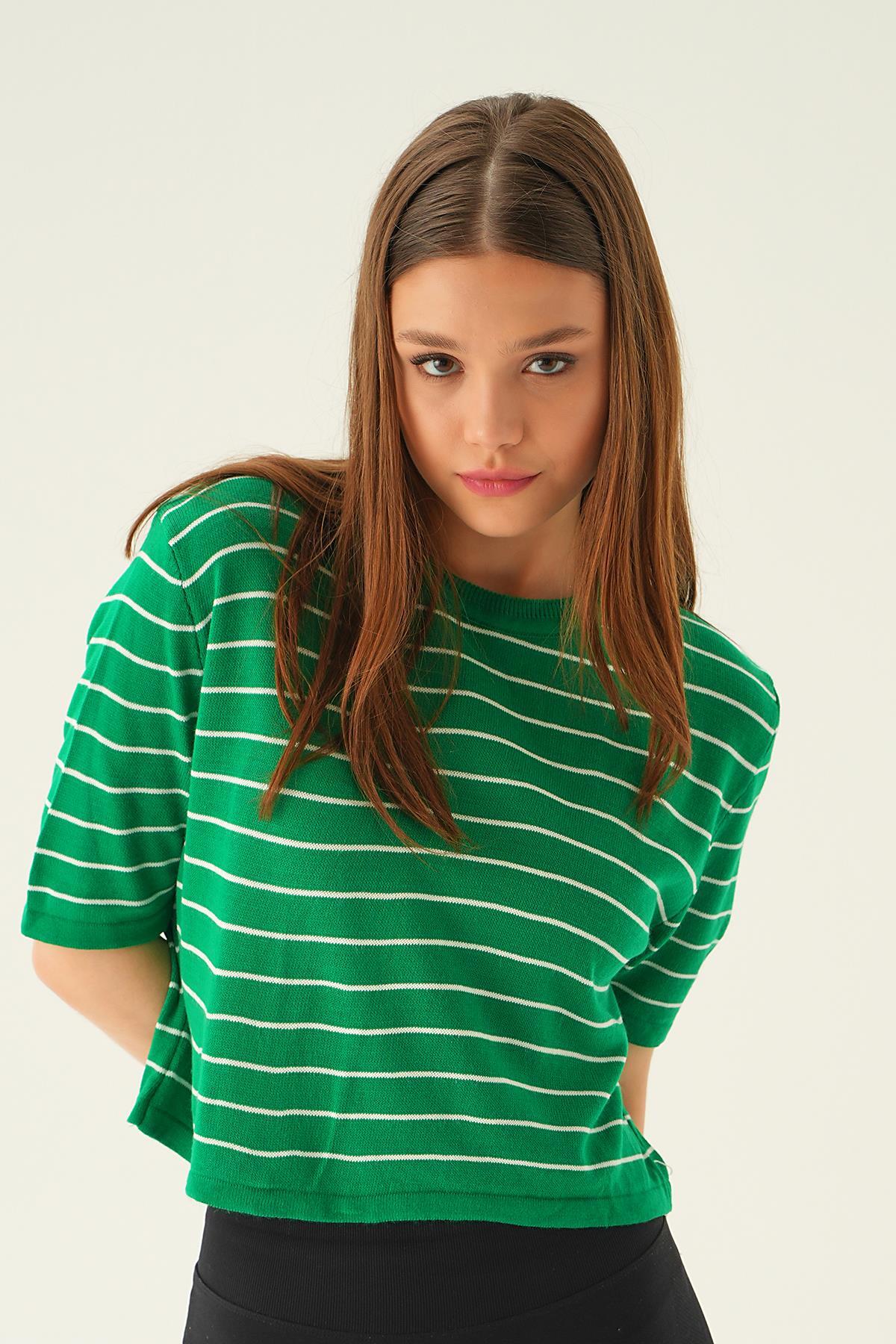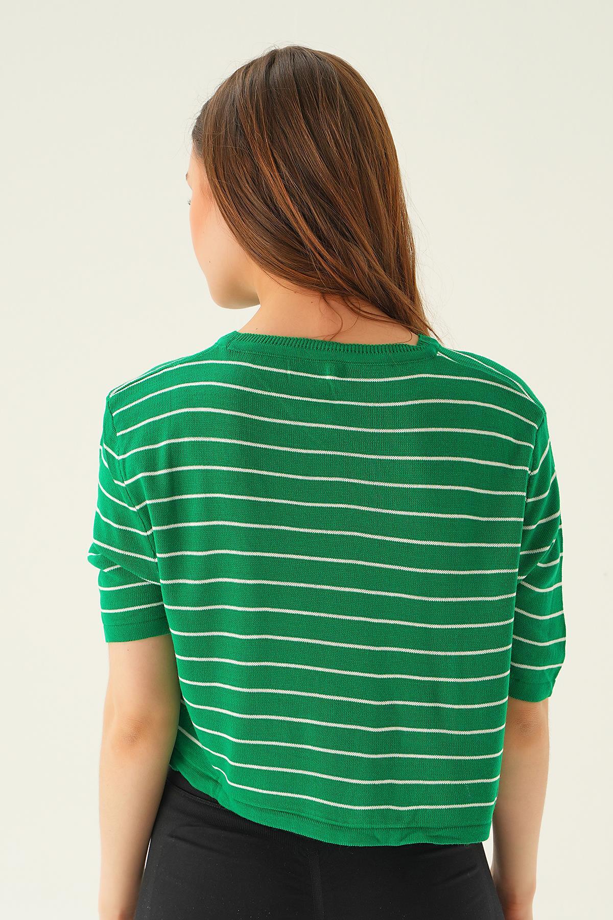 Benetton Yeşili Çizgili Tişört 1488