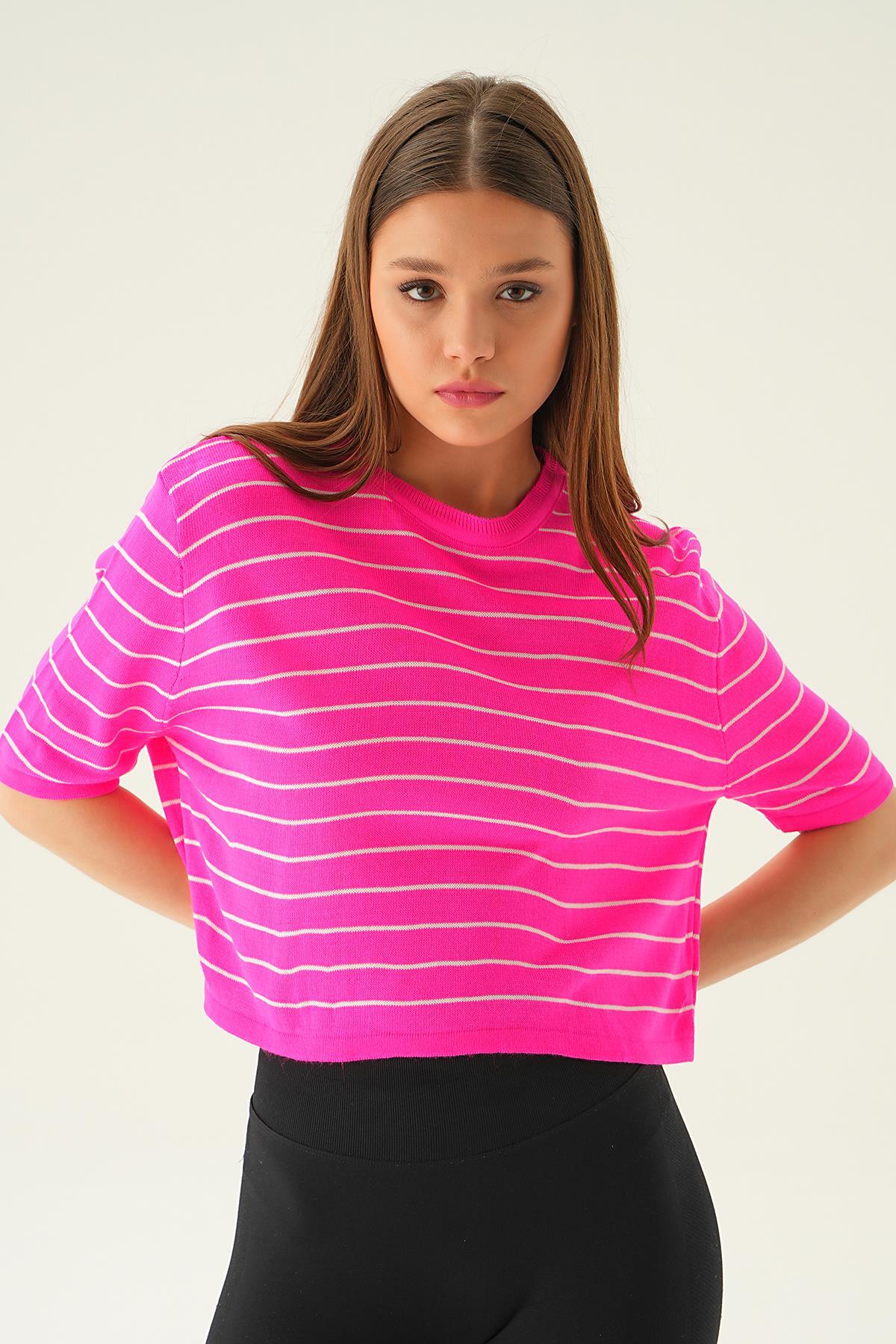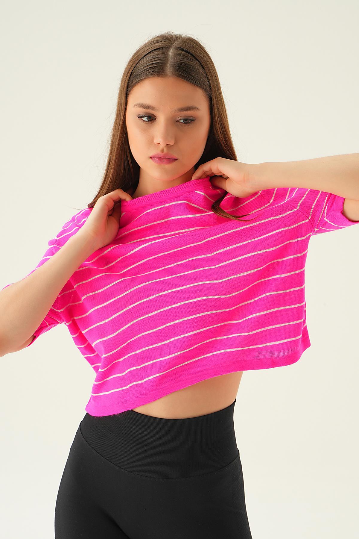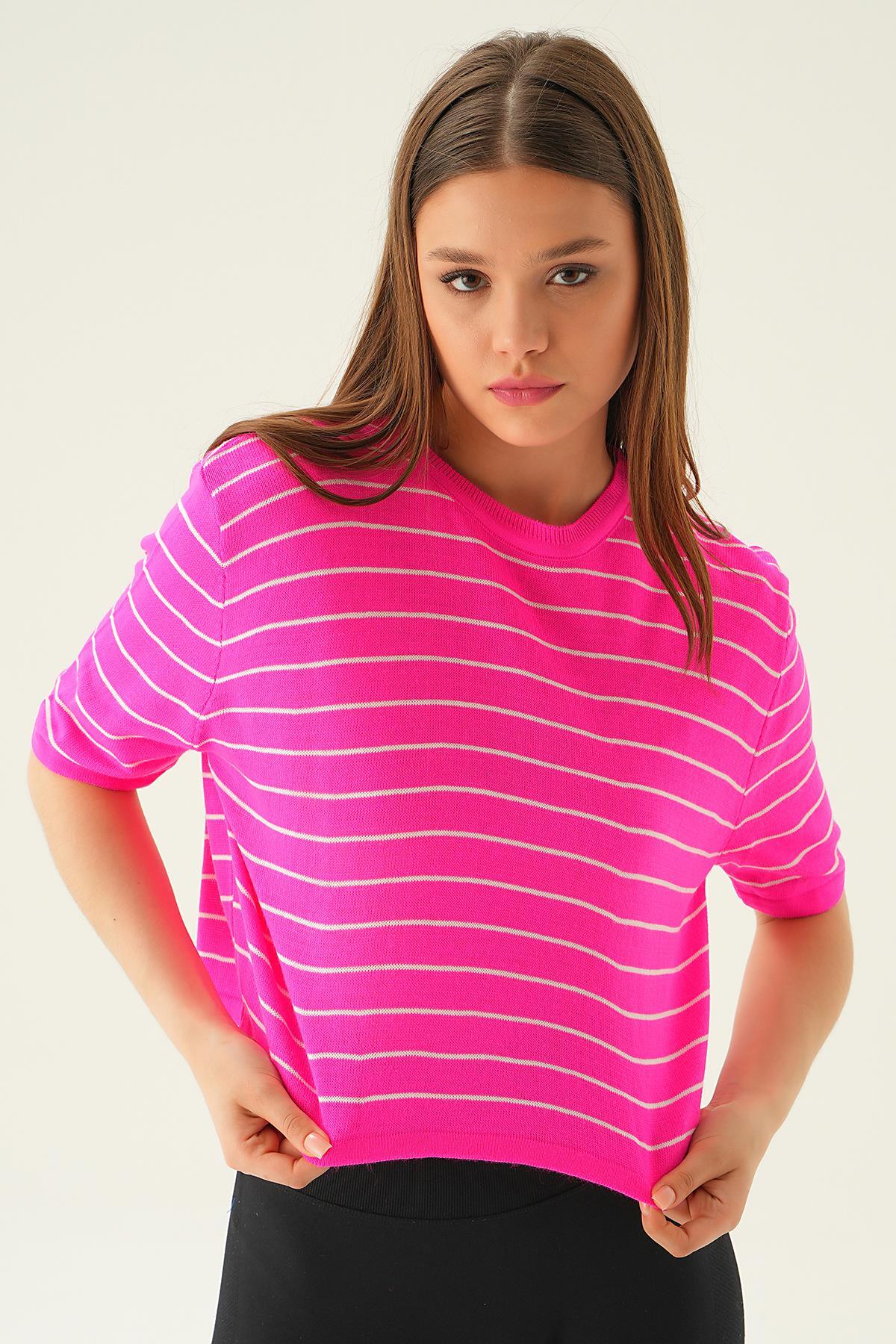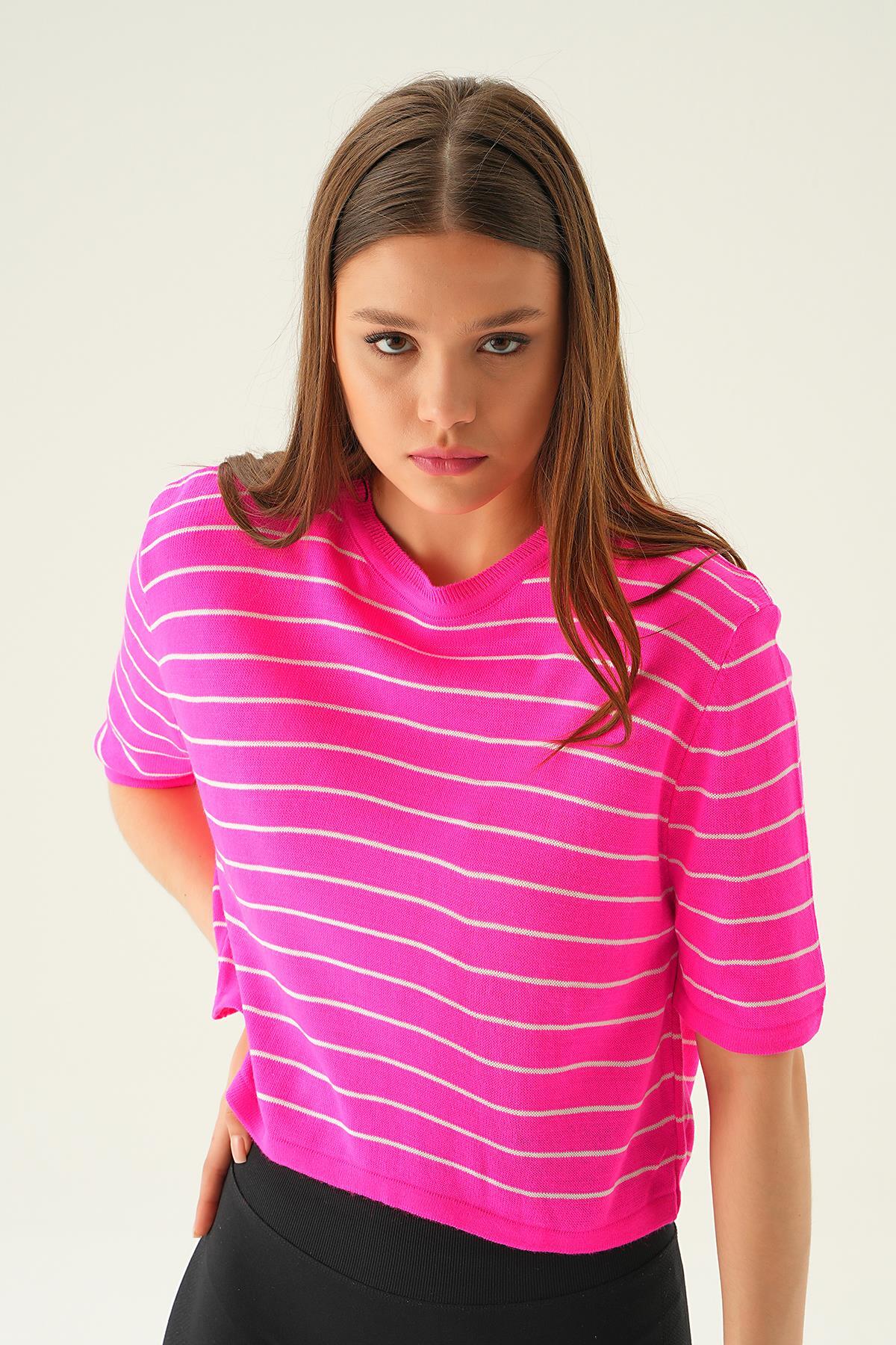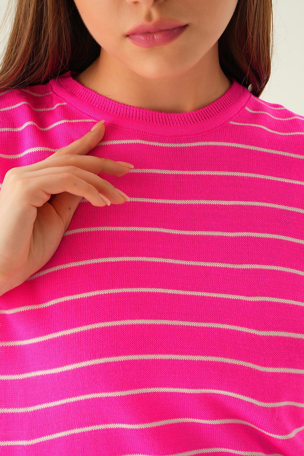 Fuşya Çizgili Tişört 1488