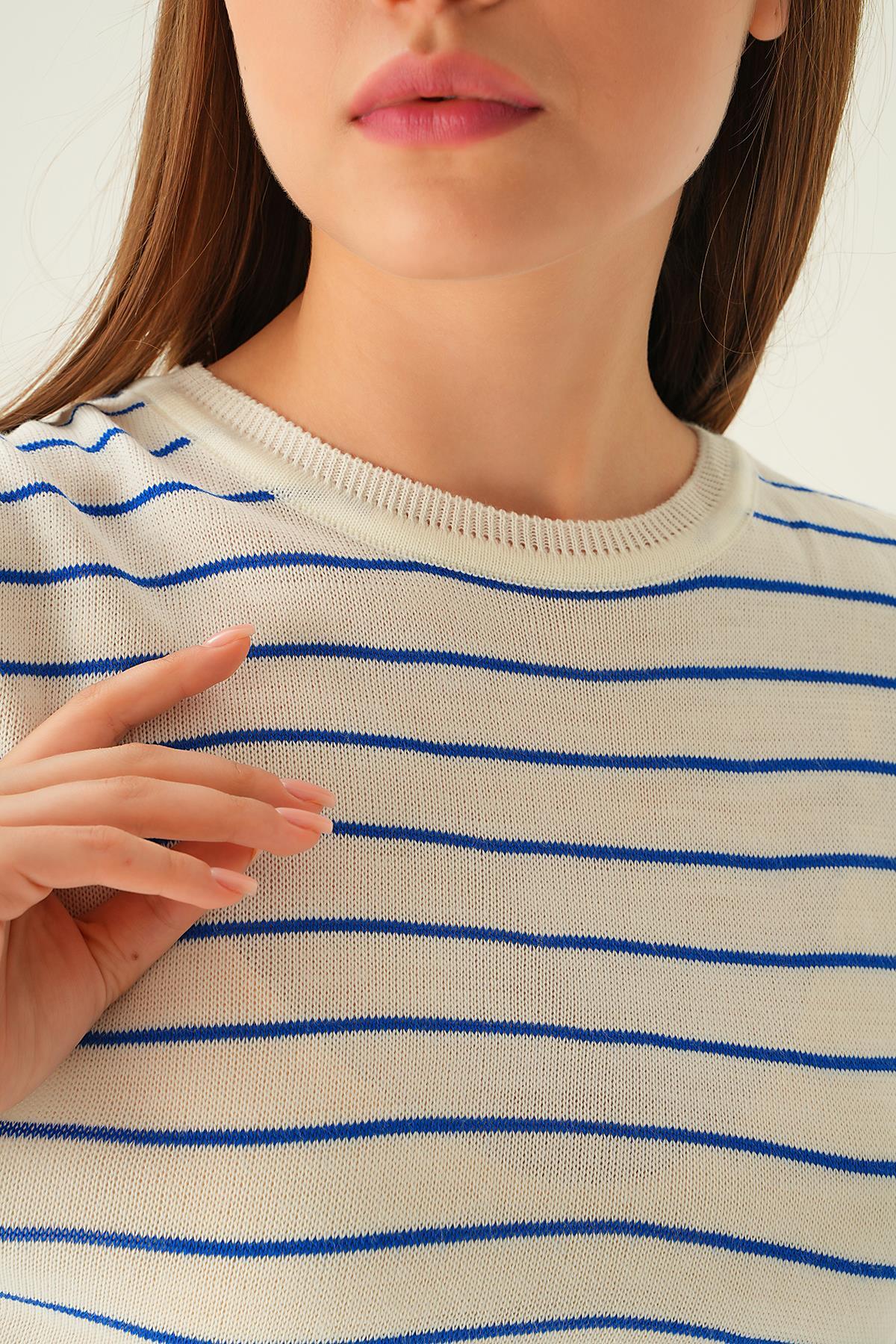 9475 Kol Tüllü Düğmeli Bluz Beyaz - RAYS