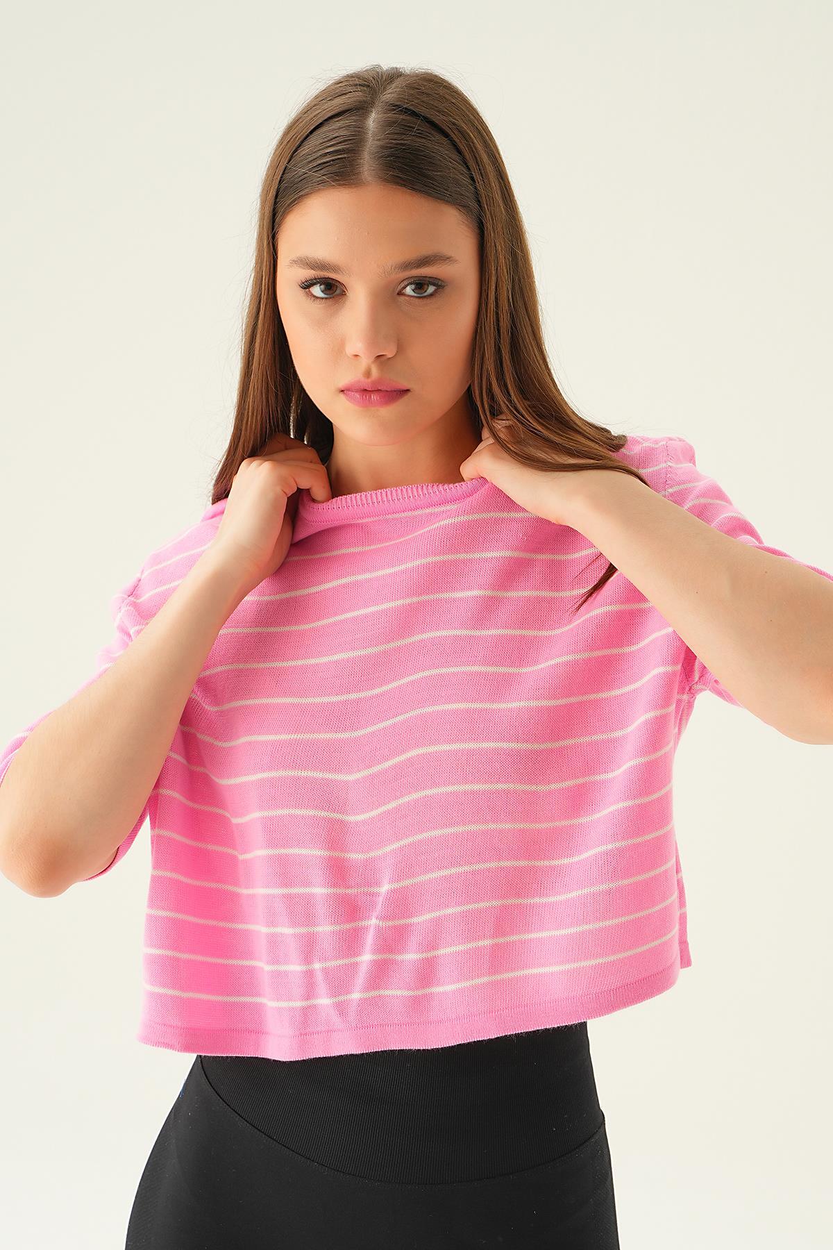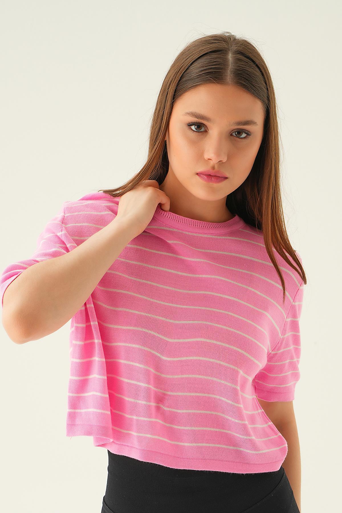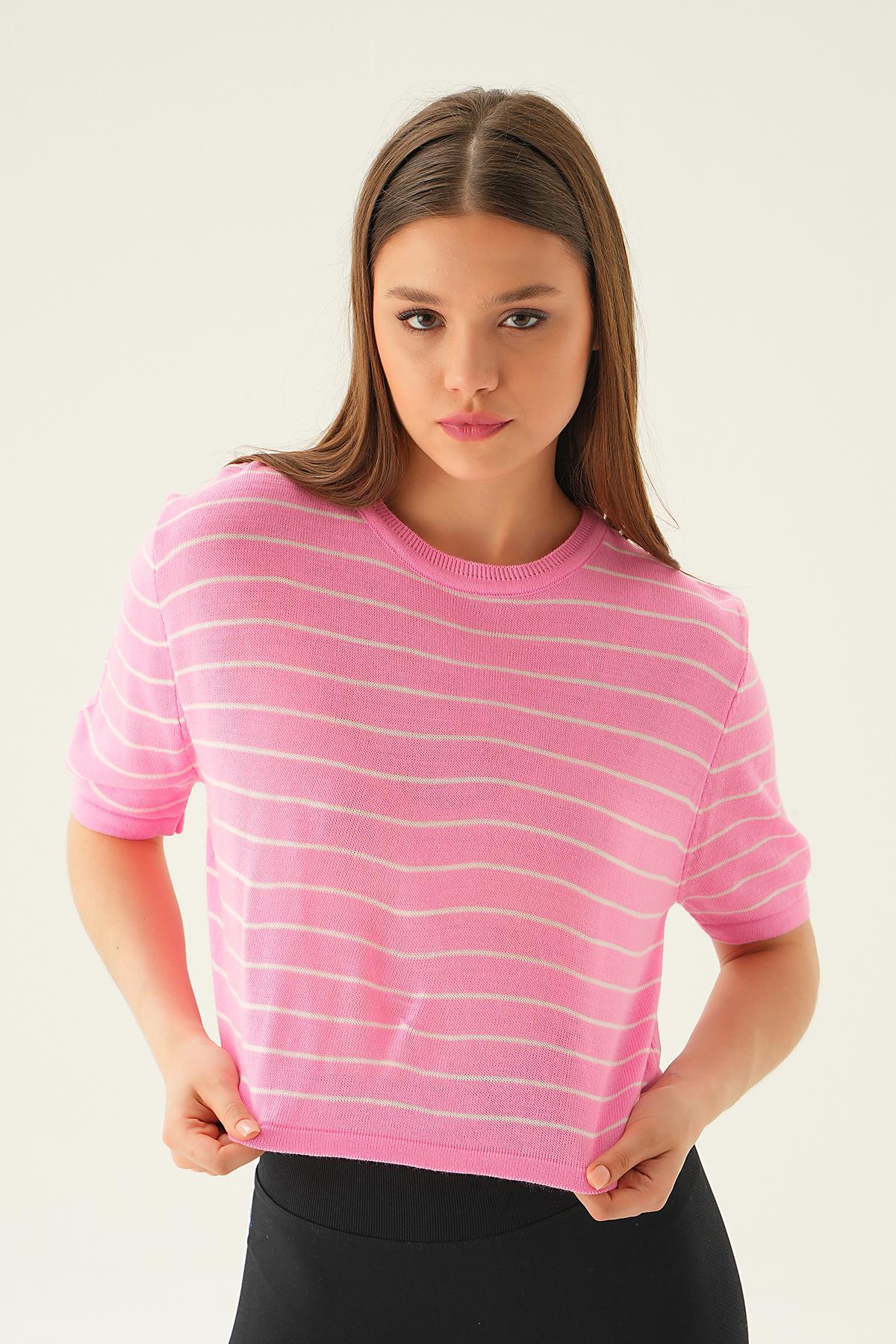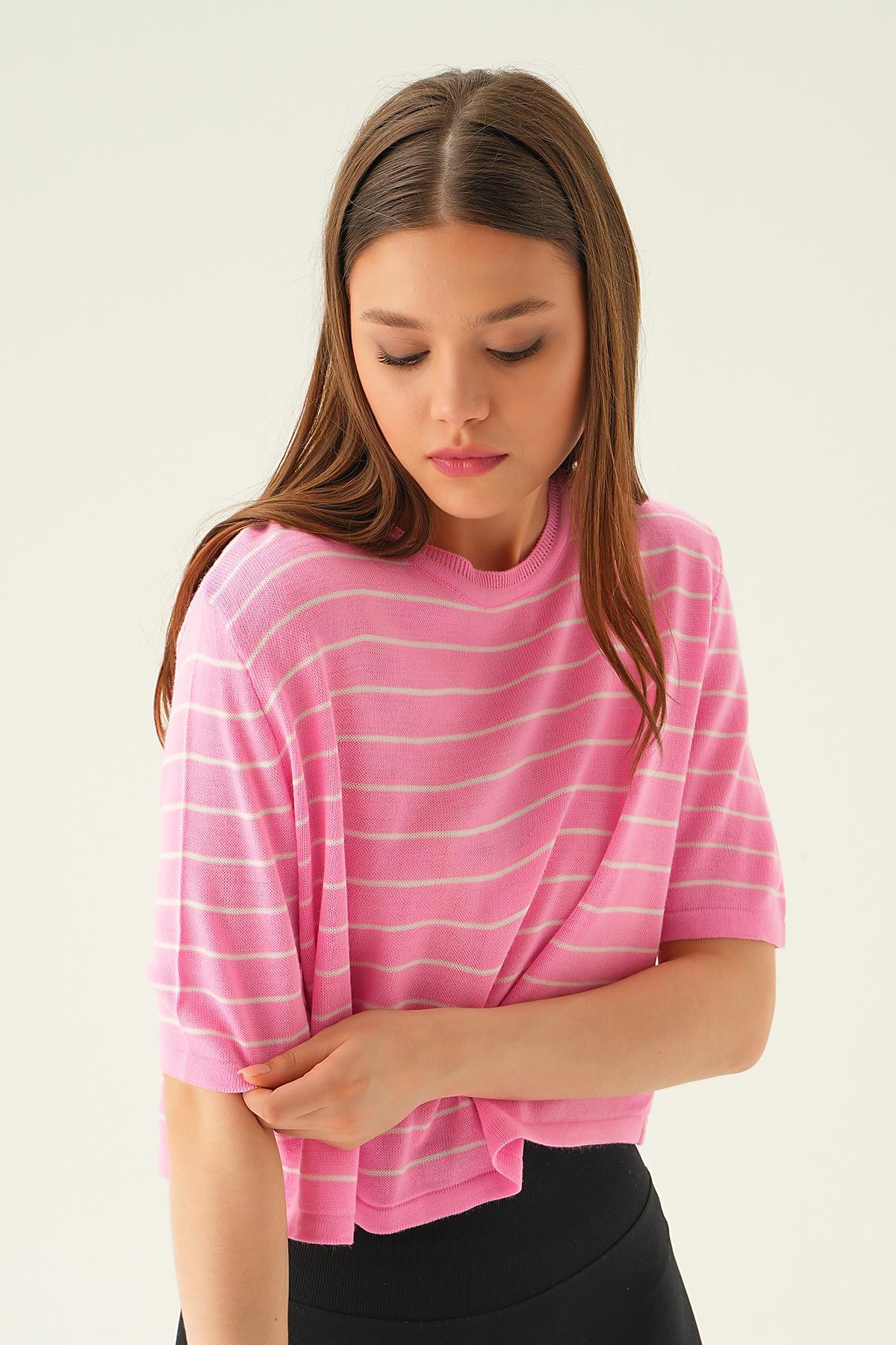 Pembe Çizgili Tişört 1488