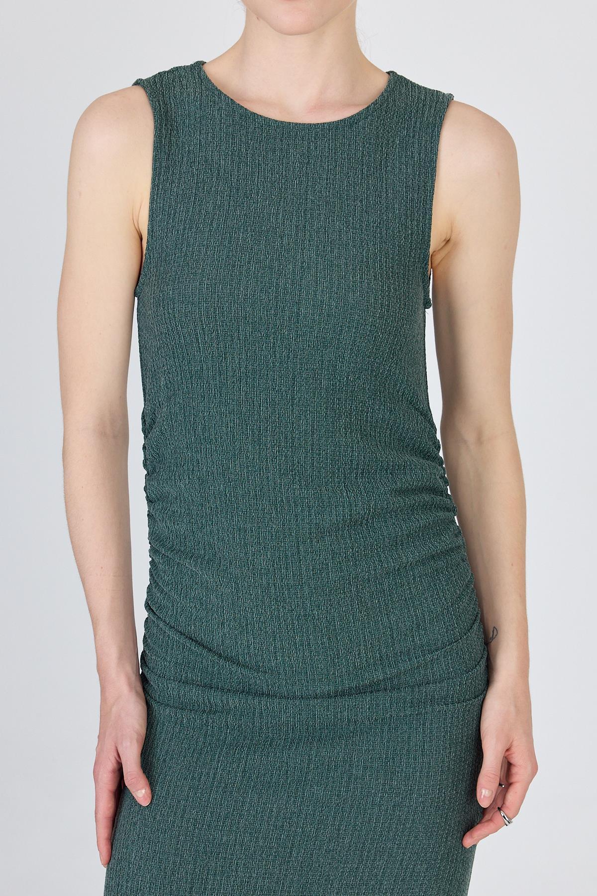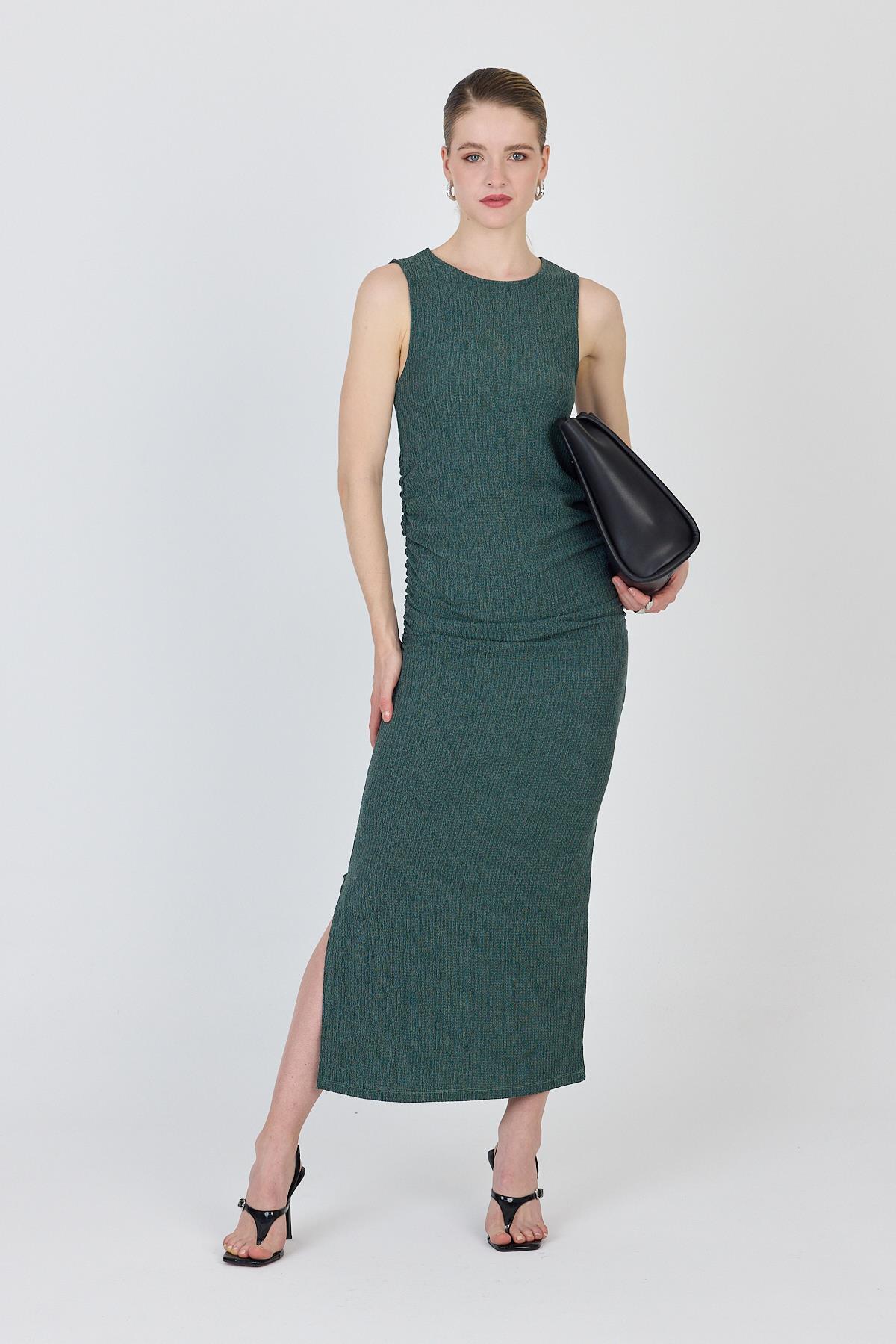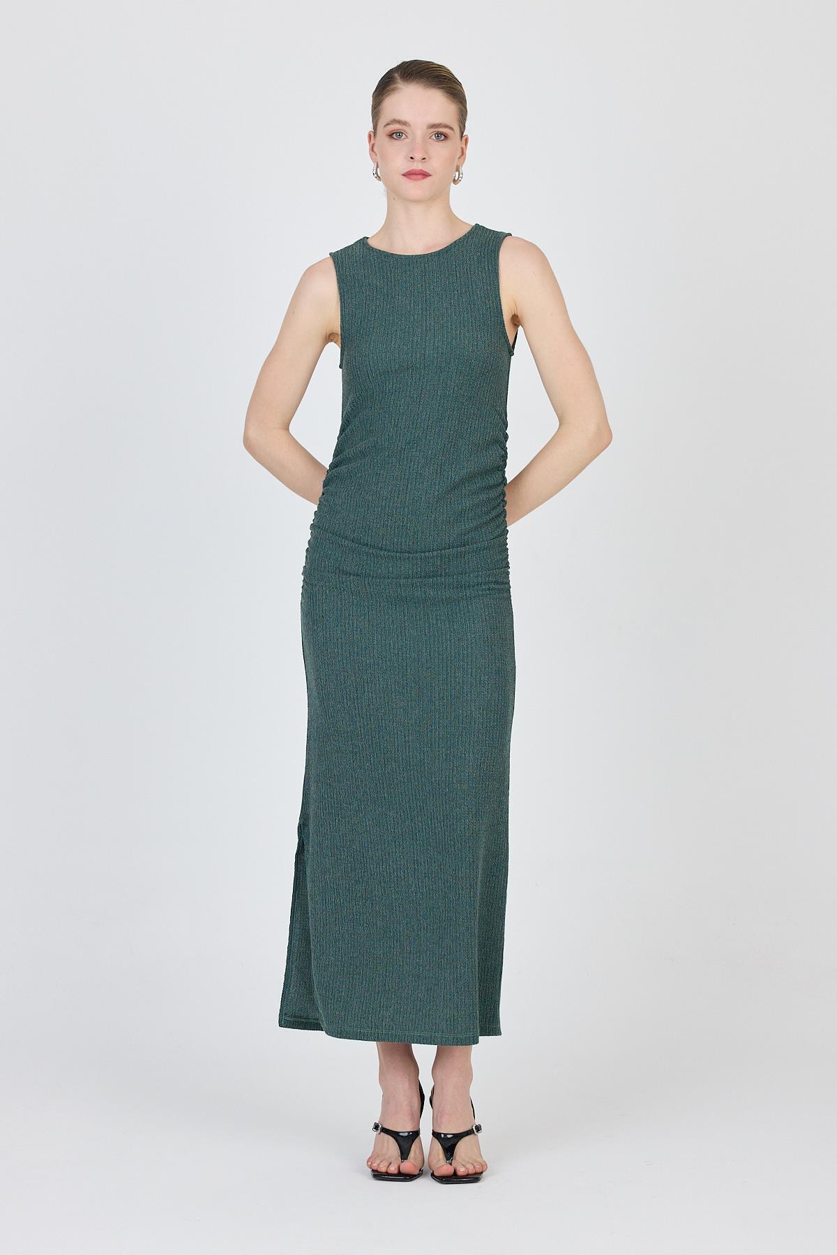 Yeşil Bisiklet Yaka Yanları Büzgülü Uzun Elbise 1489