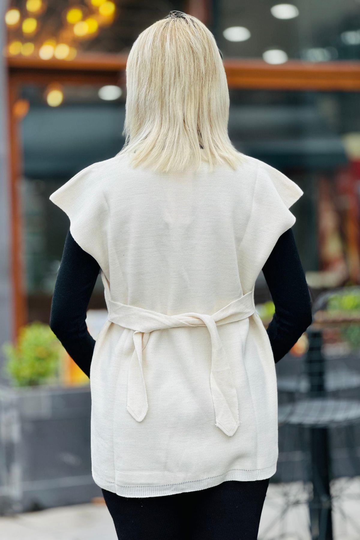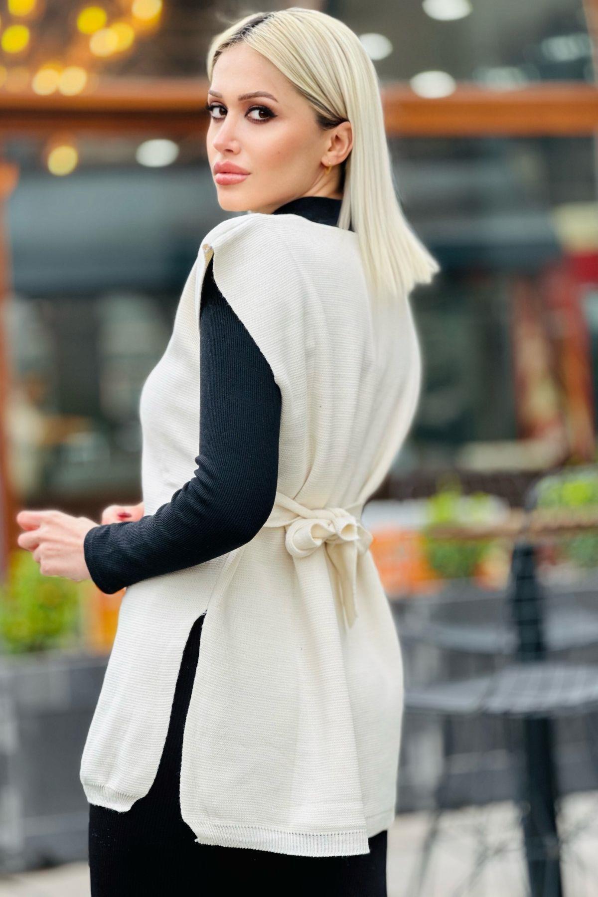 Krem Bağlama Detay Süveter 1490