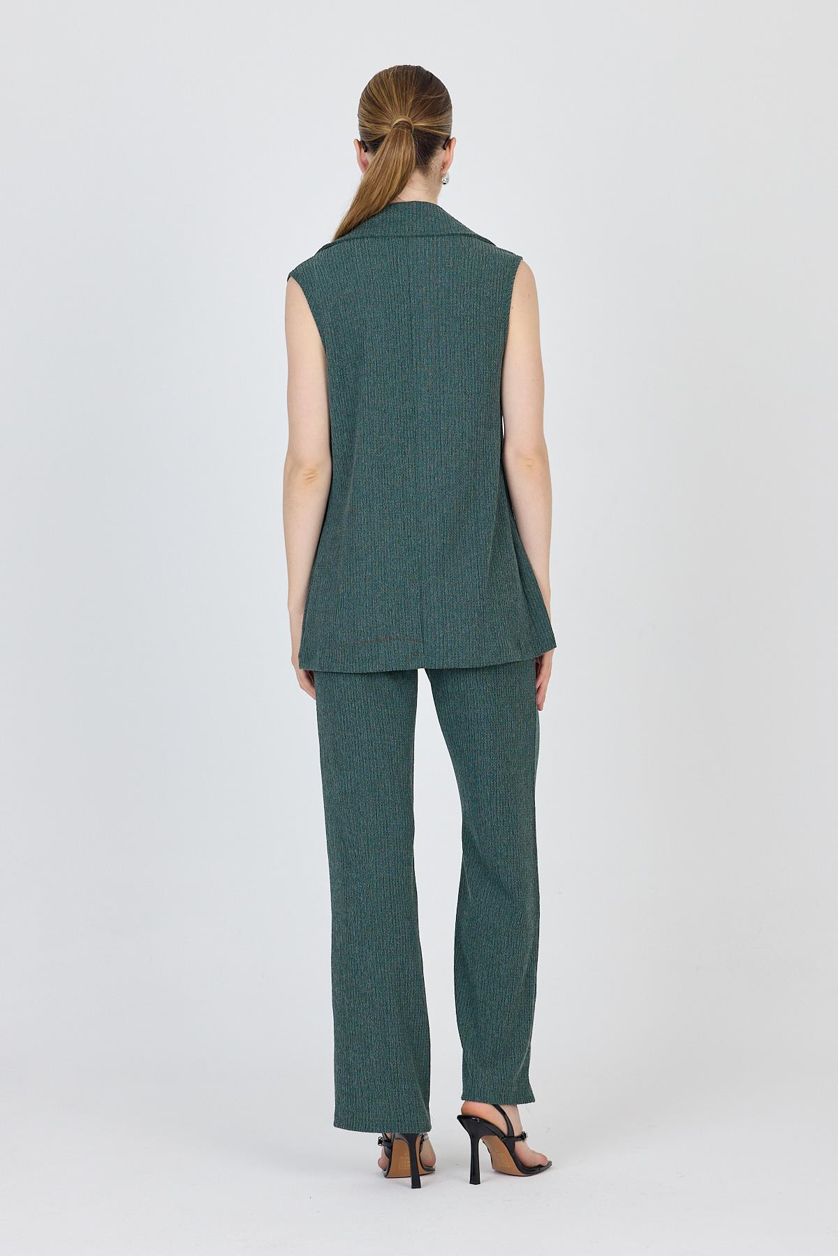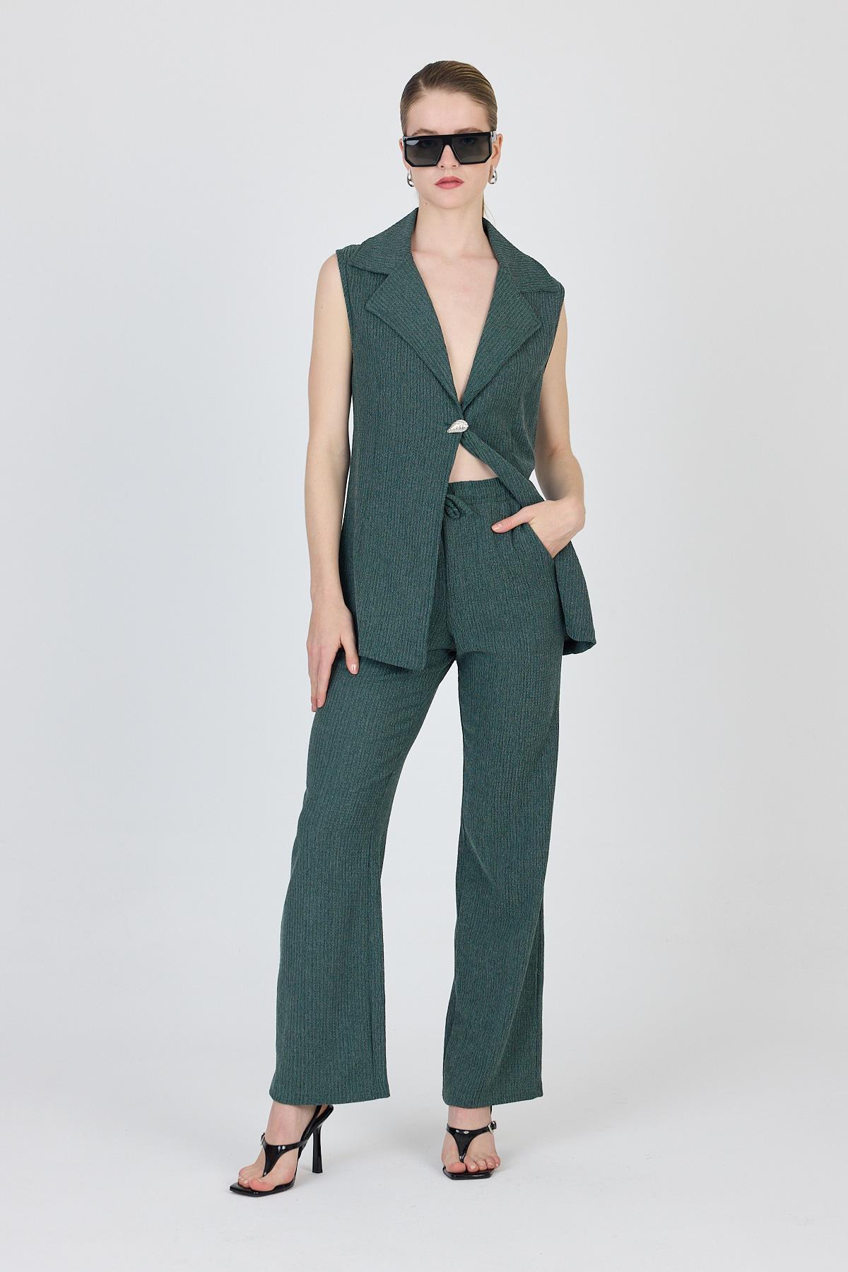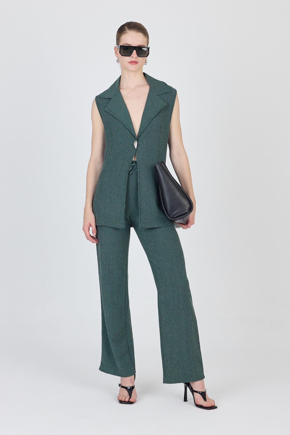Yeşil Kolsuz Yelek ve Bol Paça Pantolon Takımı 1490