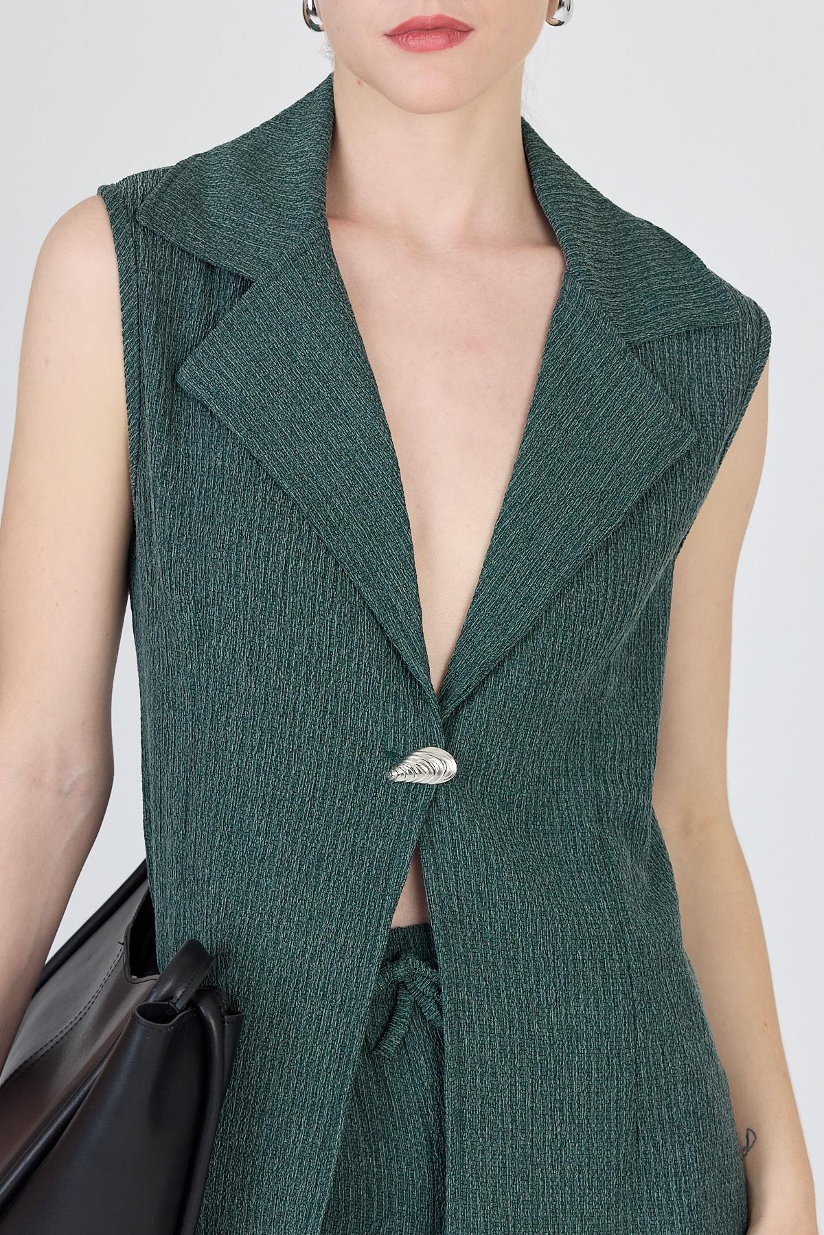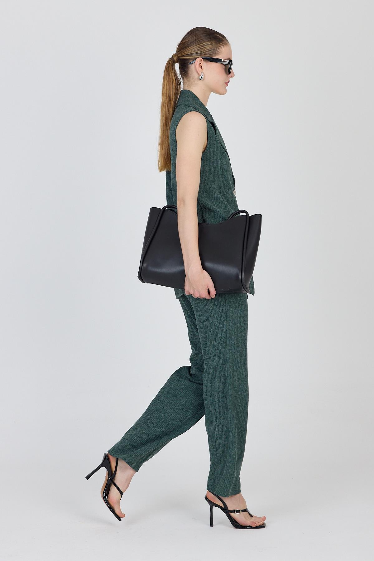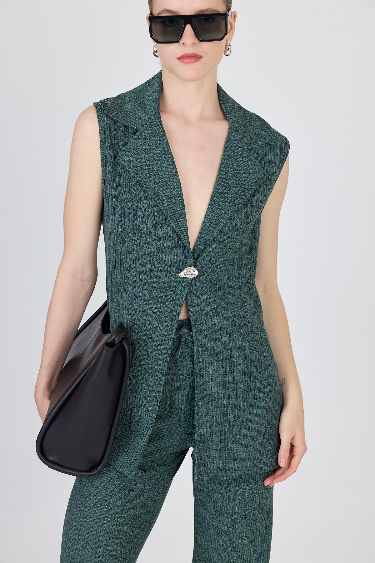 Yeşil Kolsuz Yelek ve Bol Paça Pantolon Takımı 1490