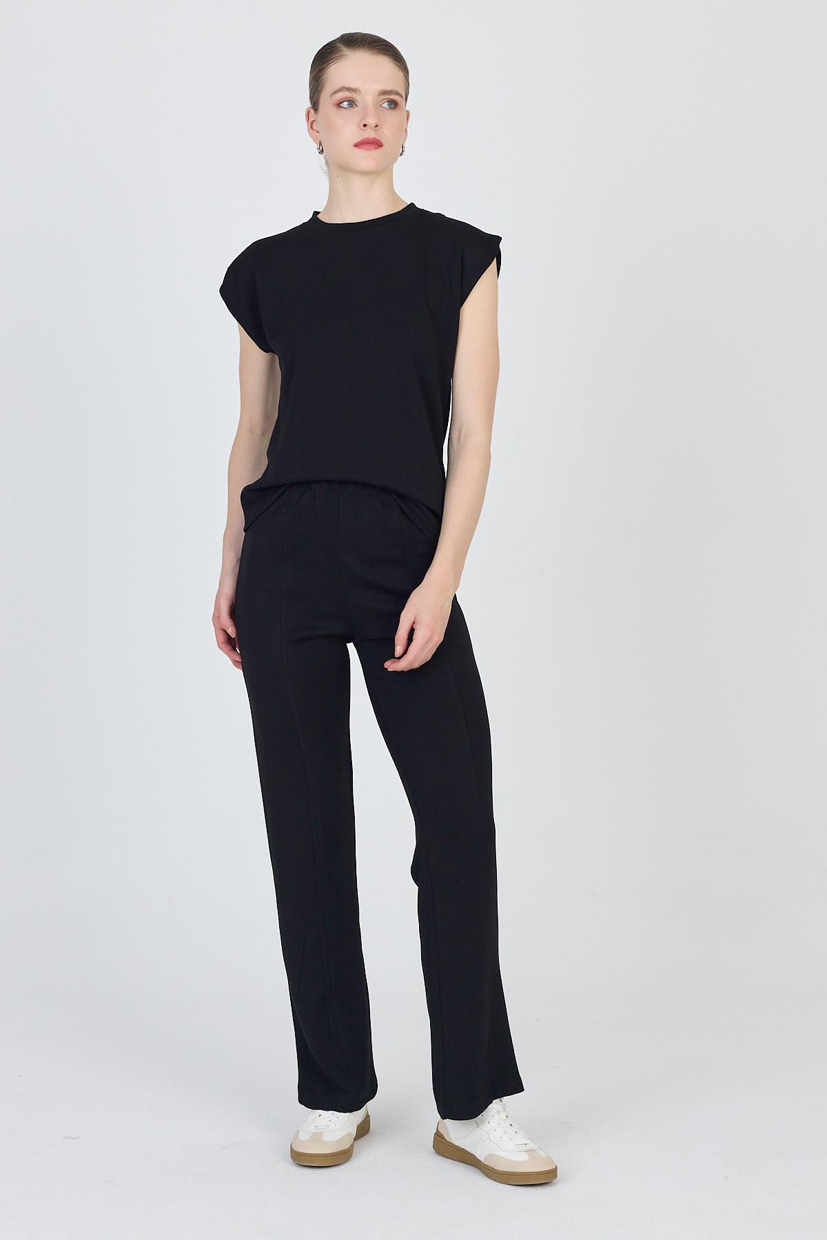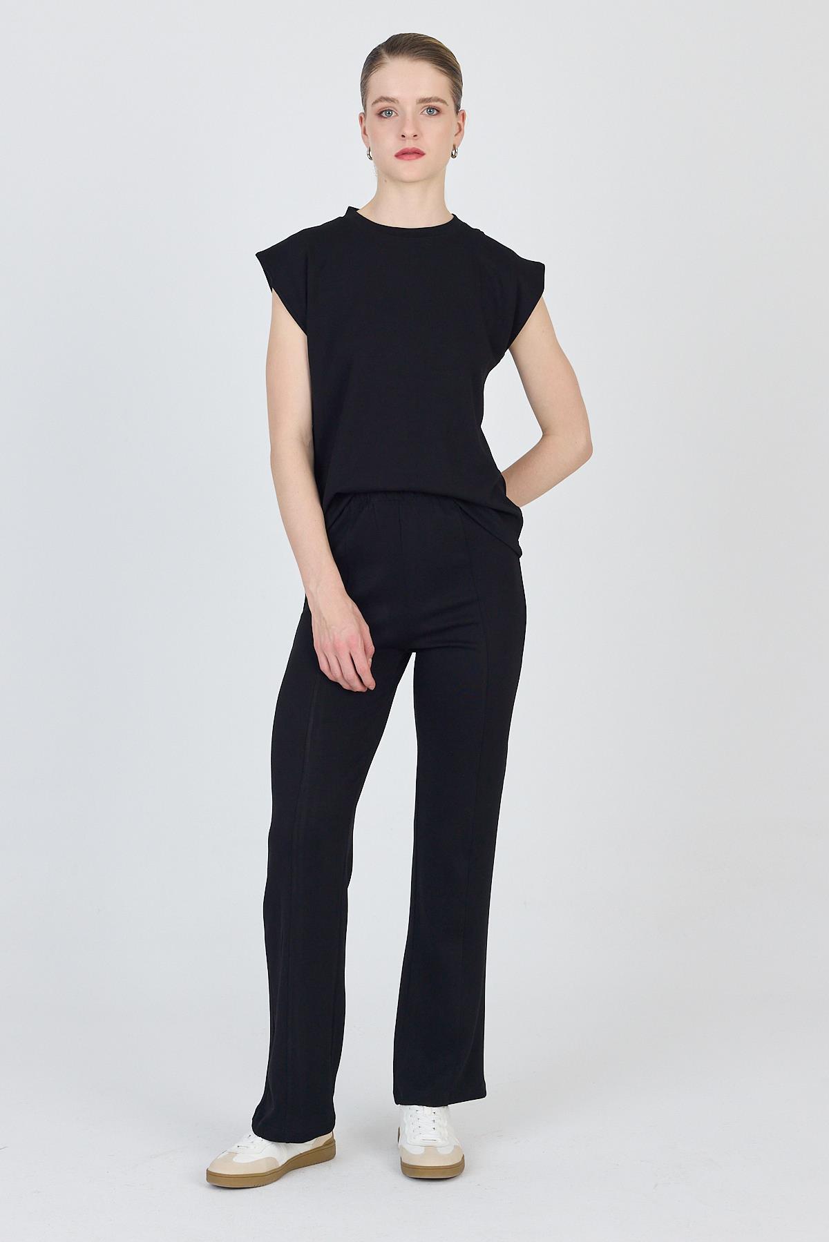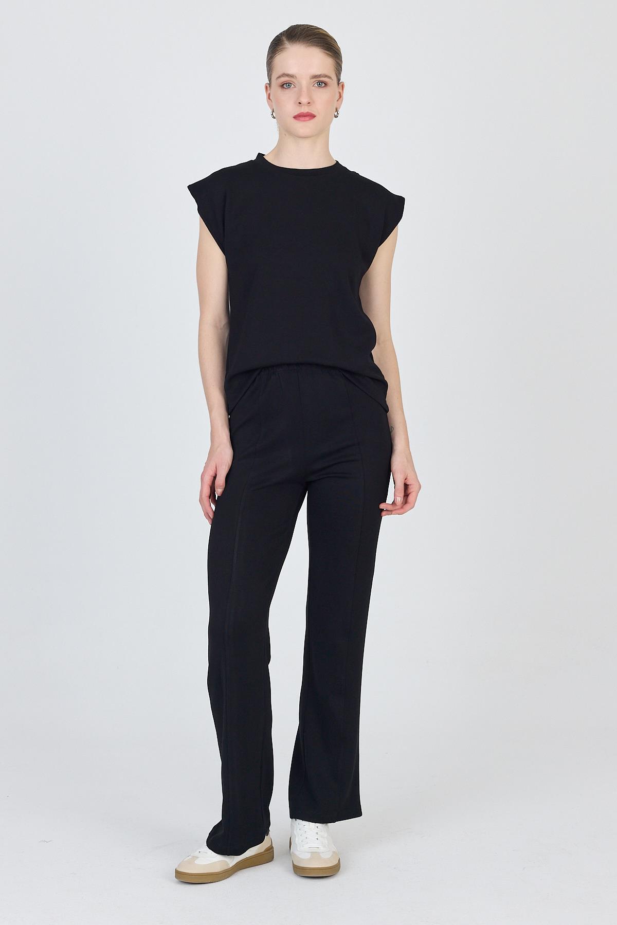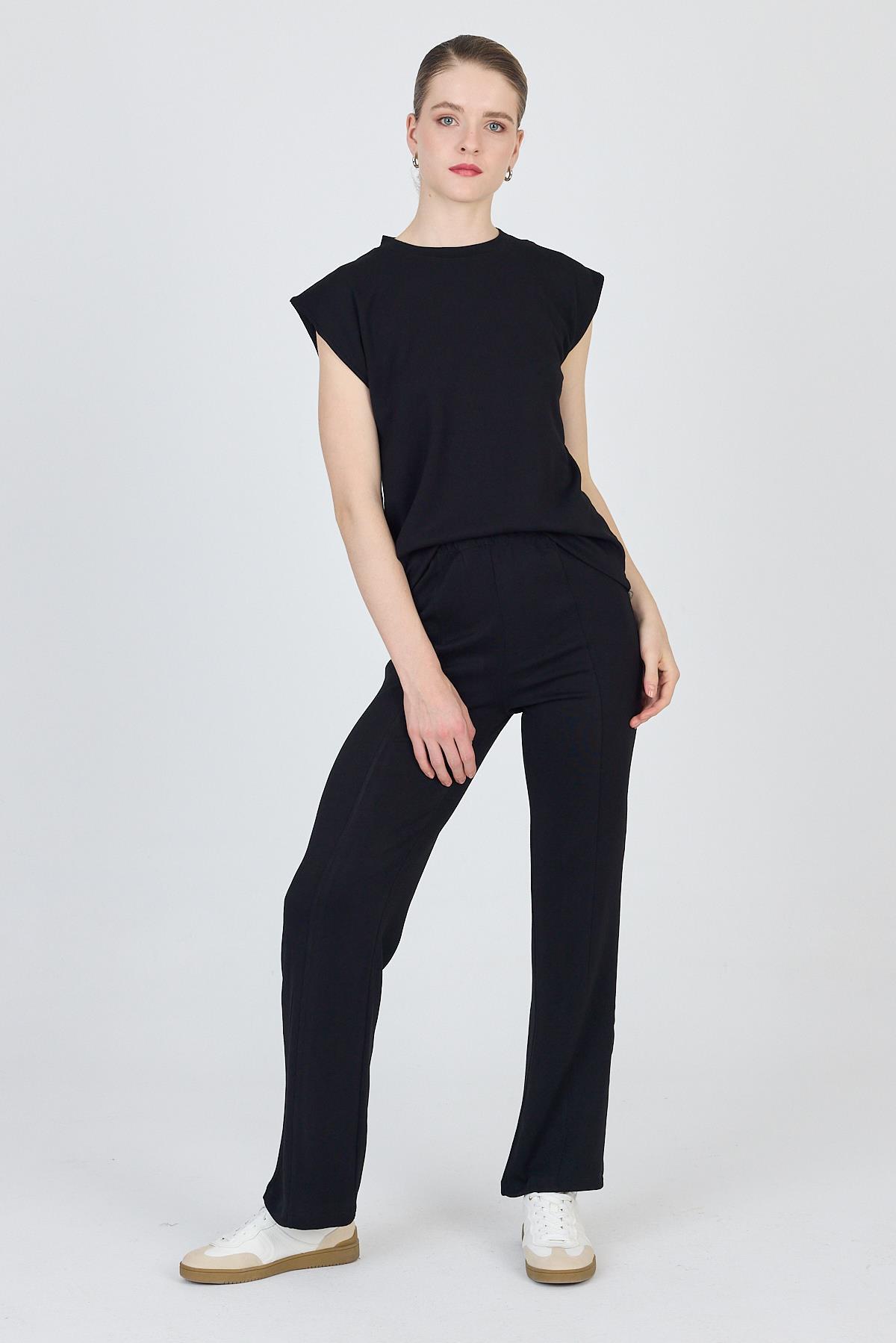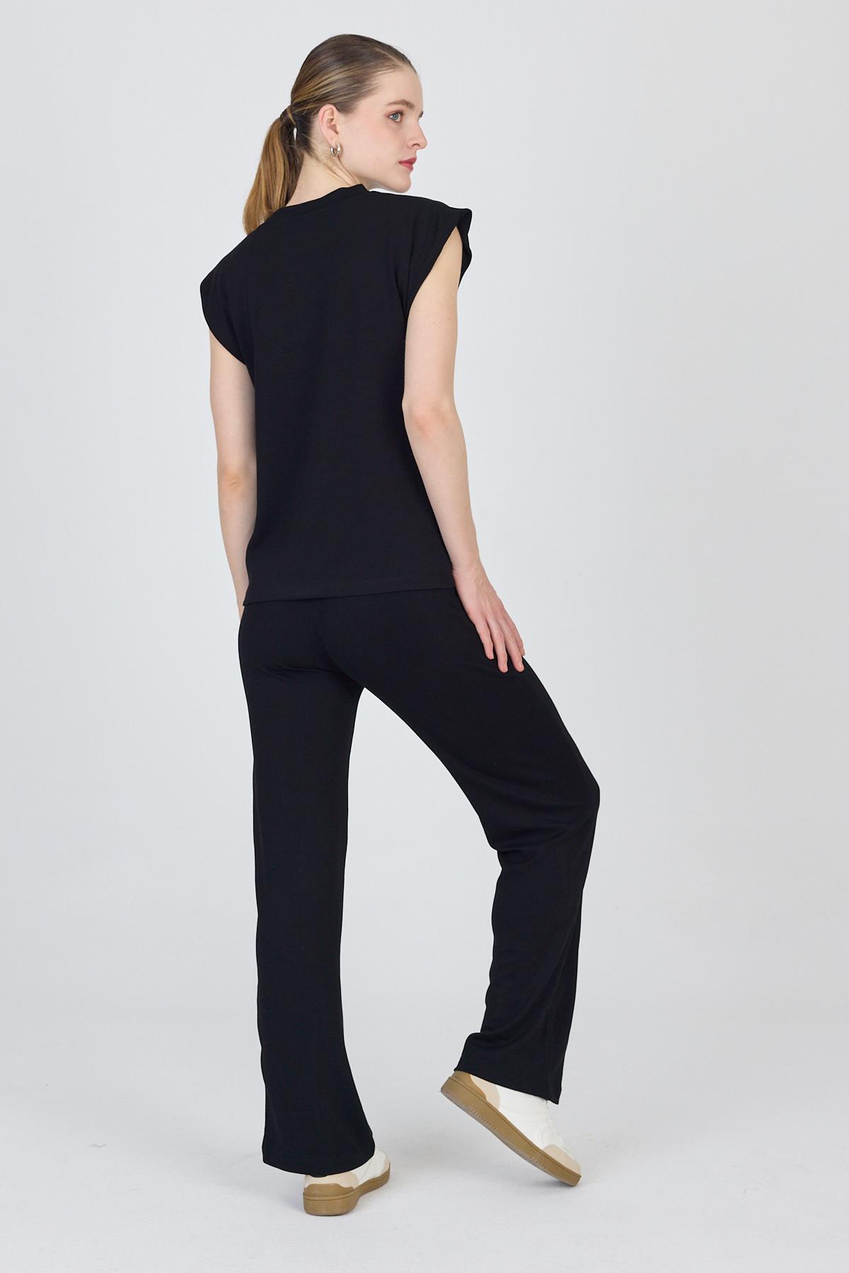 Siyah Bisiklet Yaka İkili Tişört Pantolon Takım 1502