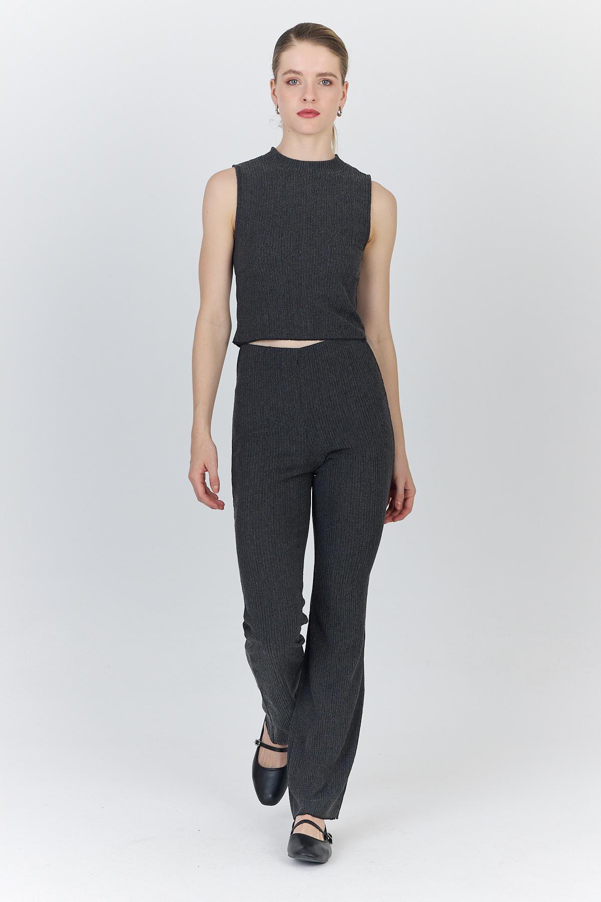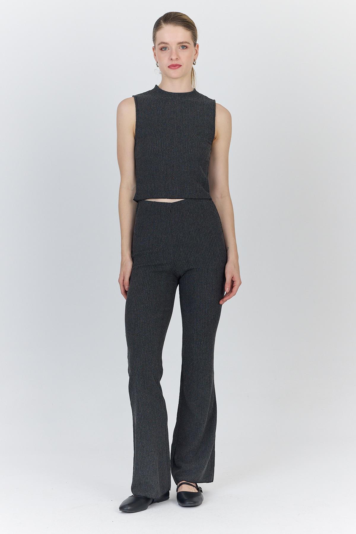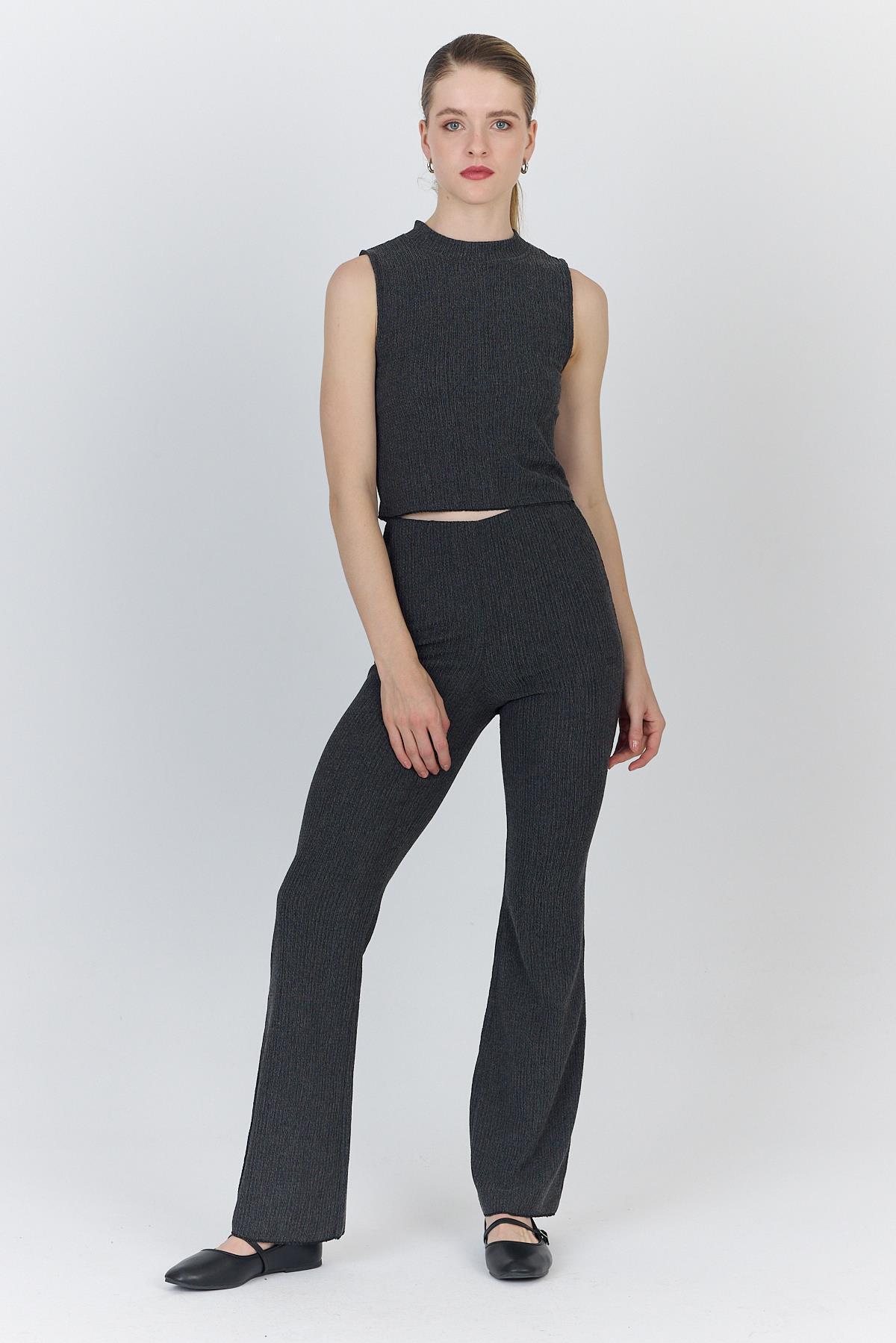 Antrasit Kolsuz Crop Üst ve İspanyol Paça Pantolon Takımı 1512
