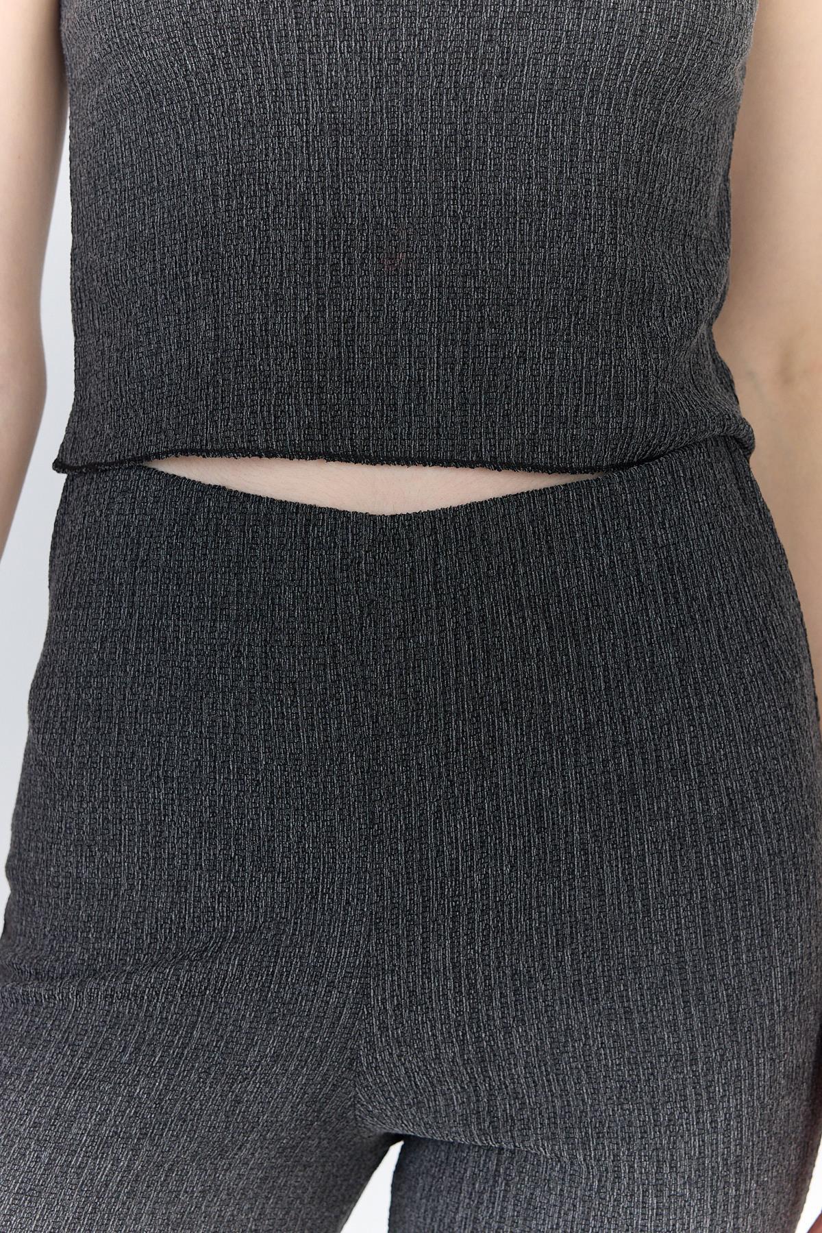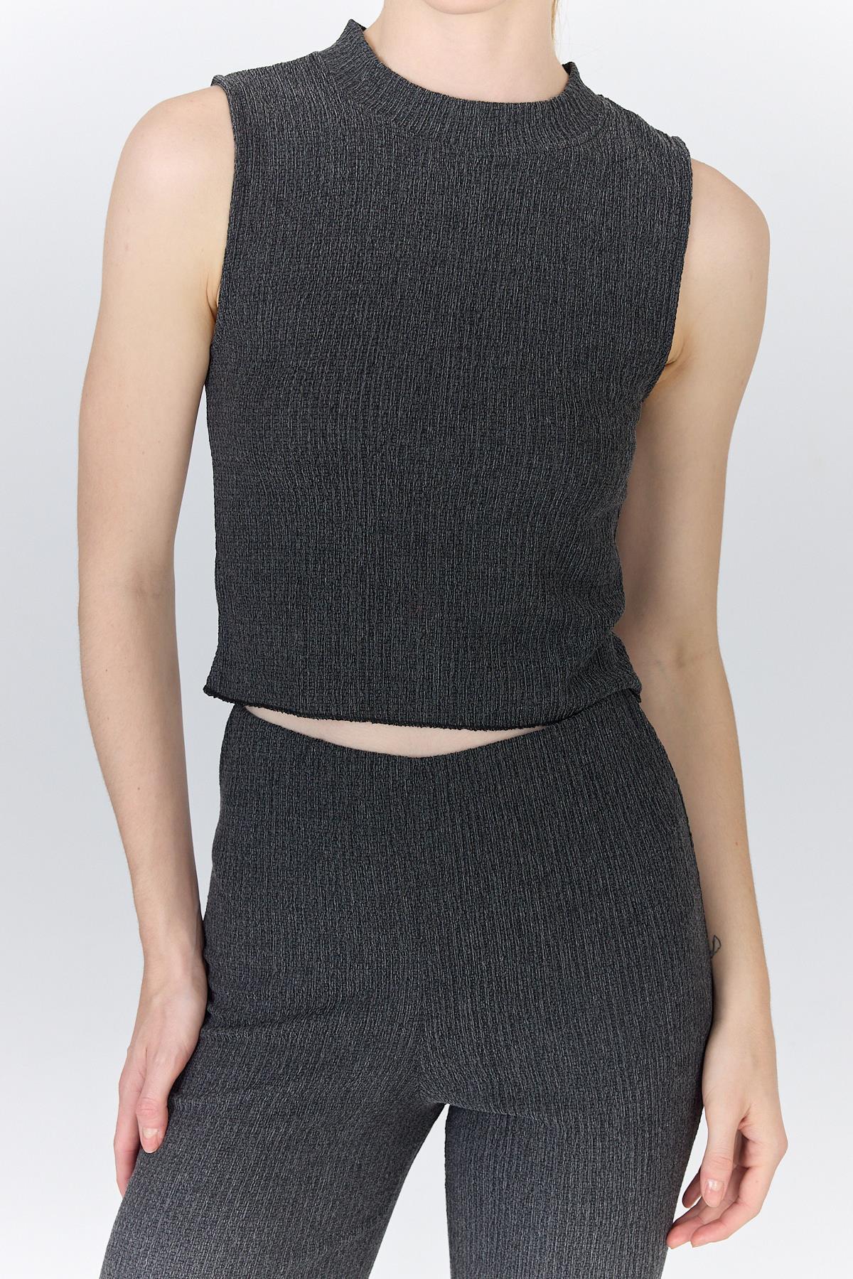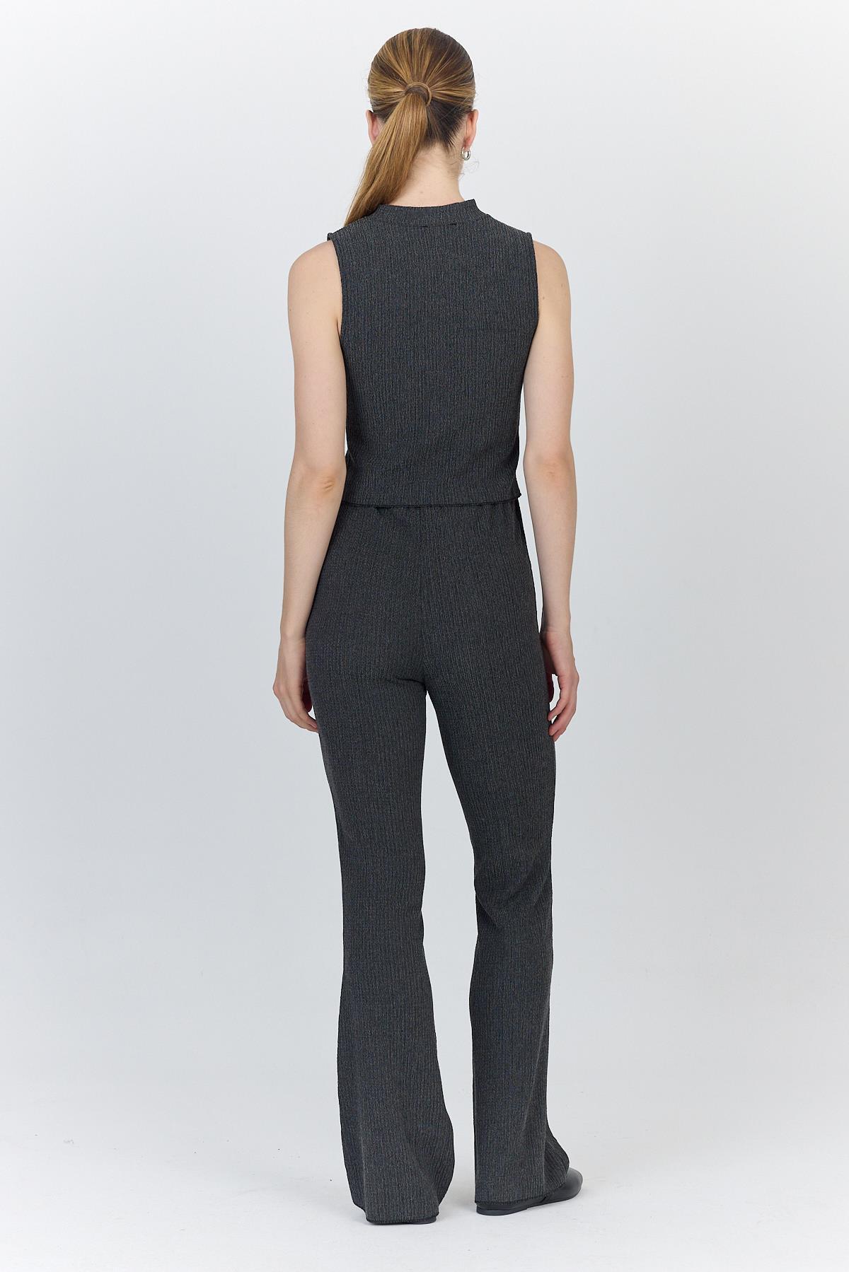 Antrasit Kolsuz Crop Üst ve İspanyol Paça Pantolon Takımı 1512