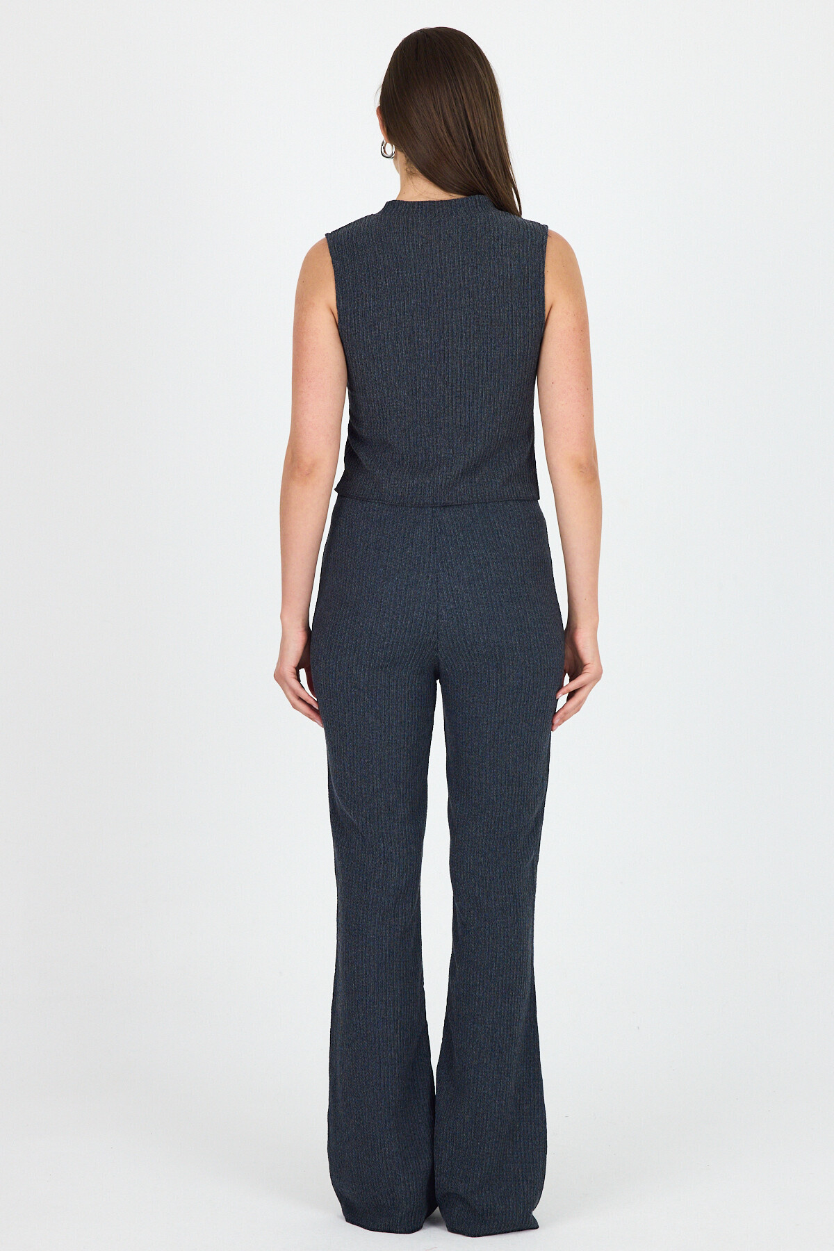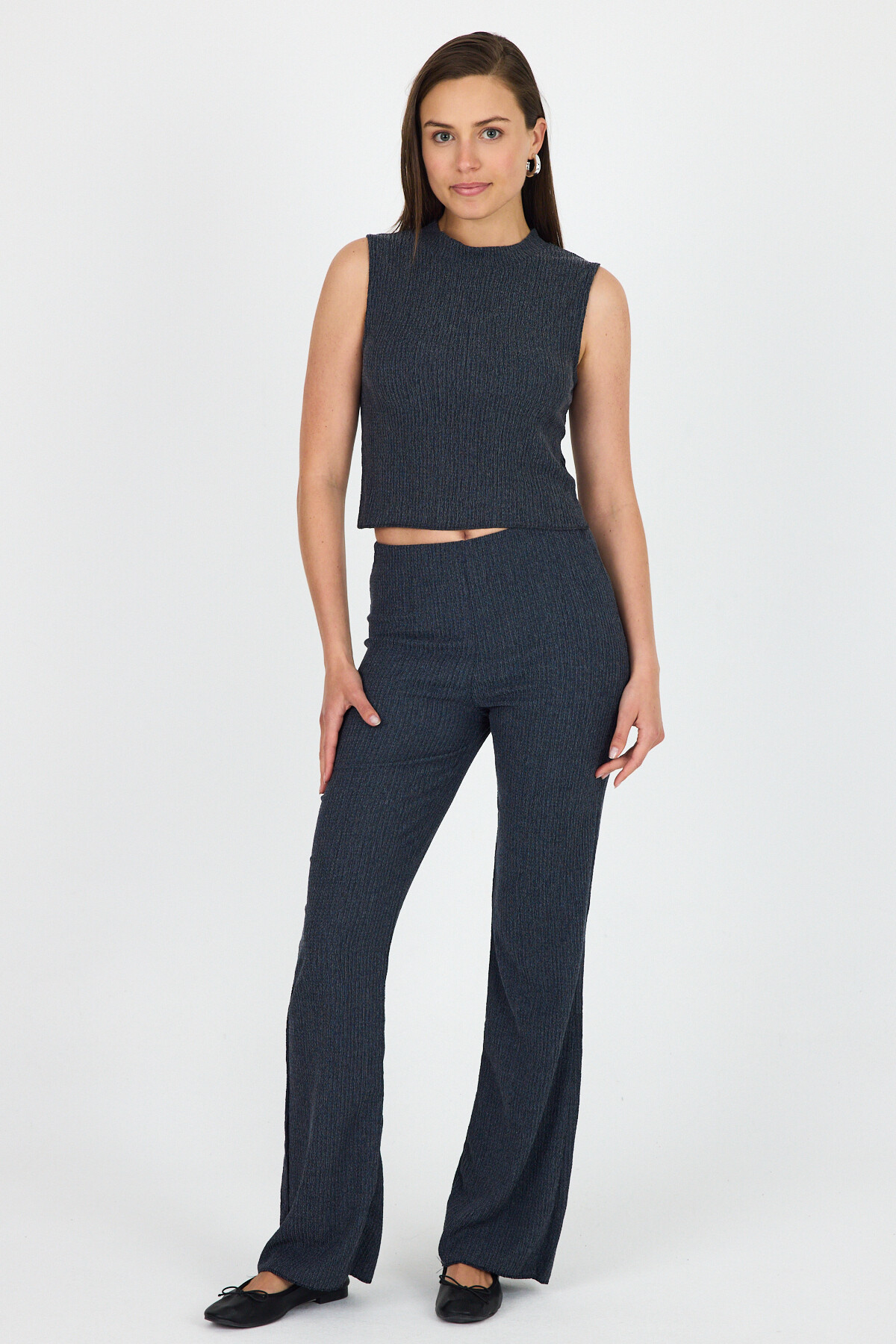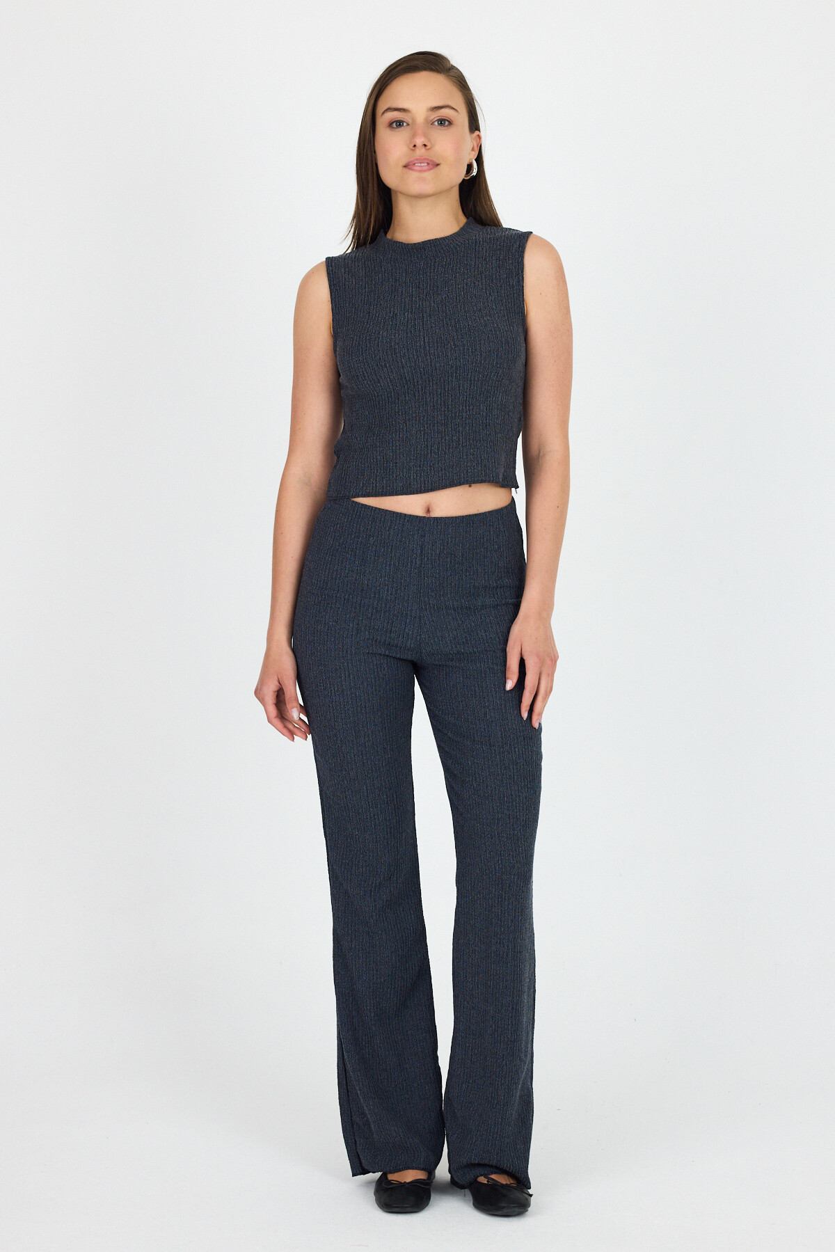 Mavi Kolsuz Crop Üst ve İspanyol Paça Pantolon Takımı 1512