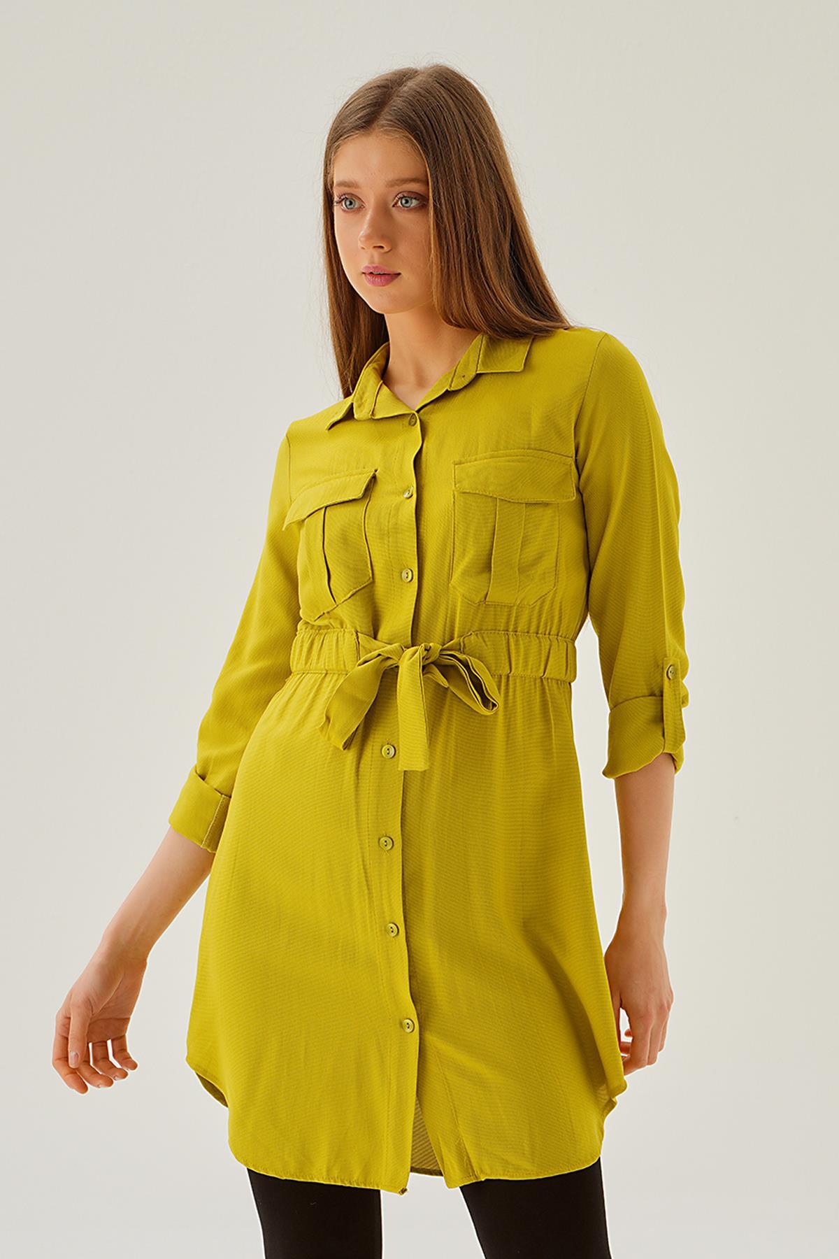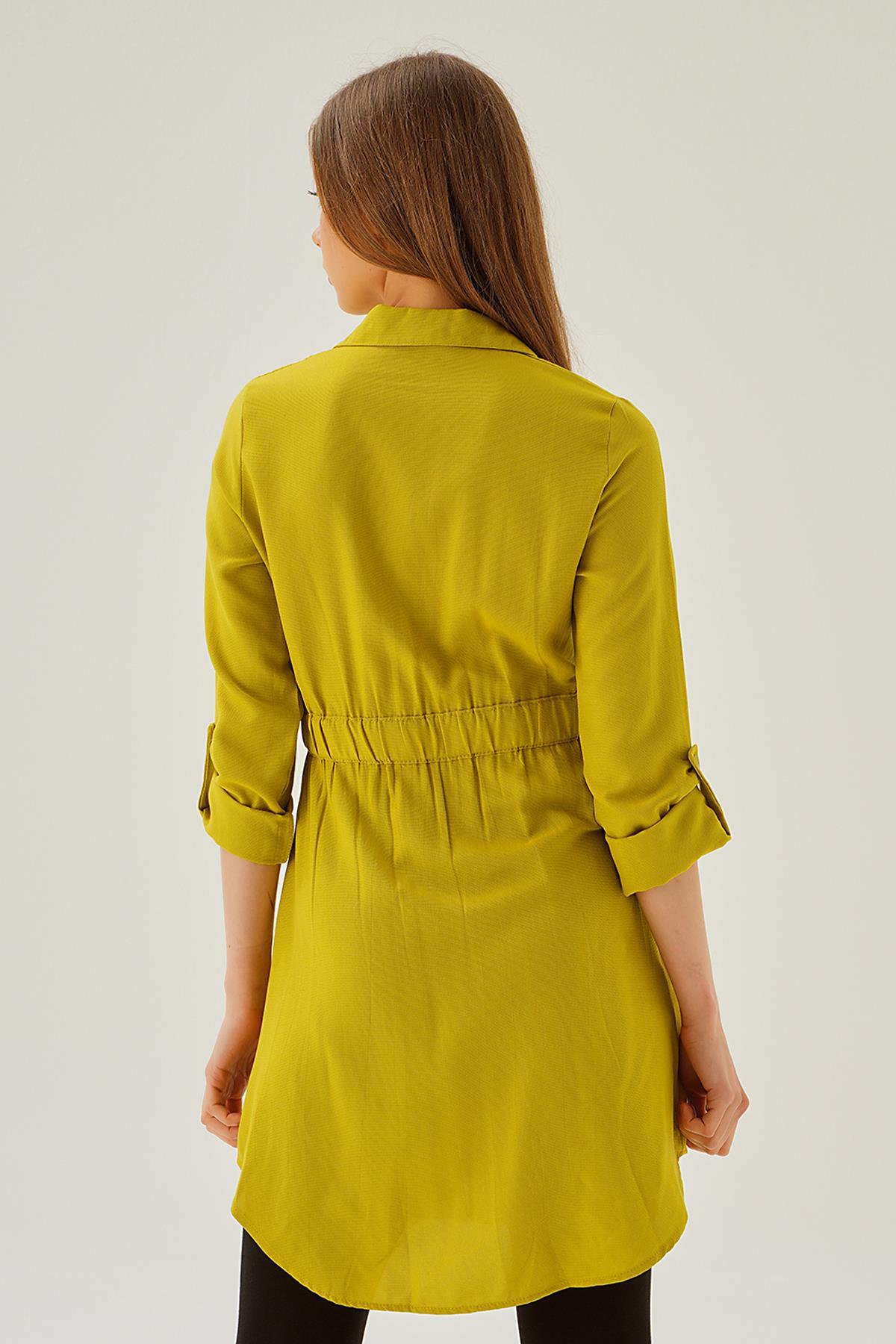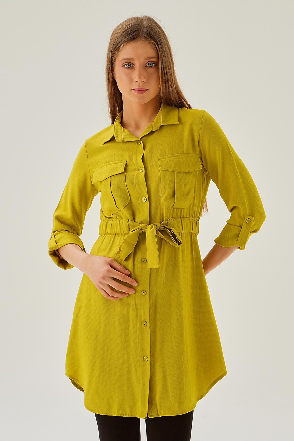 Yağ Yeşili Bel Lastik Detay Düğmeli Tunik 15234