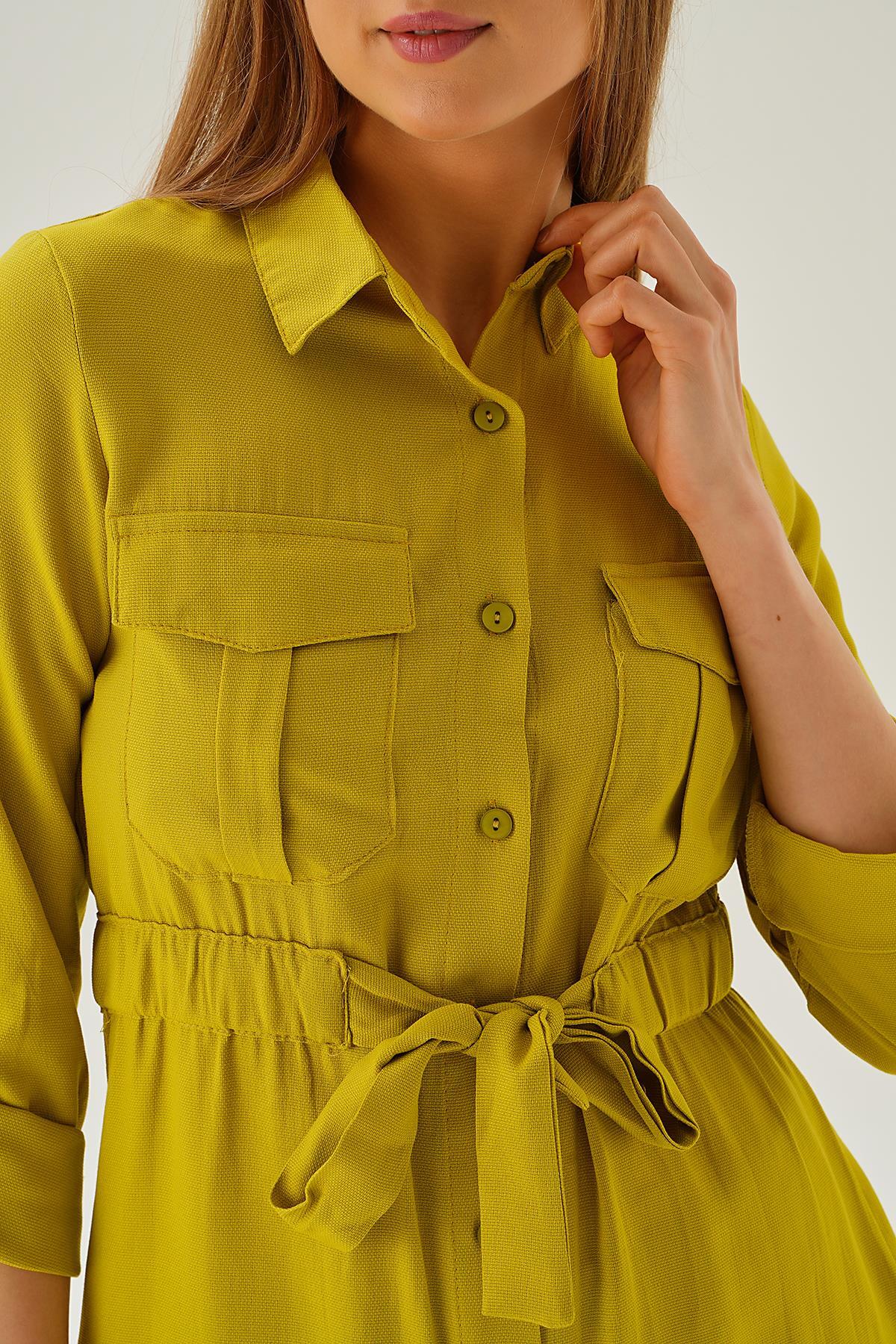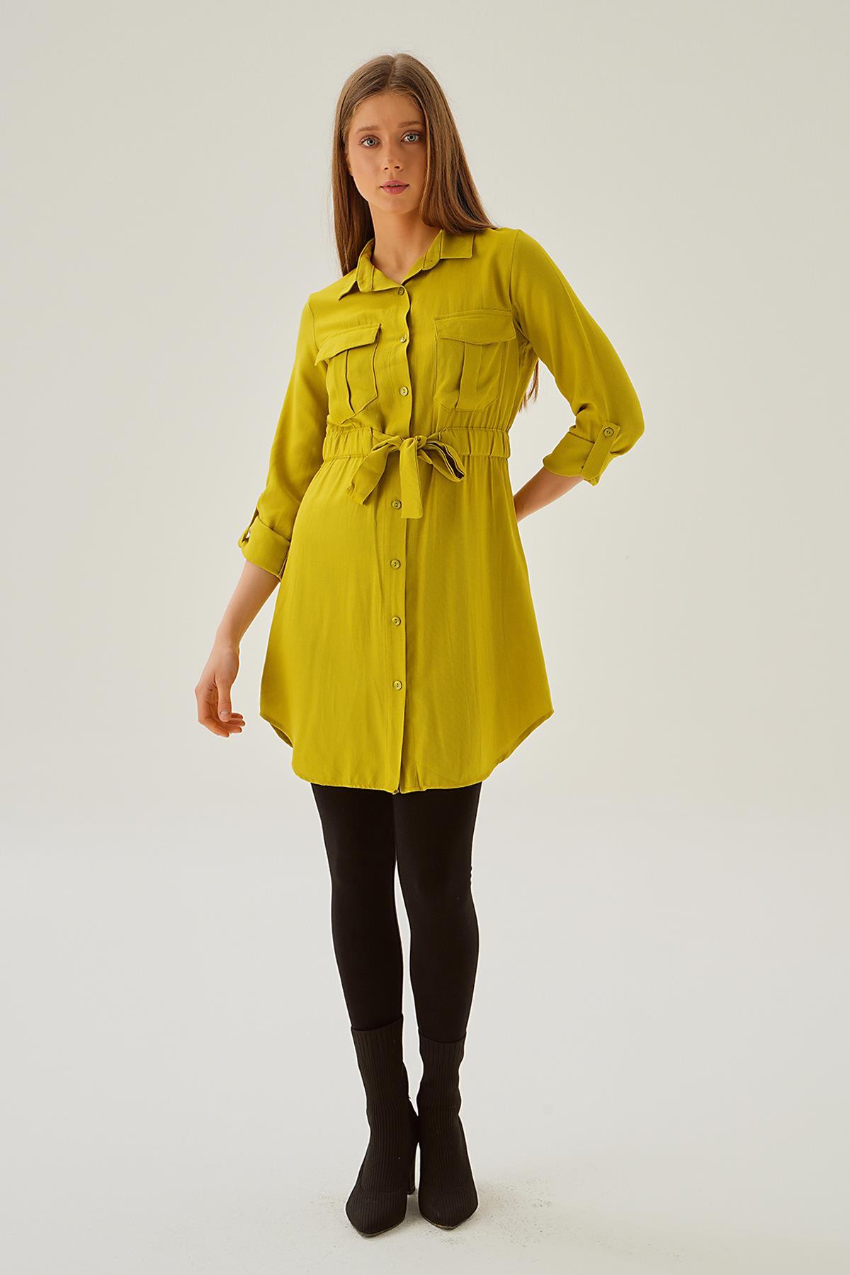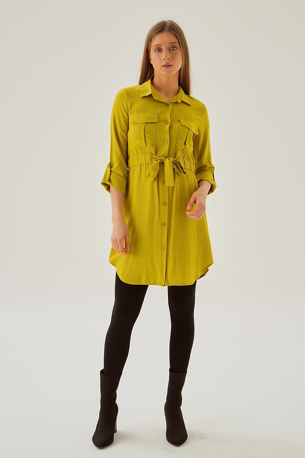 Yağ Yeşili Bel Lastik Detay Düğmeli Tunik 15234