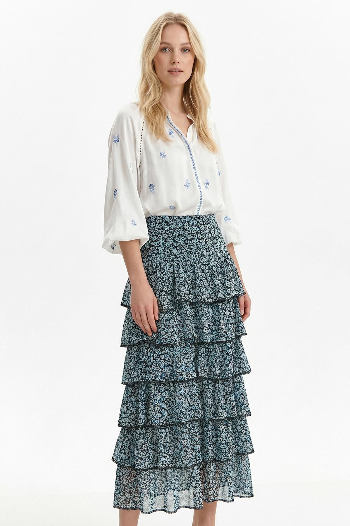 154 Desenli Kat Kat Etek Çiçek-Siyah