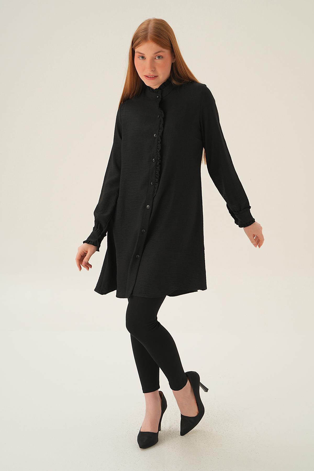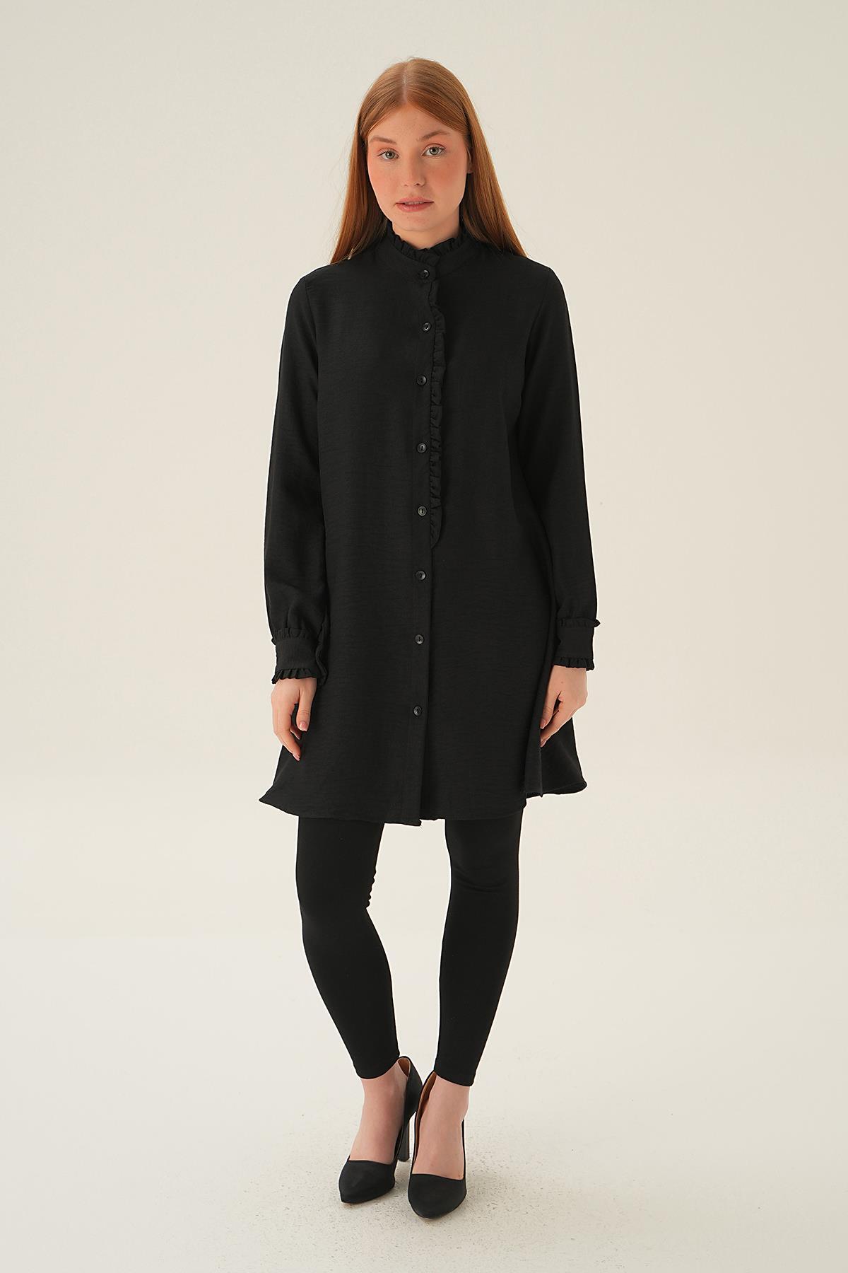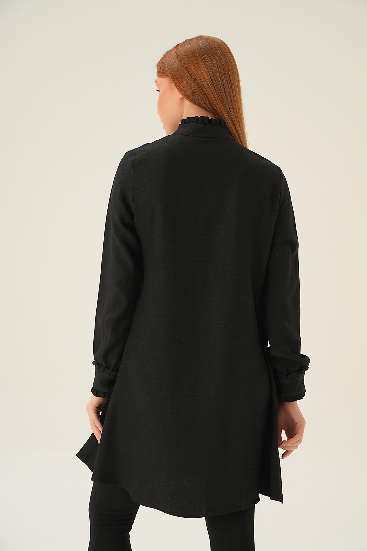 Siyah Kol Yaka Fırfır Detay Tunik 15454